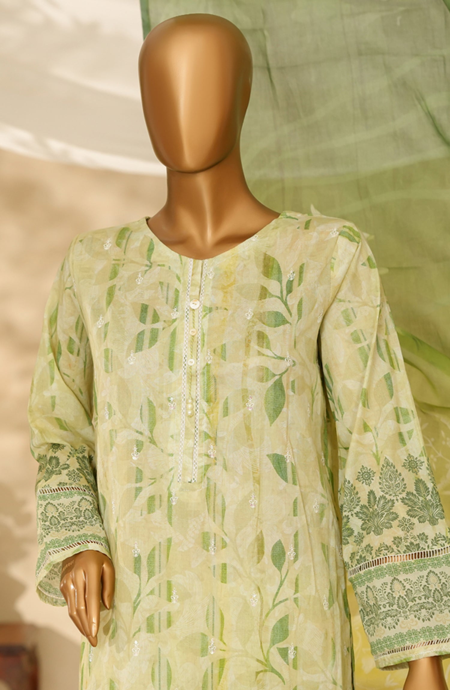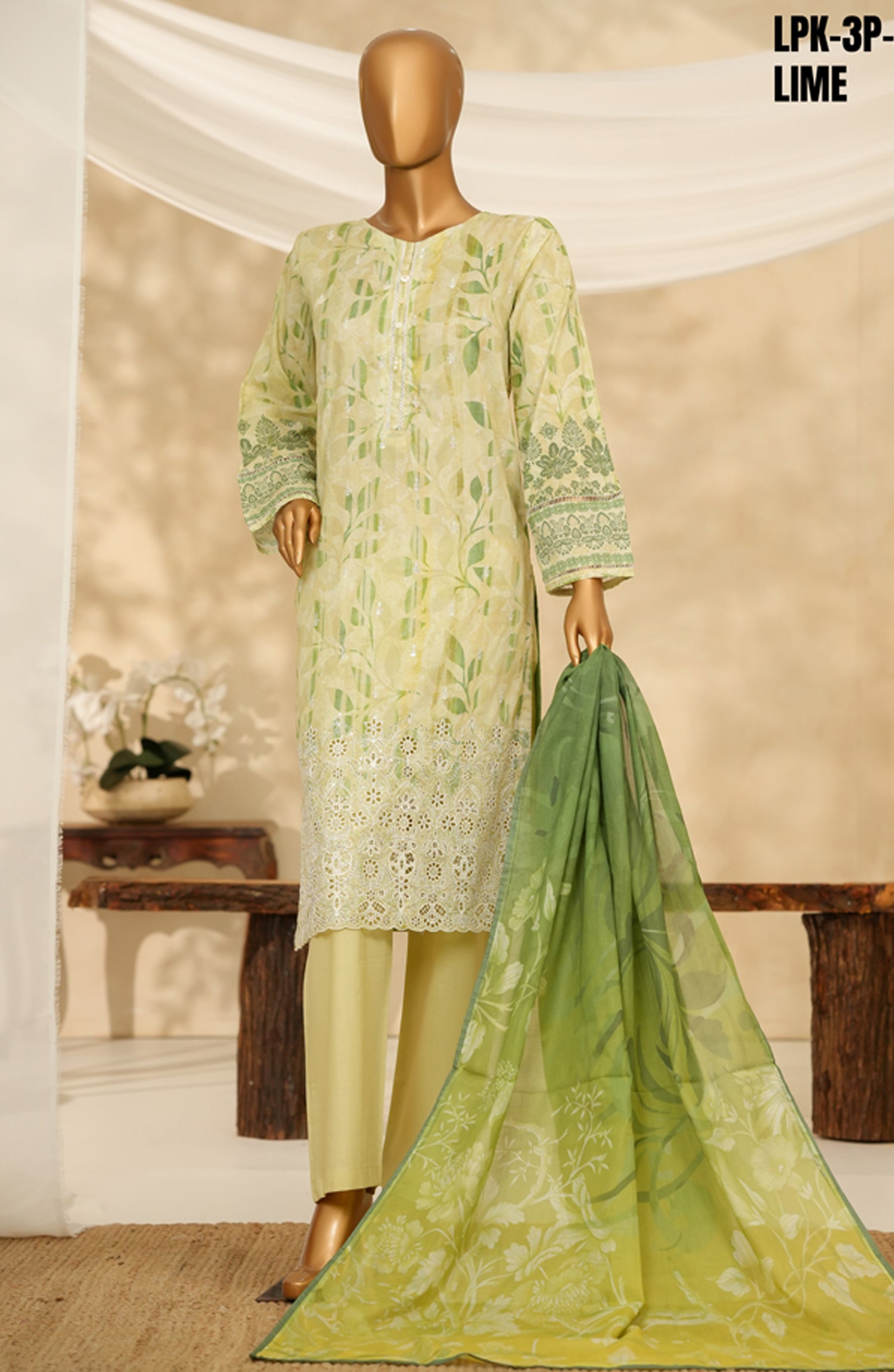 HZ Printkari Embroidered Chikankari Cambric Stitched 3 Piece Suit - LPK-3P-526 - HZ25KRI - Lime - Casual Collection