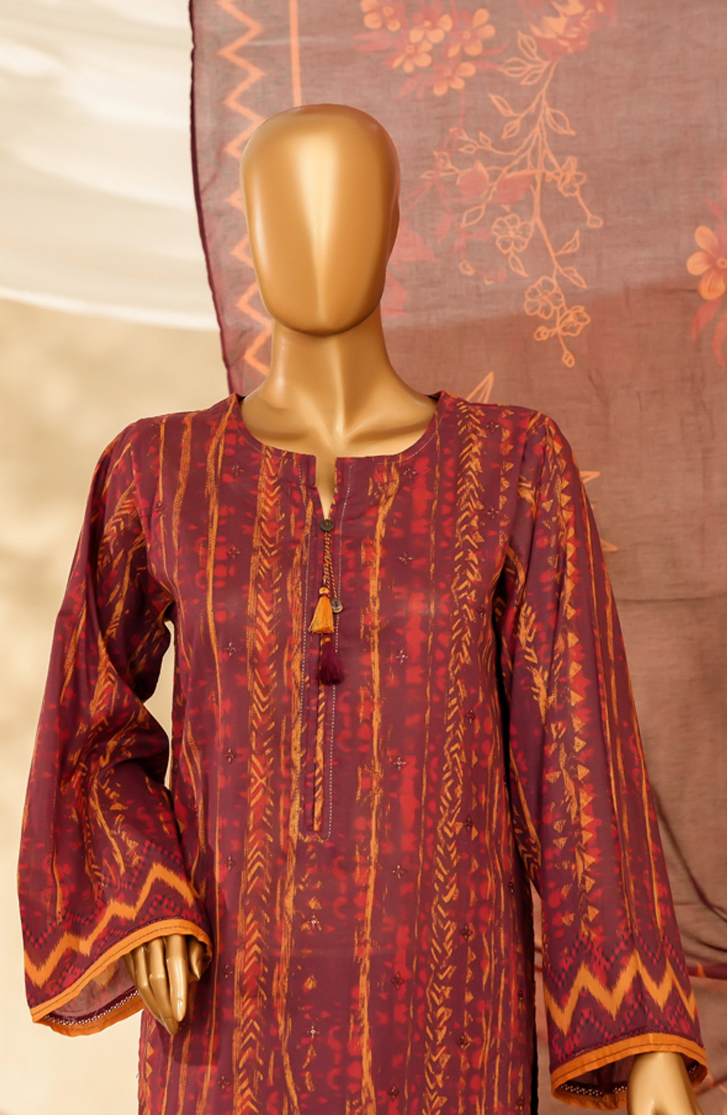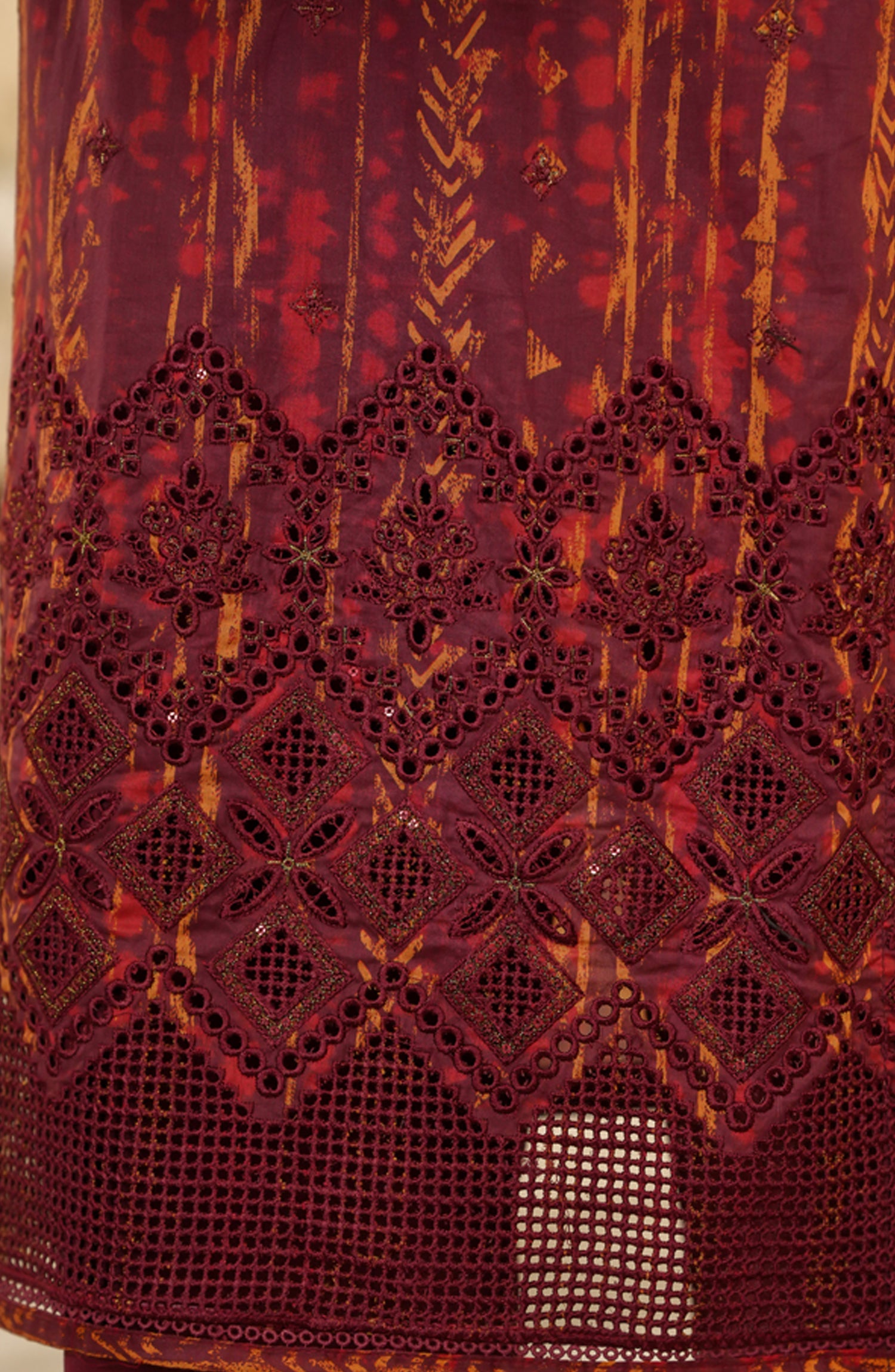 Printed Embroidered Chikankari Cambric Shirt with highlights of Stitching Details