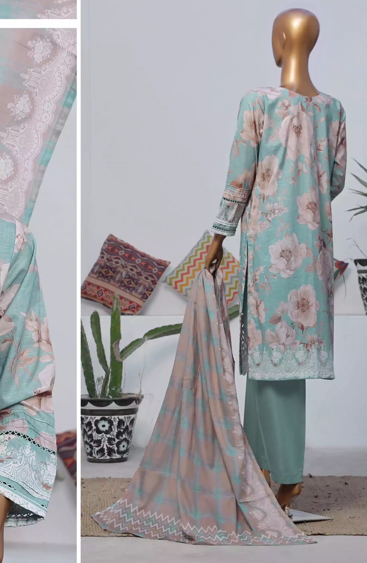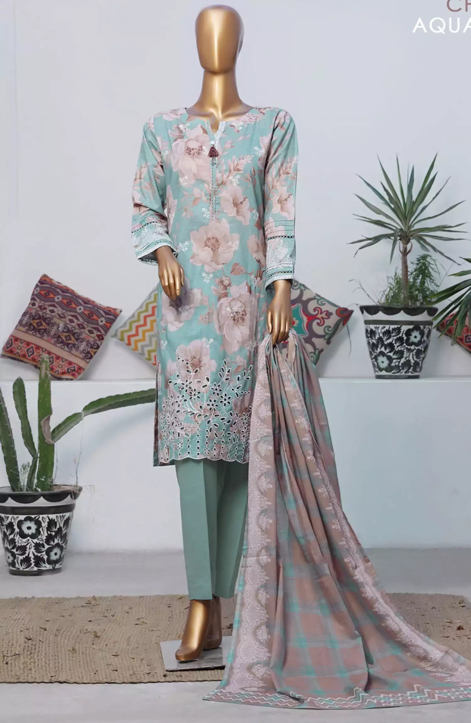 Home HZ Printkari RTW Printed Embroidered 3 PC Collection-CPK-803 AQUA BLUE