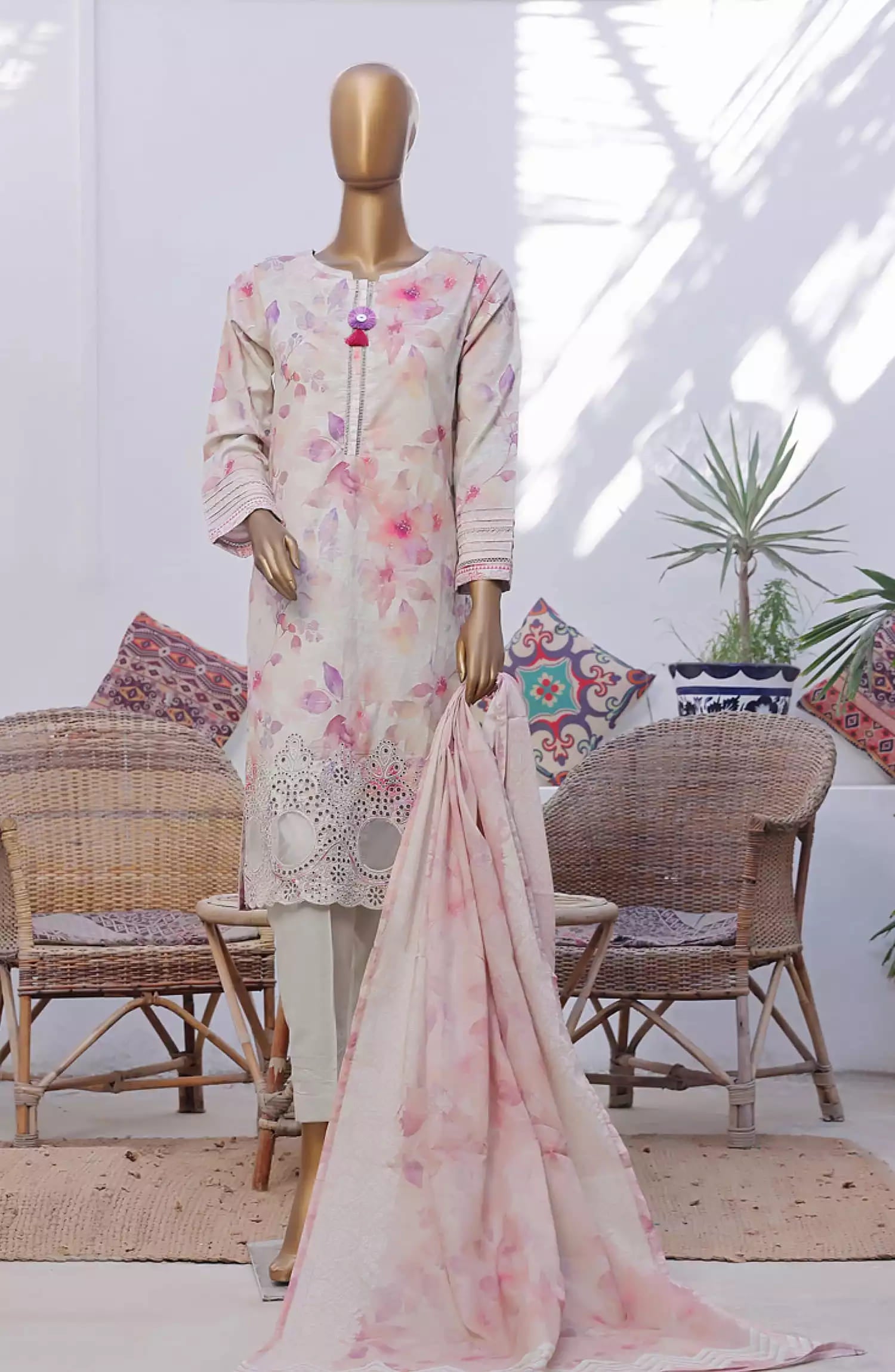 Home HZ Printkari RTW Printed Embroidered 3 PC Collection-CPK-805 BEIGE MULTI