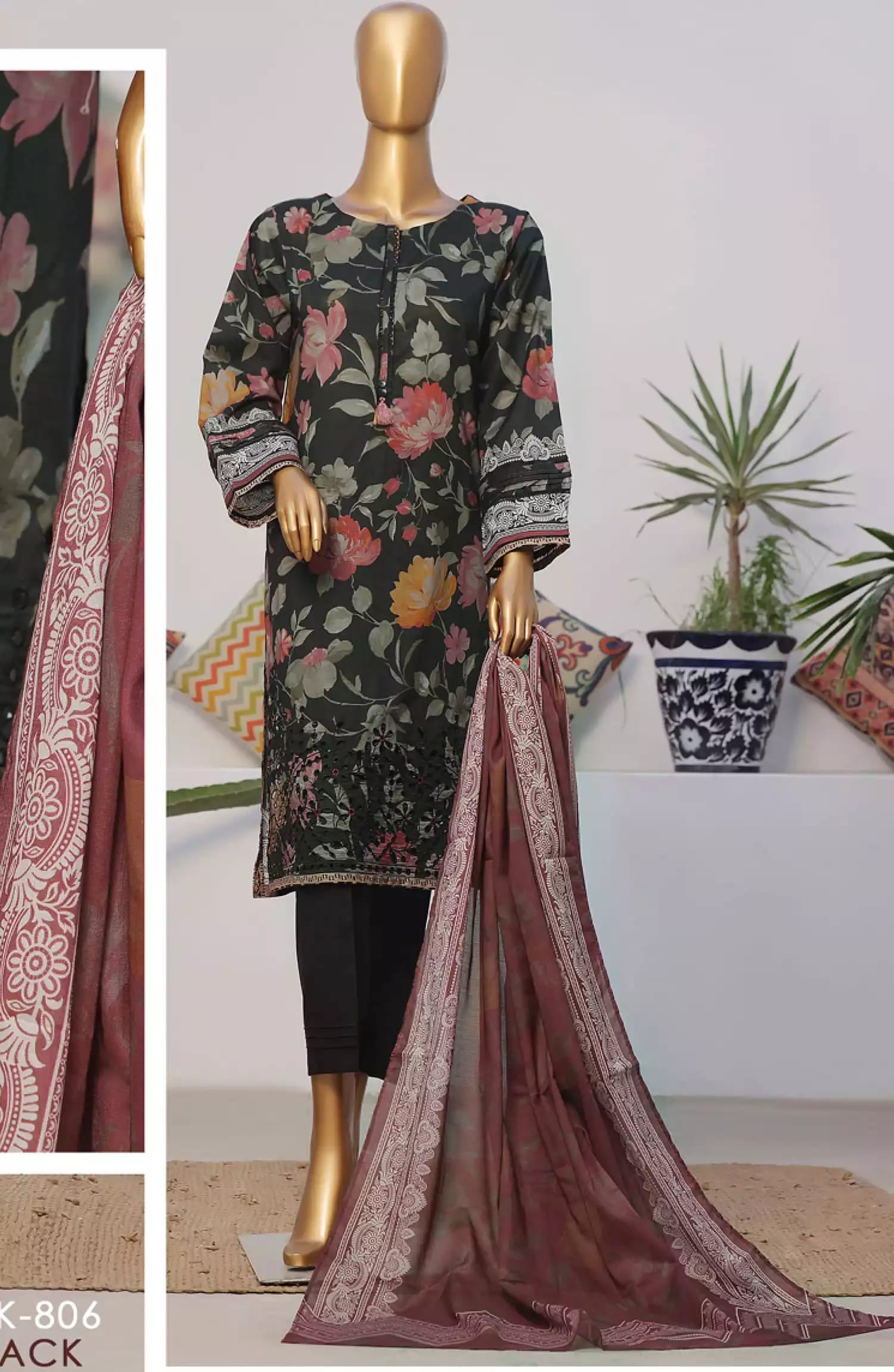 Home HZ Printkari RTW Printed Embroidered 3 PC Collection-CPK-806 BLACK