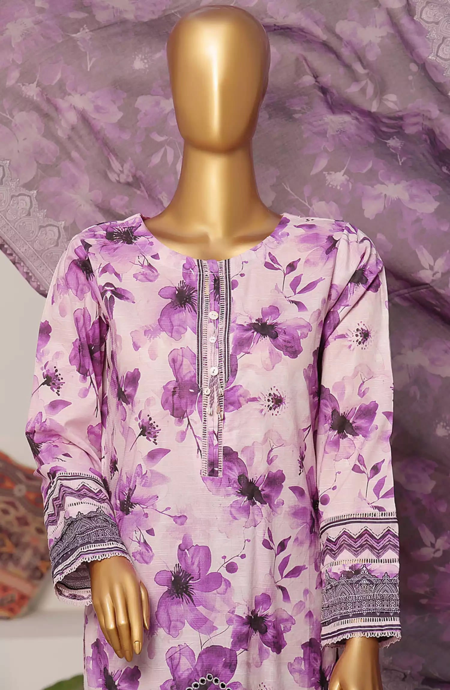 Digital Printed Embroidered Chikankari Slub Cambric Shirt