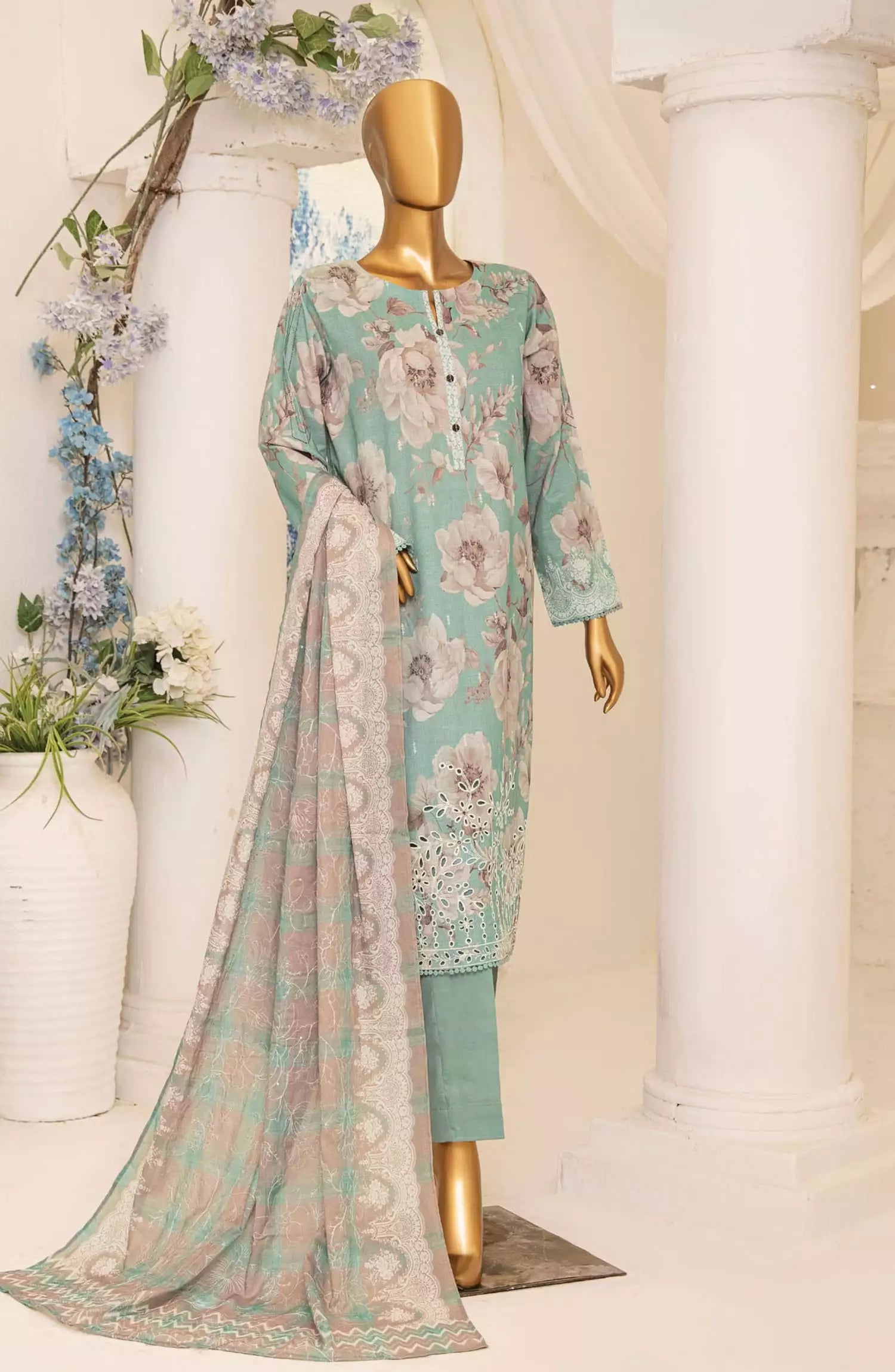 HZ Printkari Slub Cambric Embroidered Collection - PSC 214