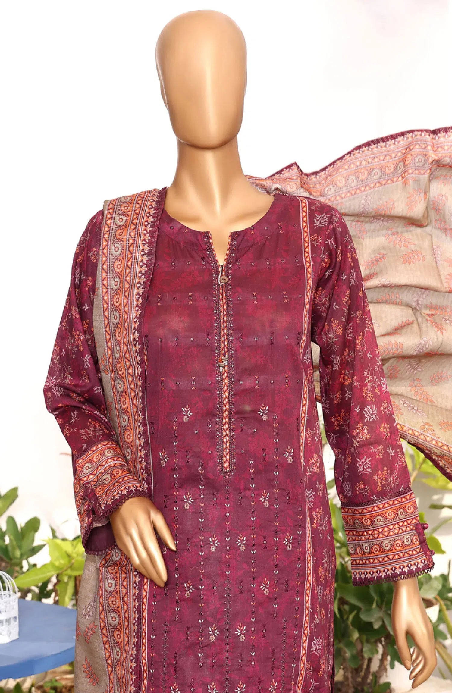 Modest Embroidered Khaddar Stitched 3 Piece Suit - 10040-Pnk - MOD25WNT - Pink - Winter Collection