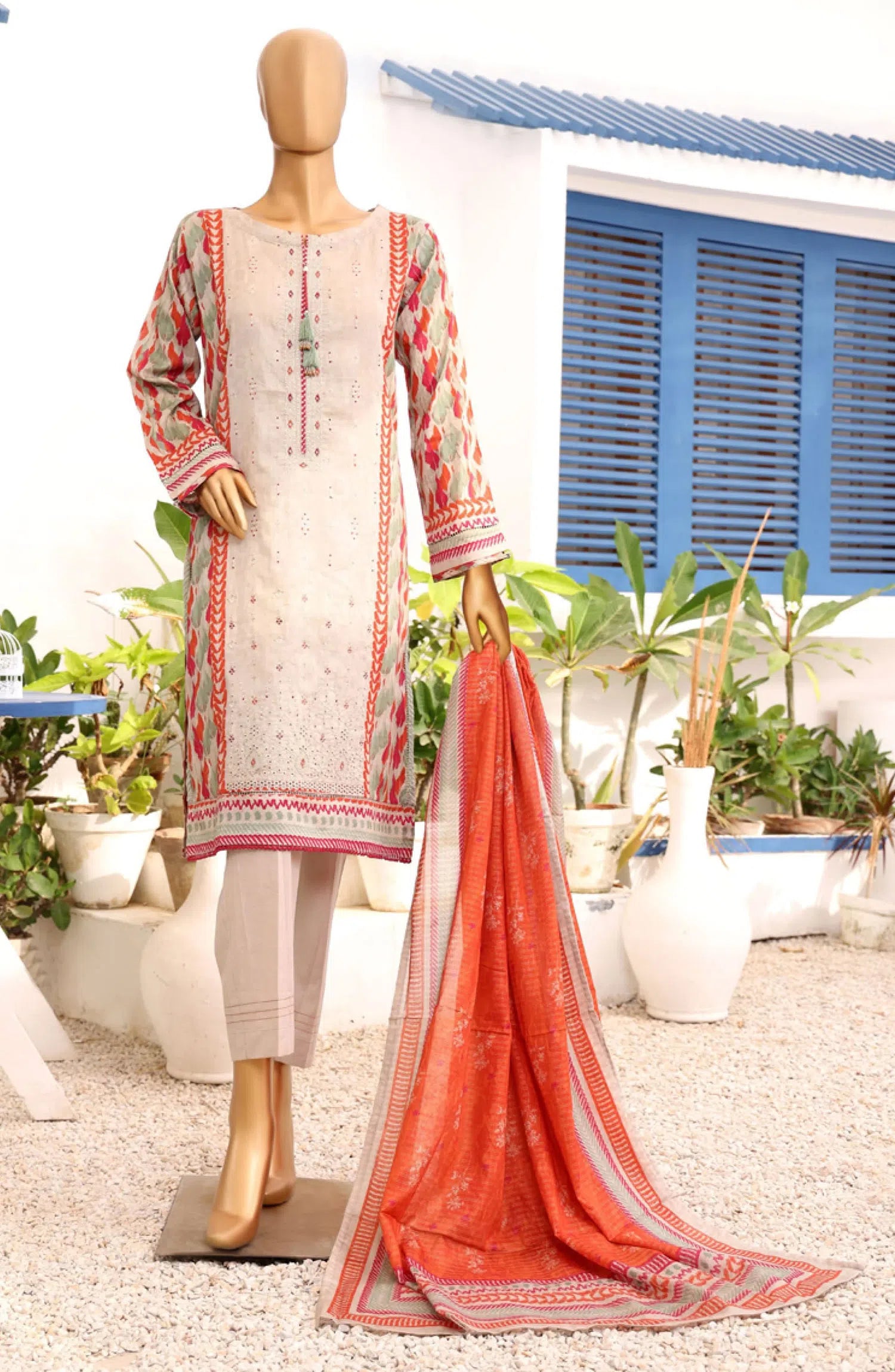 HZ RTW AASHKAAR Embroidered Lawn Collection Vol 05 - AEL-408-BEIGE MULTI