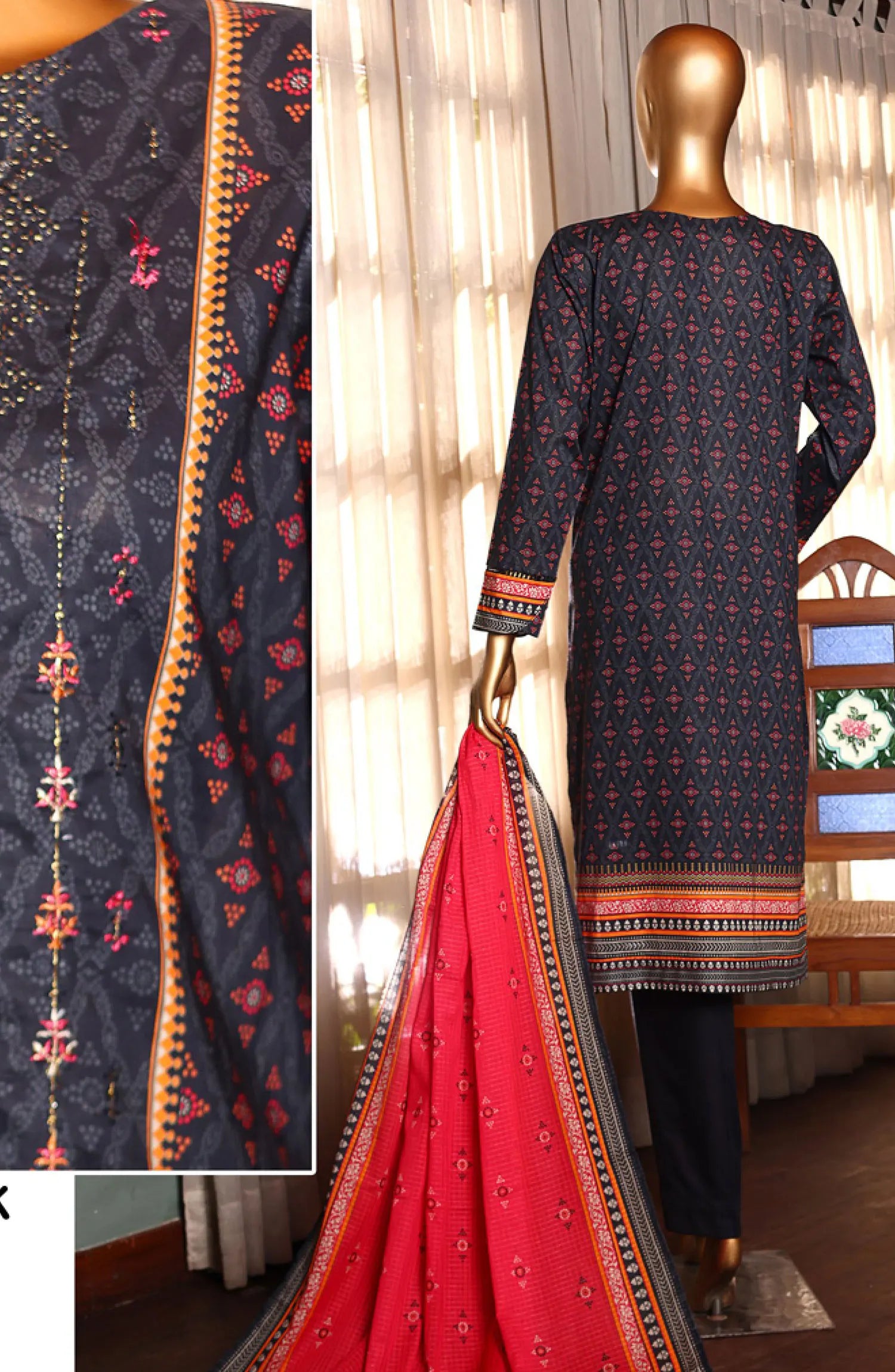 Sadabahar Signature Embroidered Khaddar Stitched 3 Piece Suit - Design-03 - SBD25SNA - Blue - Winter Collection