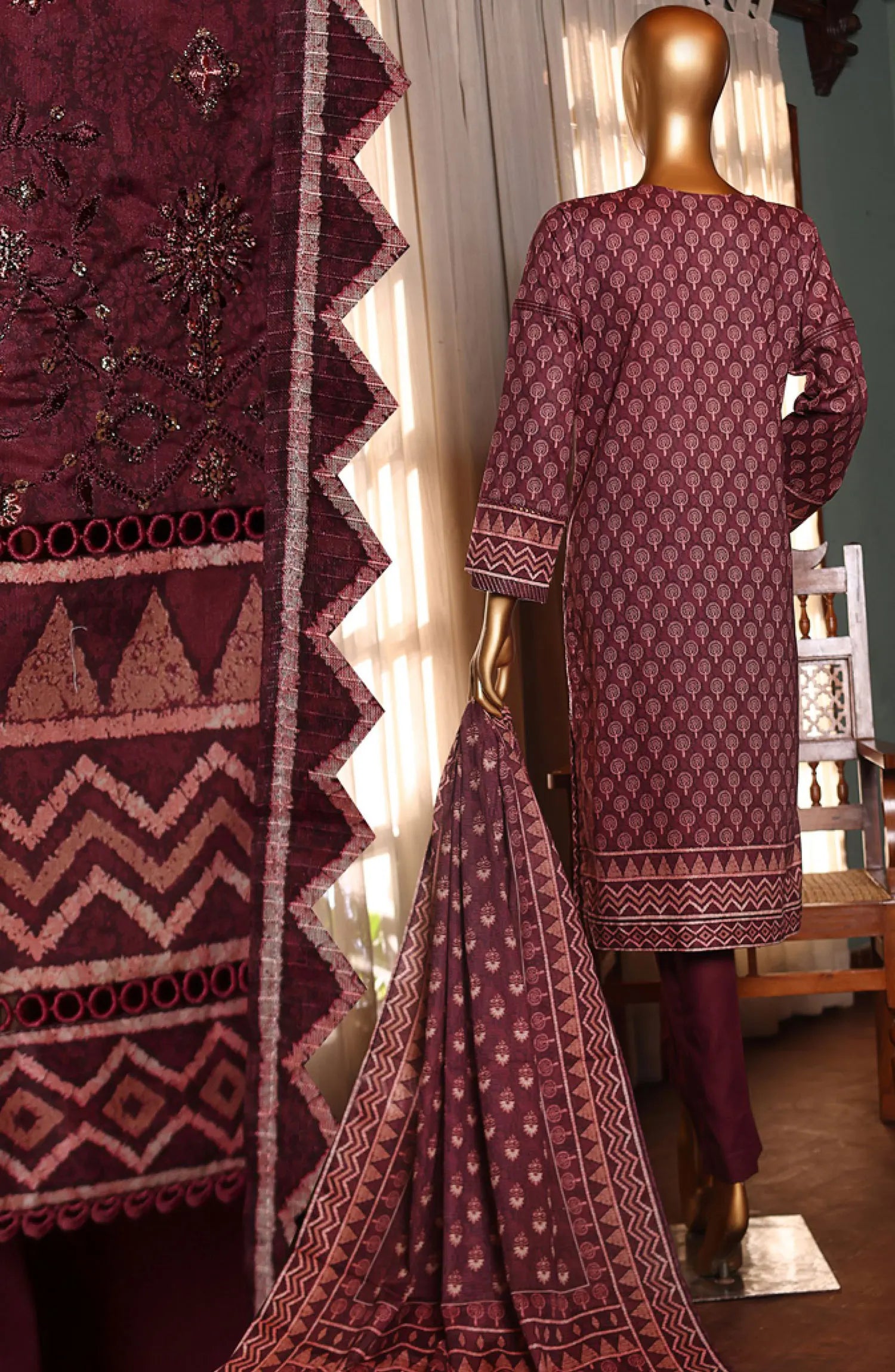 Sadabahar Signature Embroidered Khaddar Stitched 3 Piece Suit - Design-05 - SBD25SNA - Maroon - Winter Collection
