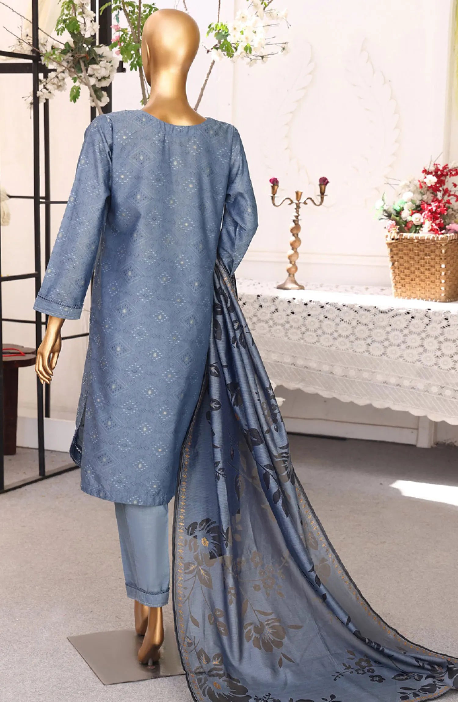Modest Embroidered Khaddar Stitched 3 Piece Suit - 10040-Pnk - MOD25WNT - Pink - Winter Collection