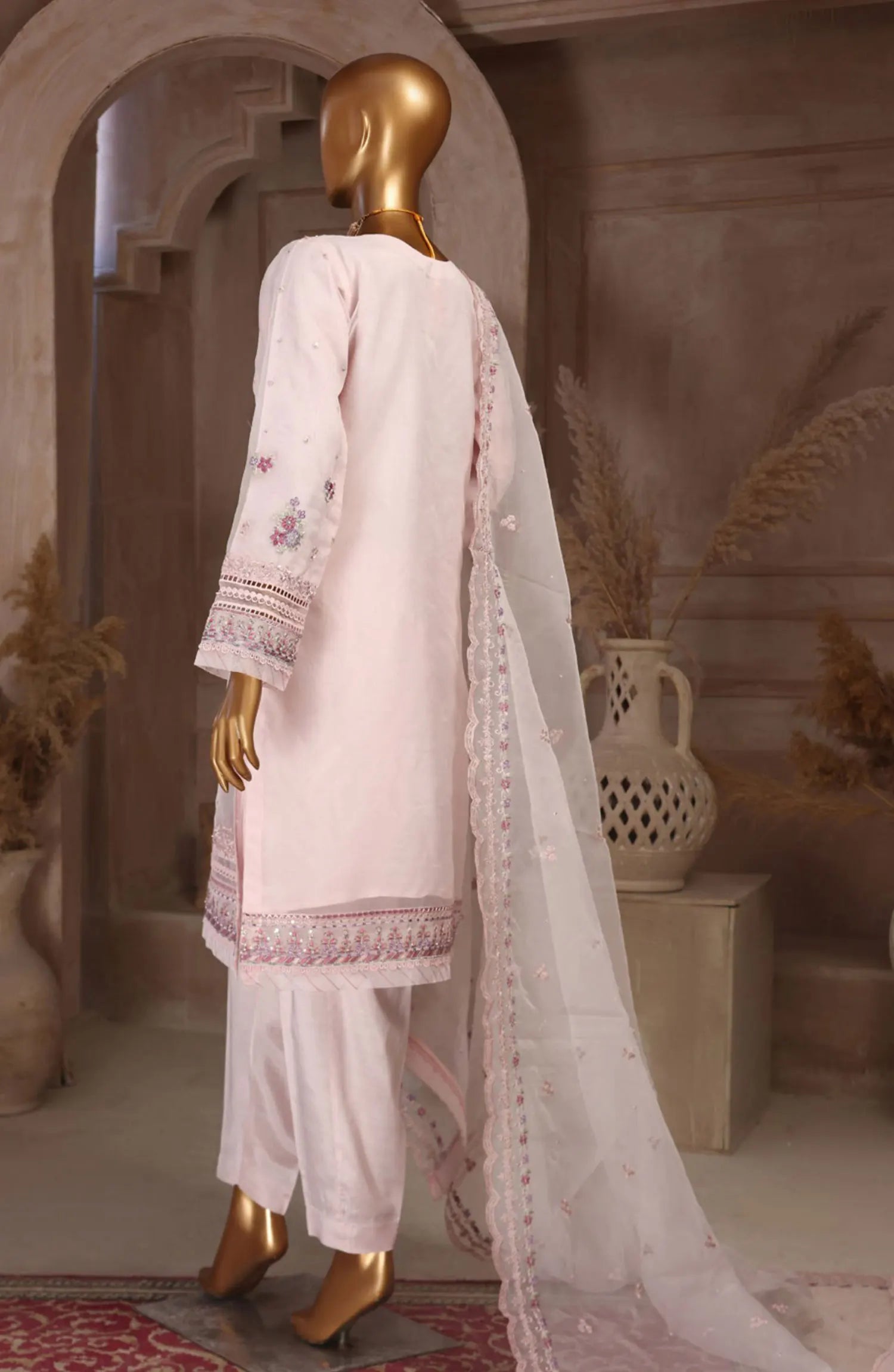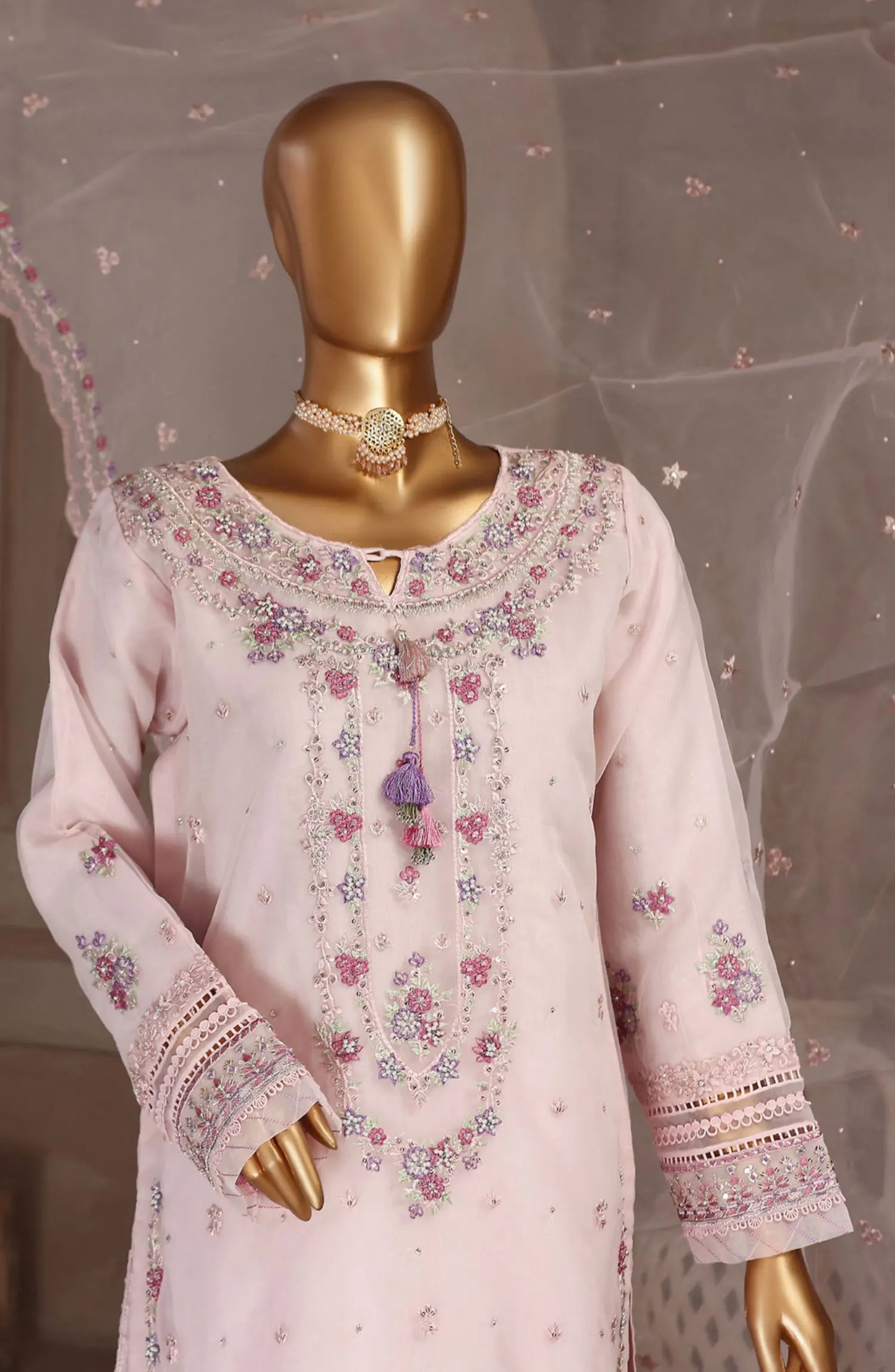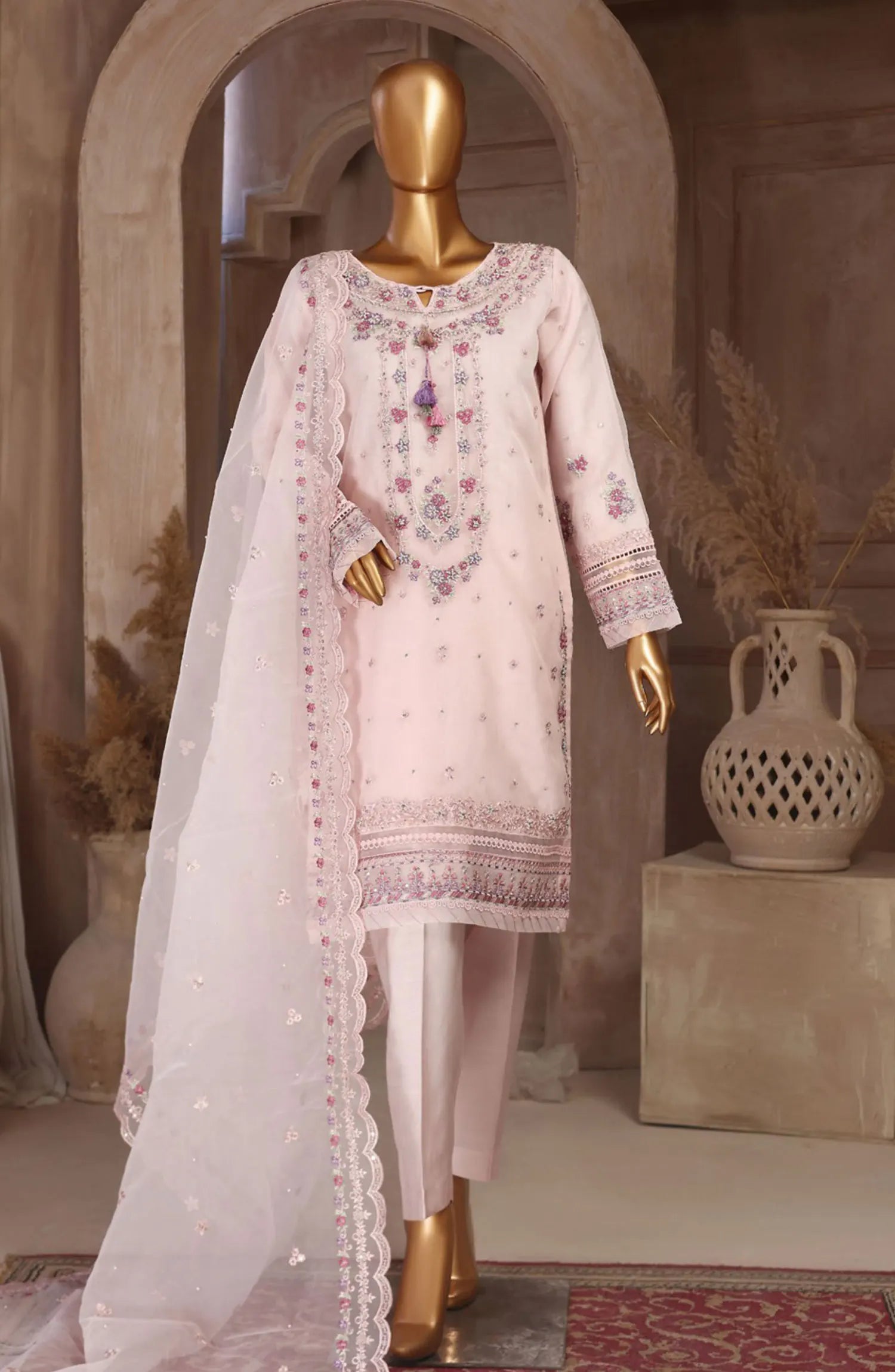 Home HZ RTW Falsafaa Formals Embroidered Organza Collection Vol 02 - HZK 108 POWDER PINK