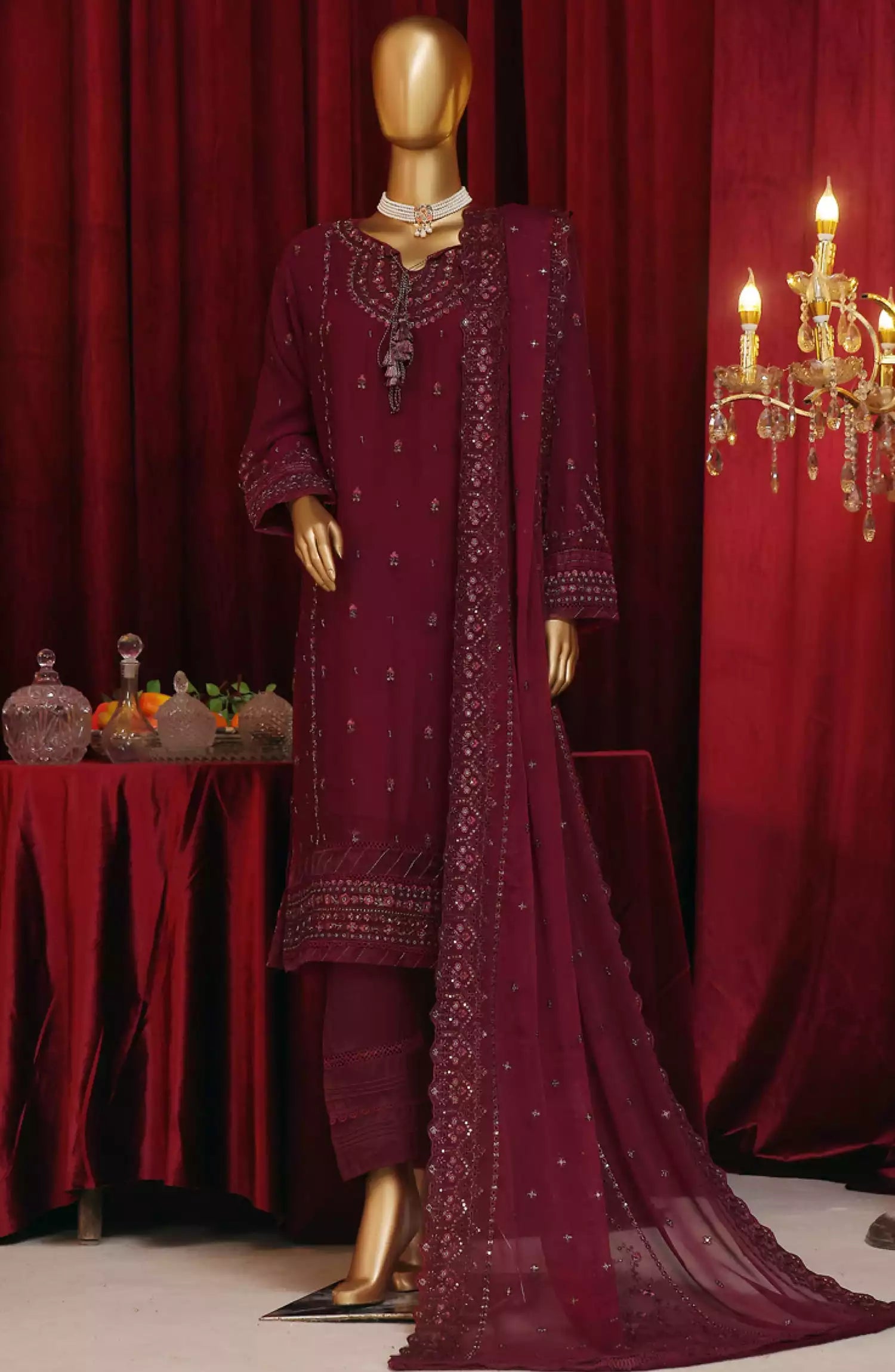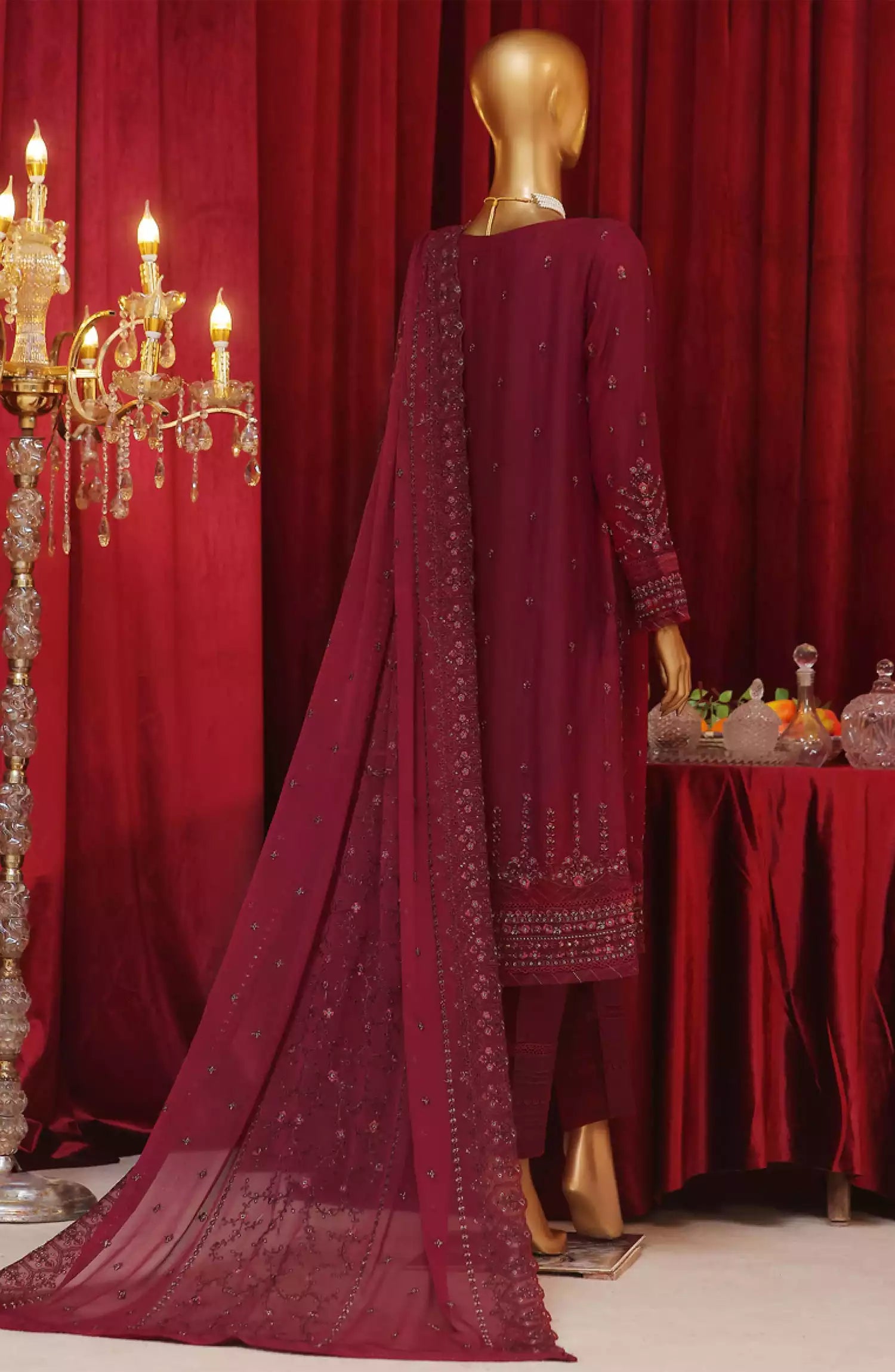 HZ RTW Fasaane Embroidered Chiffon Formals Vol 07 - HZK-187 MAROON