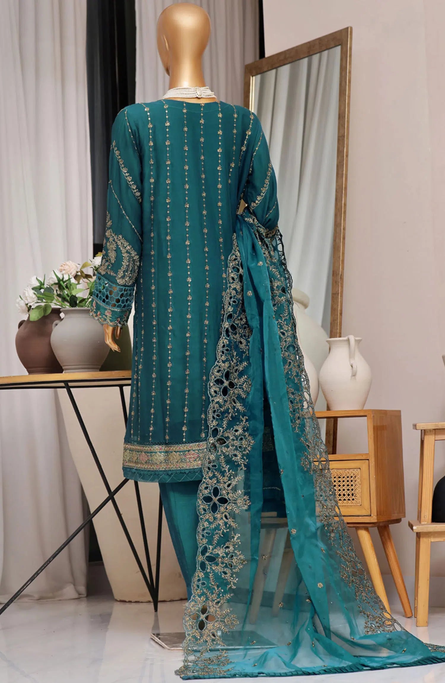 Rua by Casual Lite Embroidered Premium Linen Stitched 3 Piece Suit - D-07 Teal Mirage - CL25RU - Teal - Winter Collection