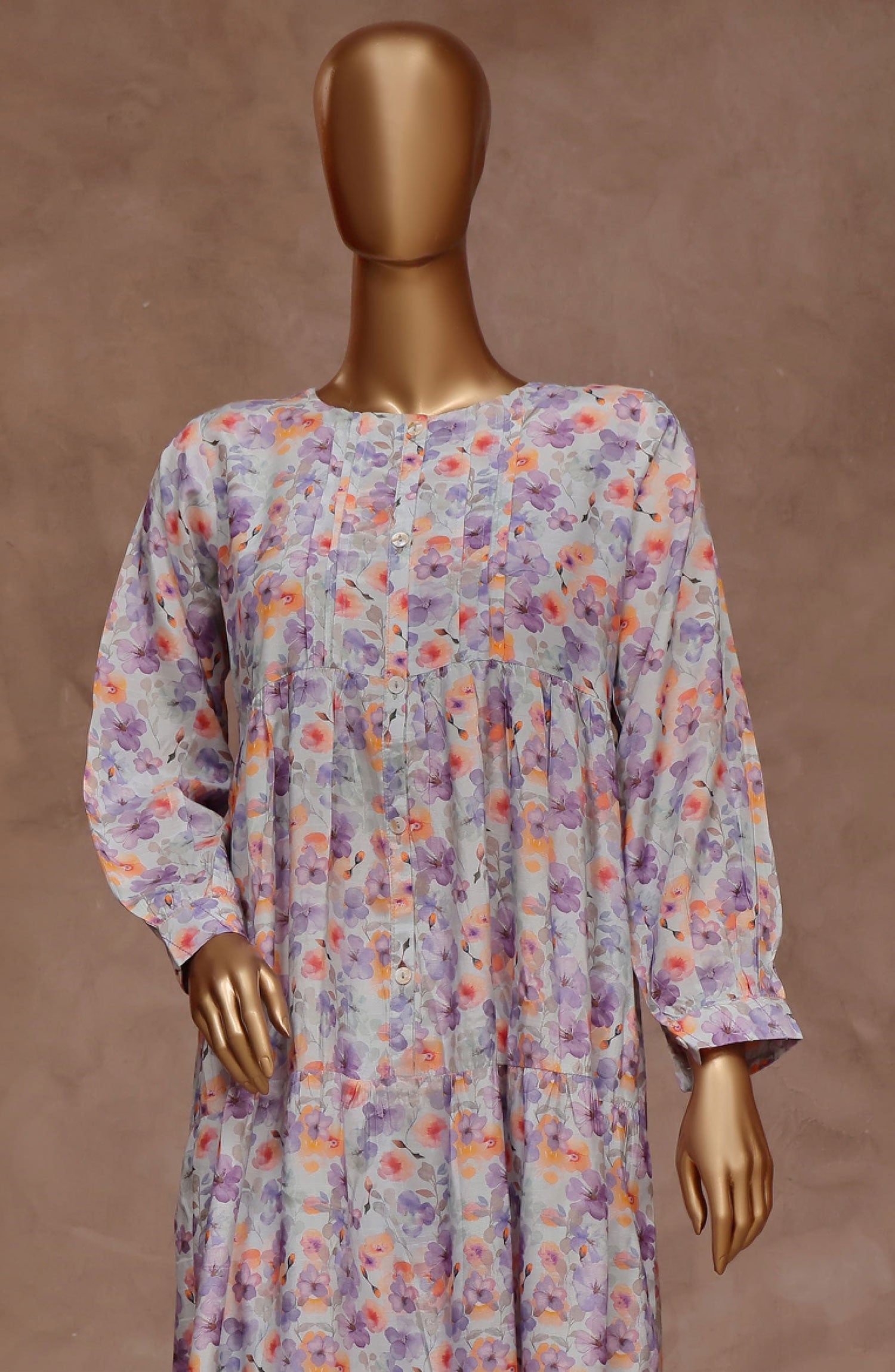 HZ RTW Florence Printed Raw Silk 2 Pc Frocks Collection - PRF-102 Lavender BLUE