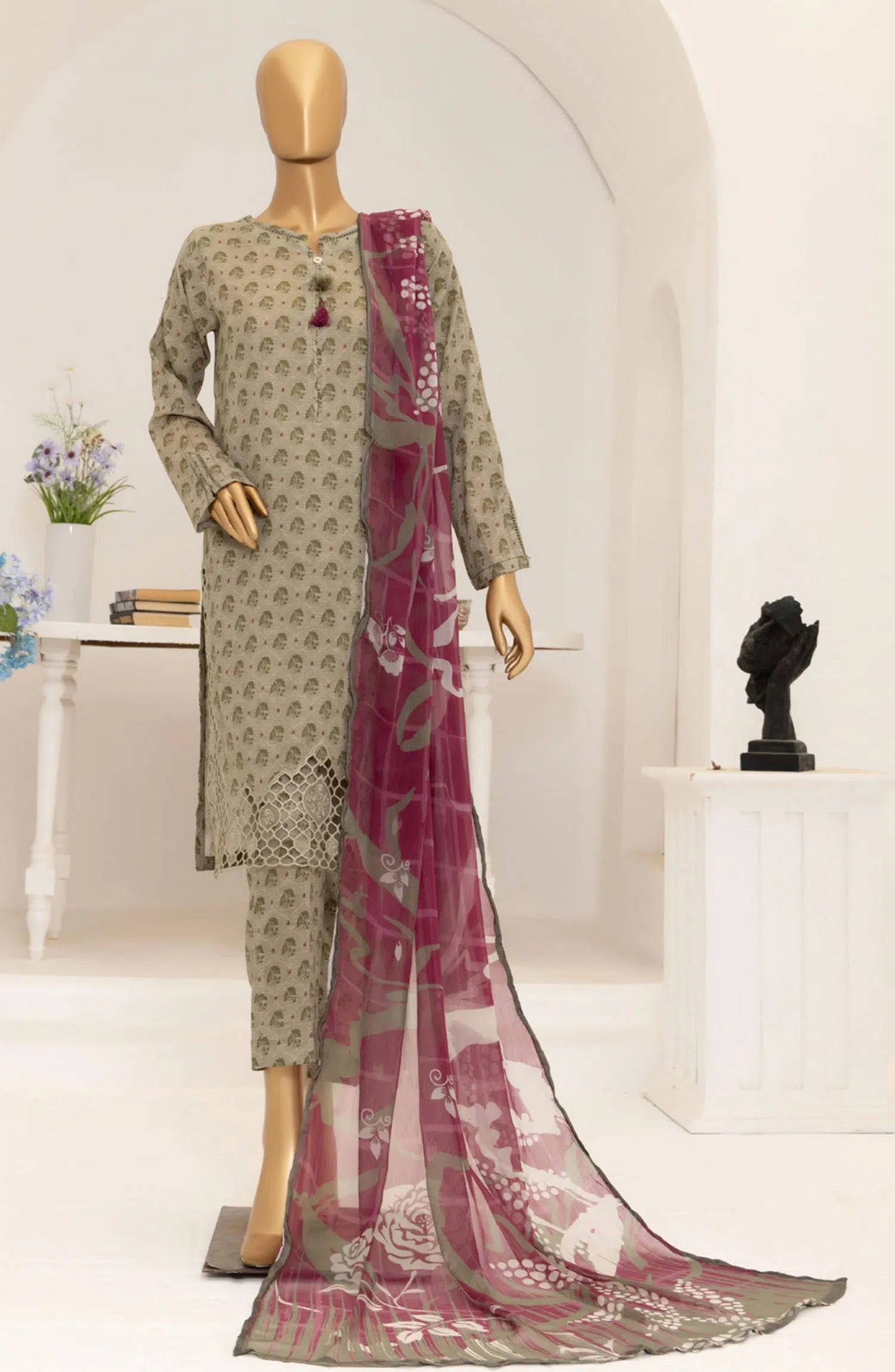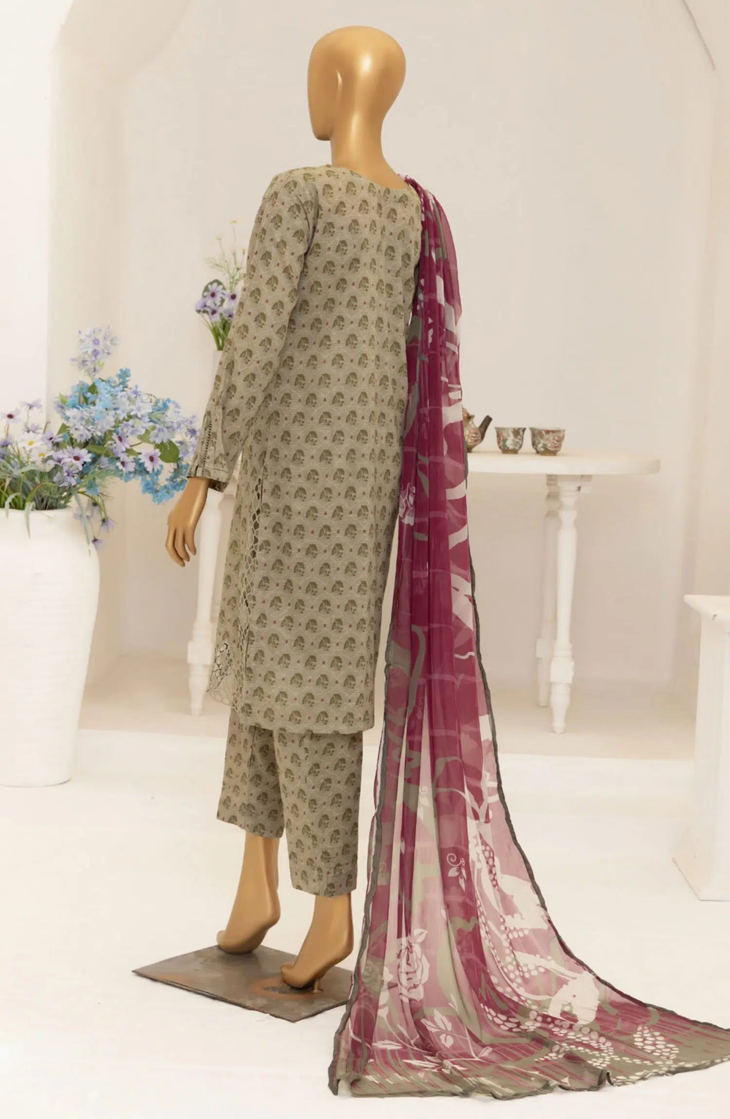 The standard style comes as a long-sleeved kameez with dupatta and trouser/shawlar.
