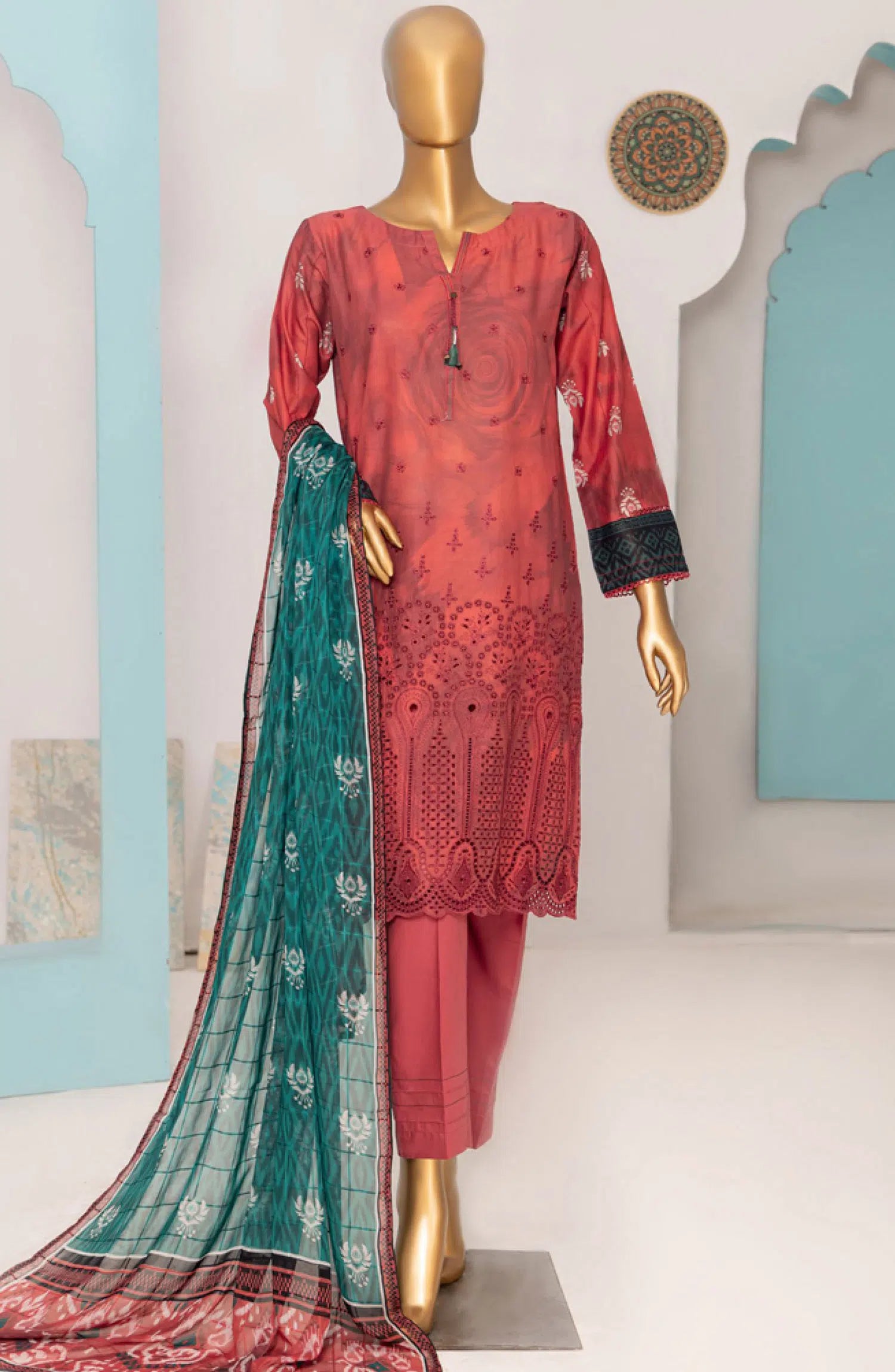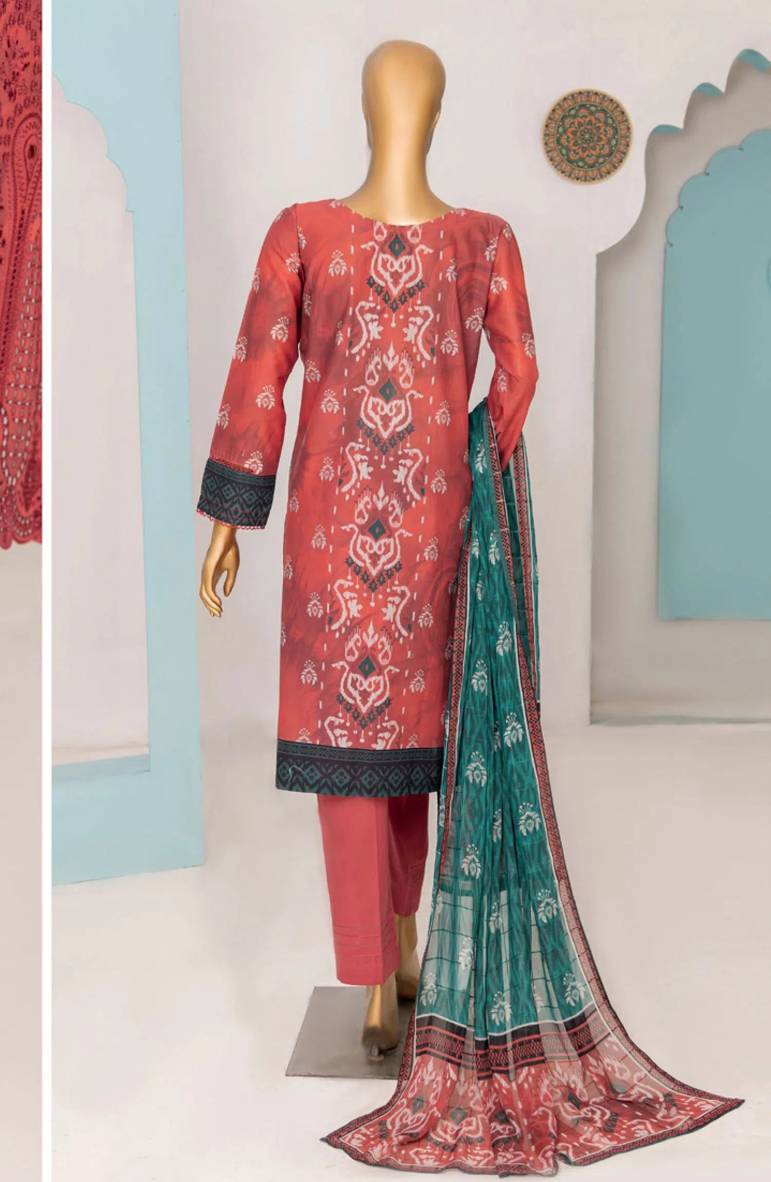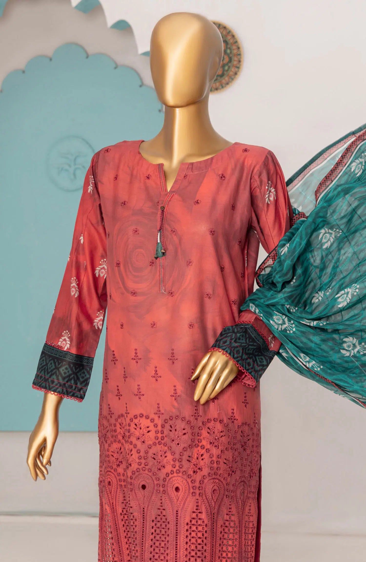 HZ RTW Printkari with Bamber Chiffon Dupatta has been styled in the image for photography and illustrative purposes.