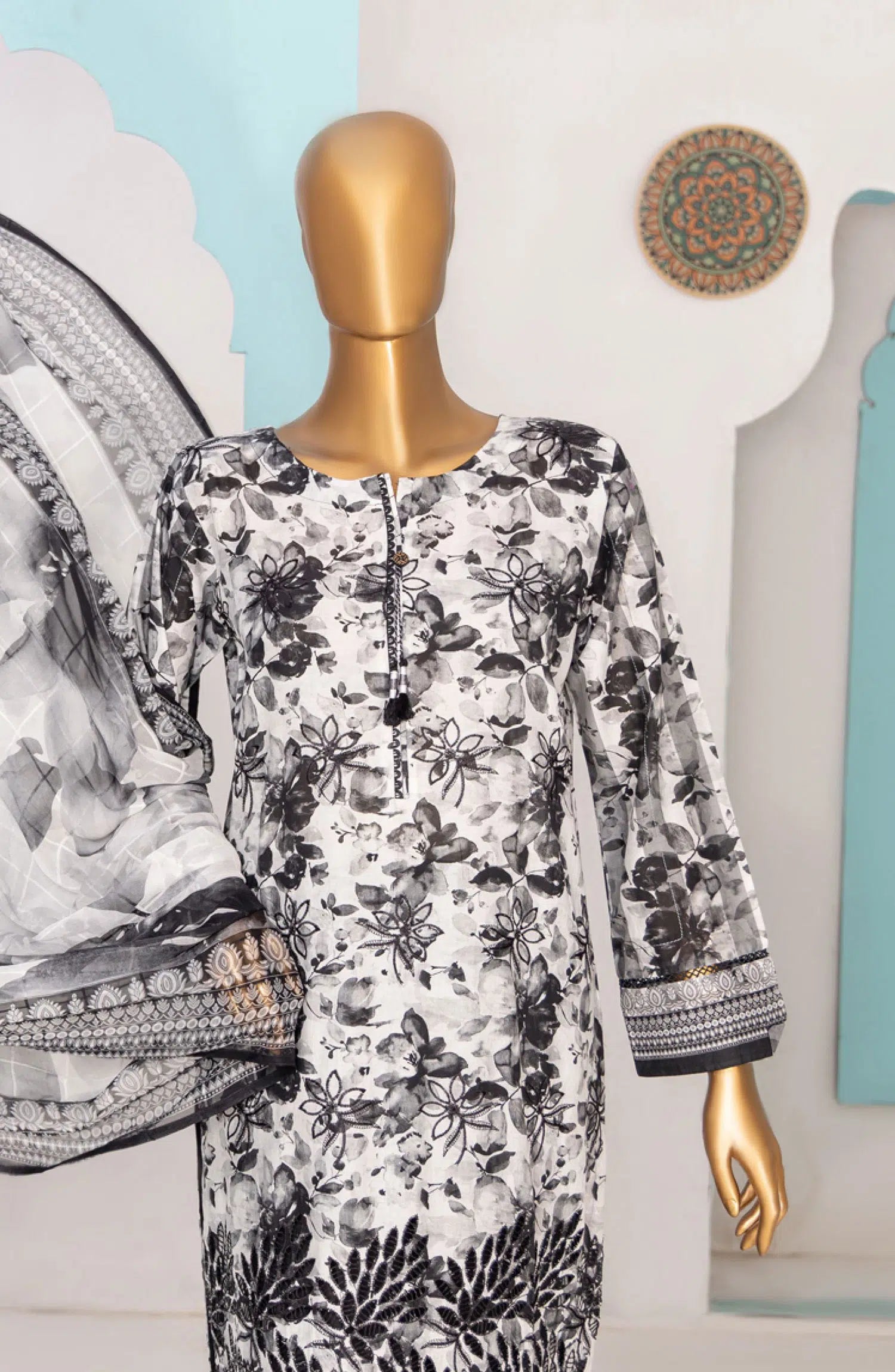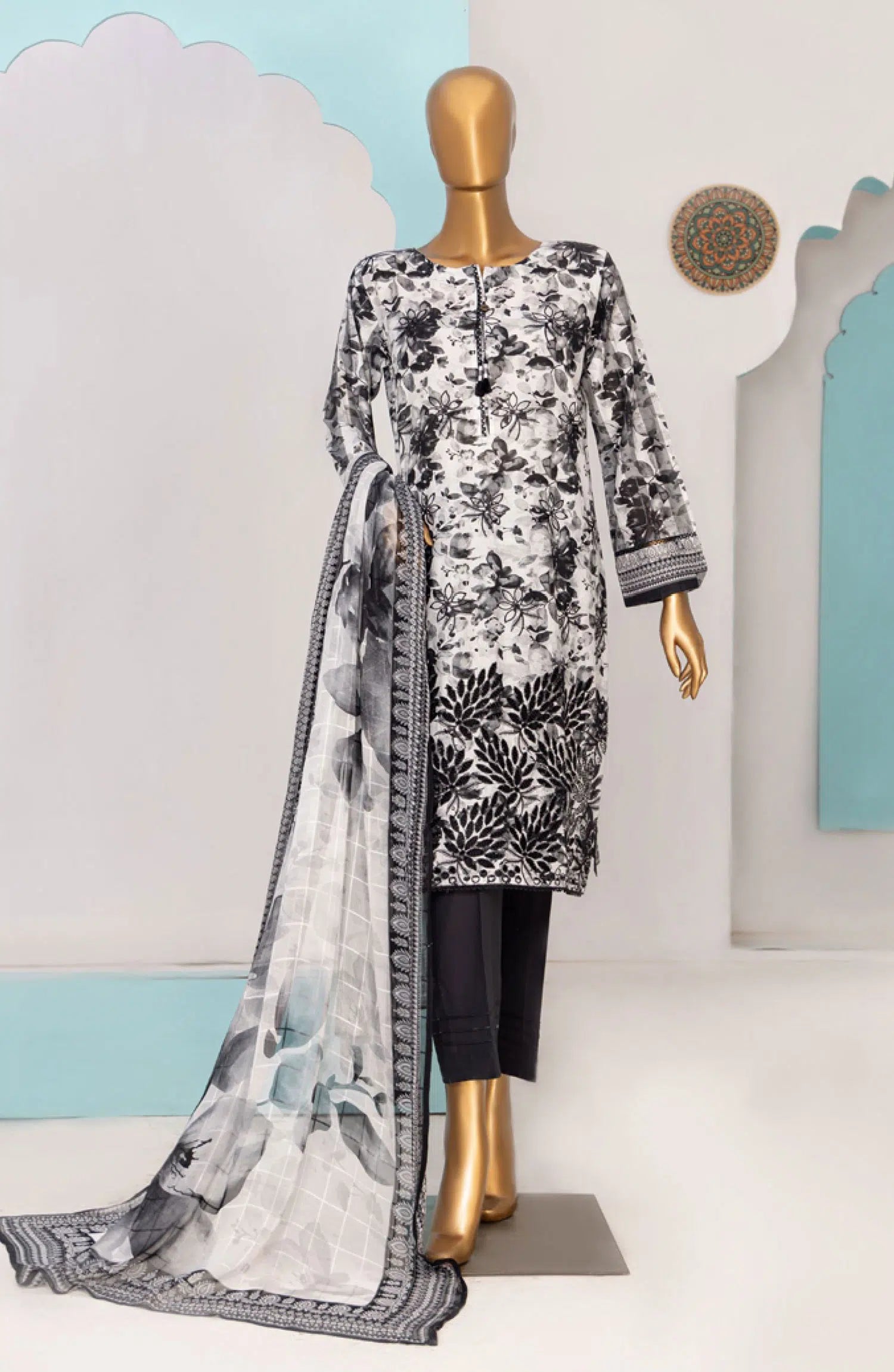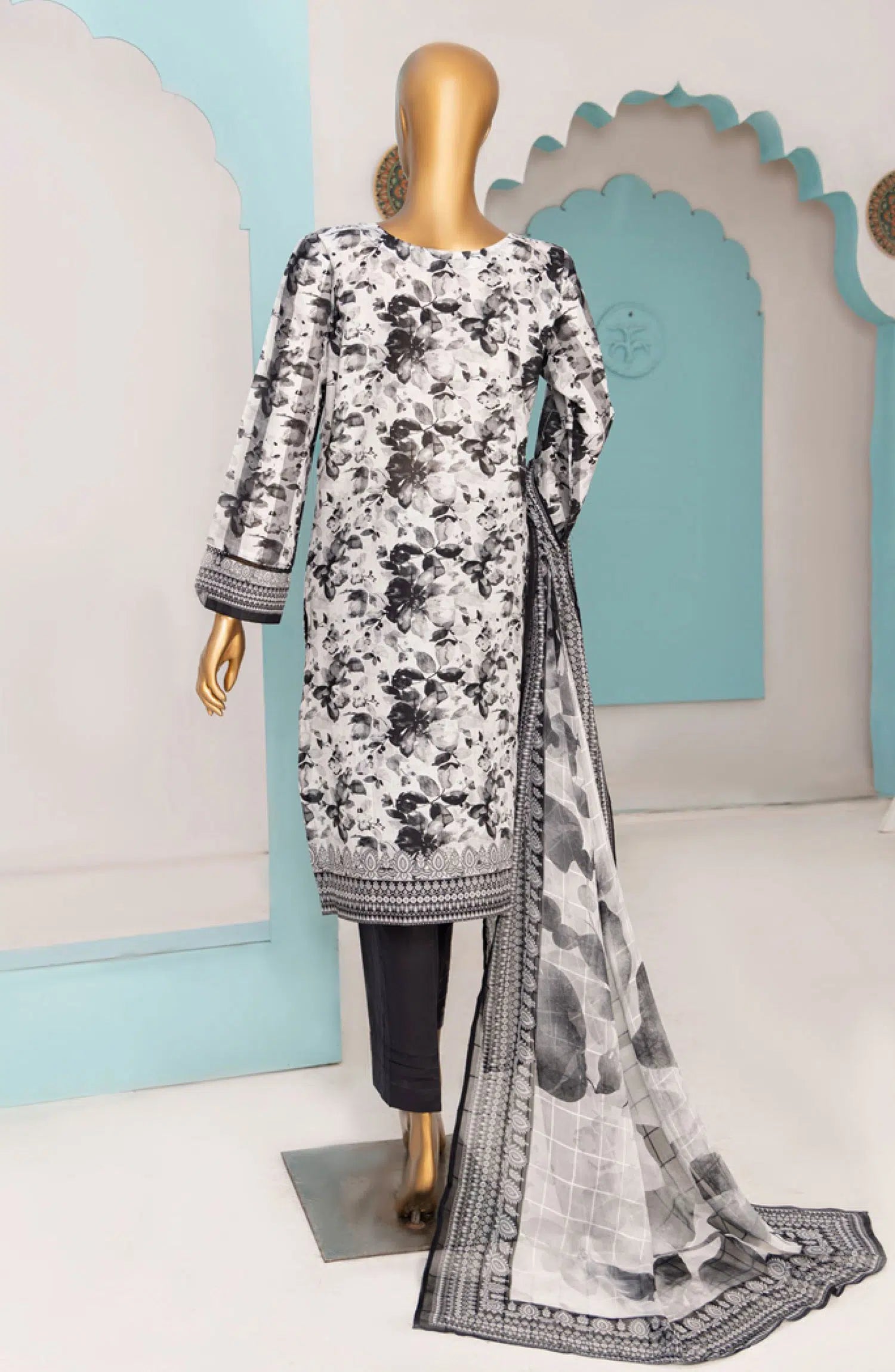 HZ RTW Printkari with Bamber Chiffon Dupatta has been styled in the image for photography and illustrative purposes.
