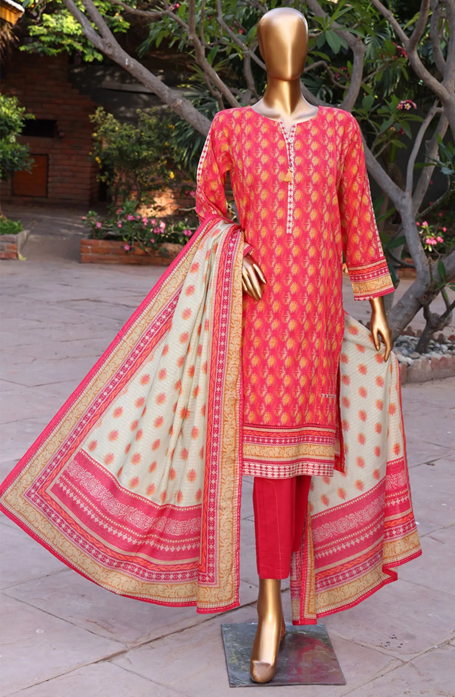 HZ RTW Prints Gardenia 3 Pcs Collection - DESIGN-01 RED MULTI