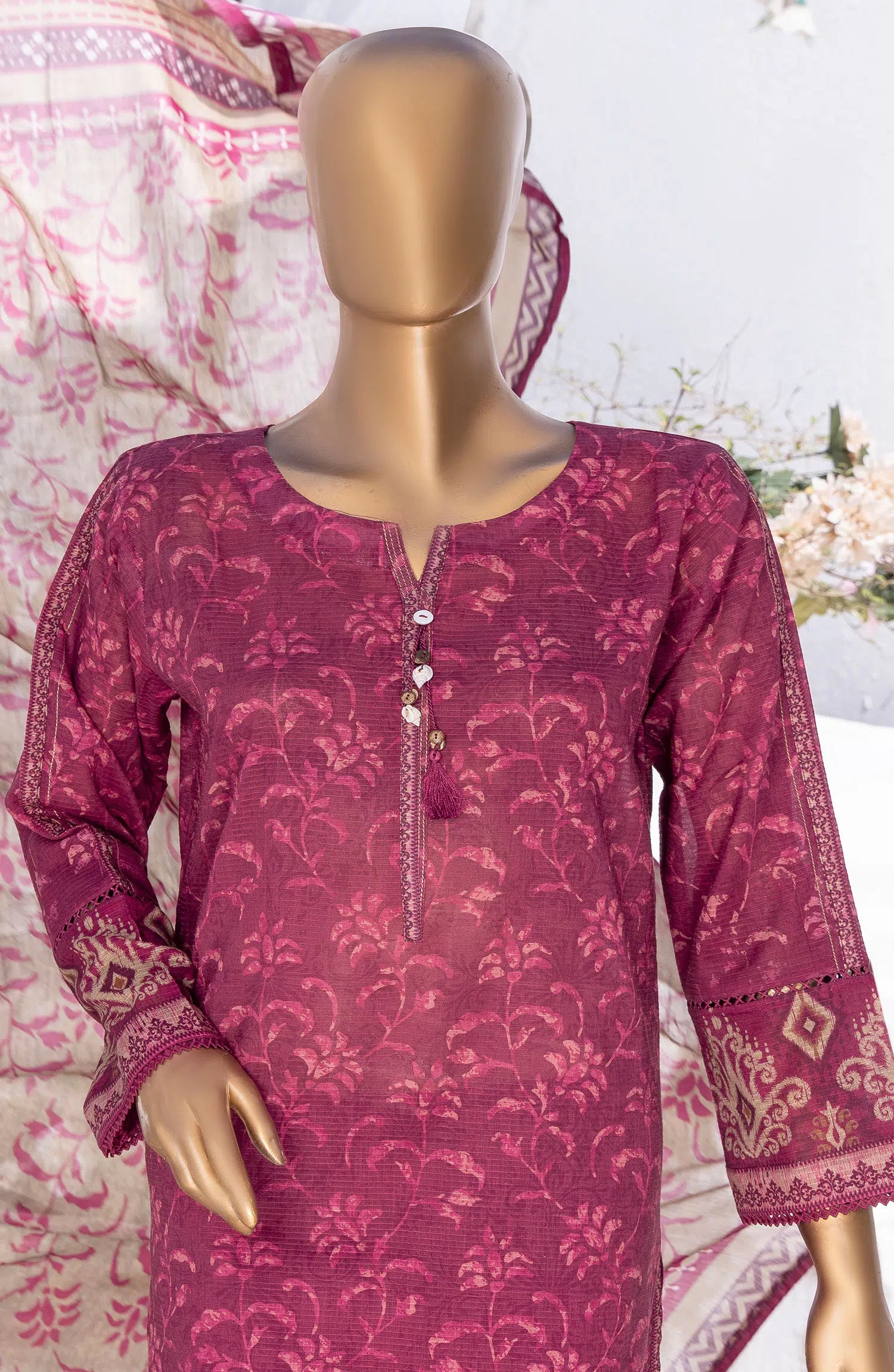 Home HZ RTW Summer Bloom Printed 3 Pc Collection - PNL-408 BURGUNDY