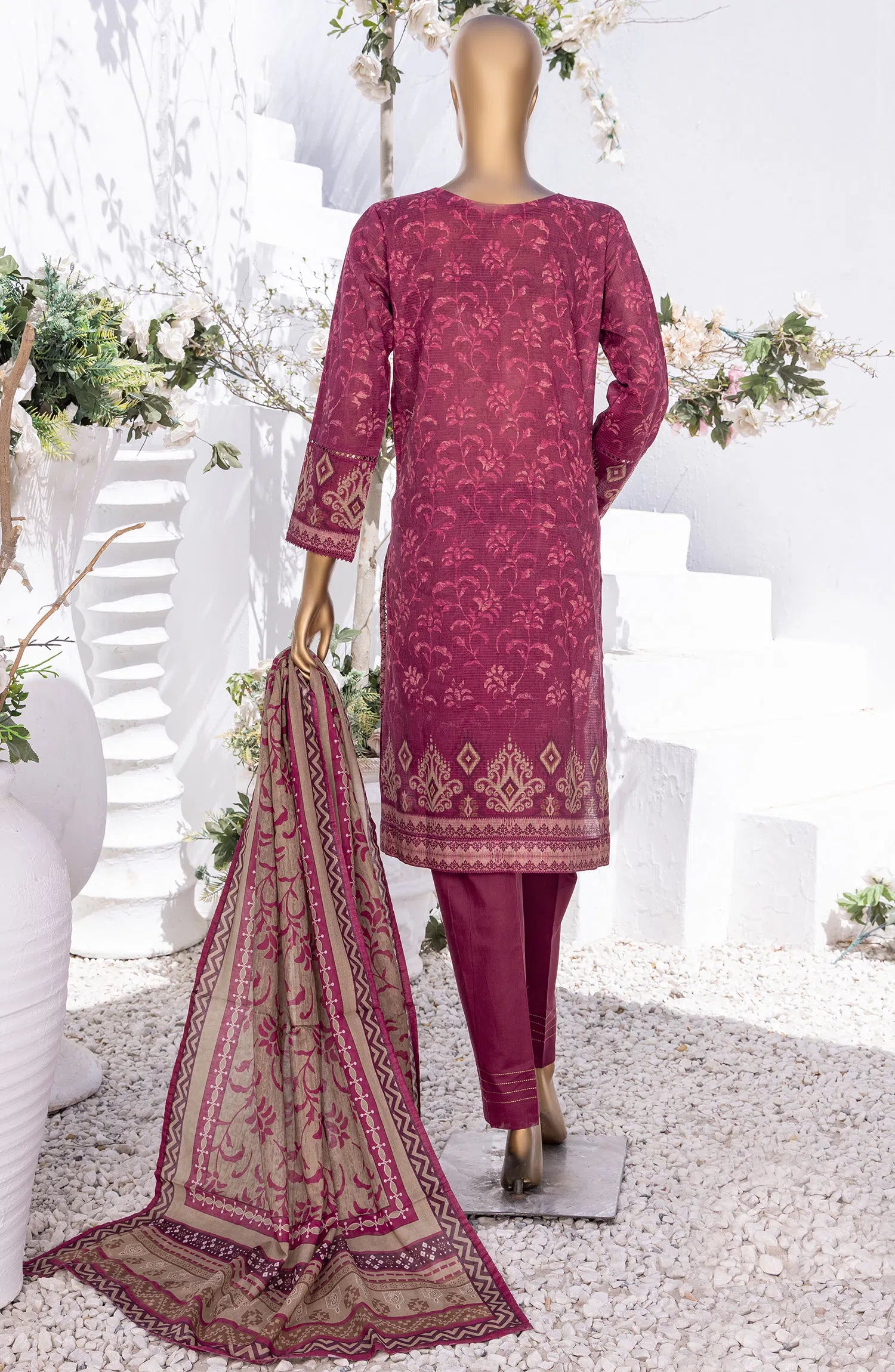 HZ RTW Summer Bloom Printed 3 Pc Collection - PNL-408 BURGUNDY