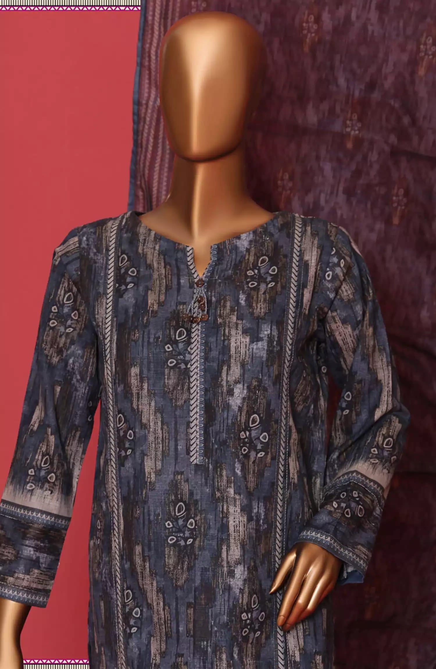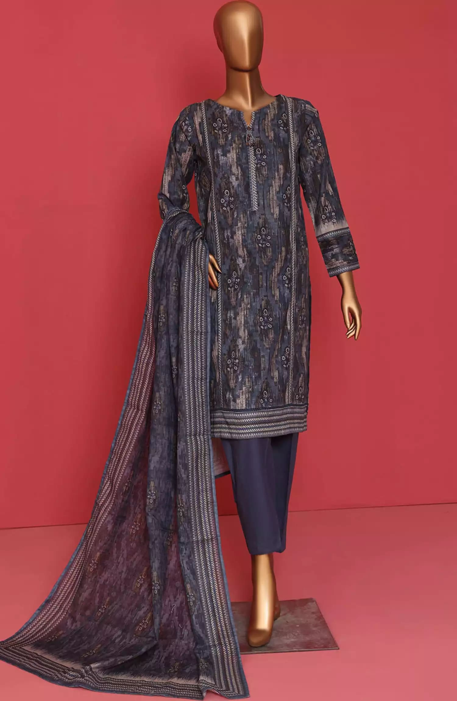 HZ RTW Wintry Prints 3 Pcs Khaddar Series Vol 01-KP-104 MARBLE BLUE