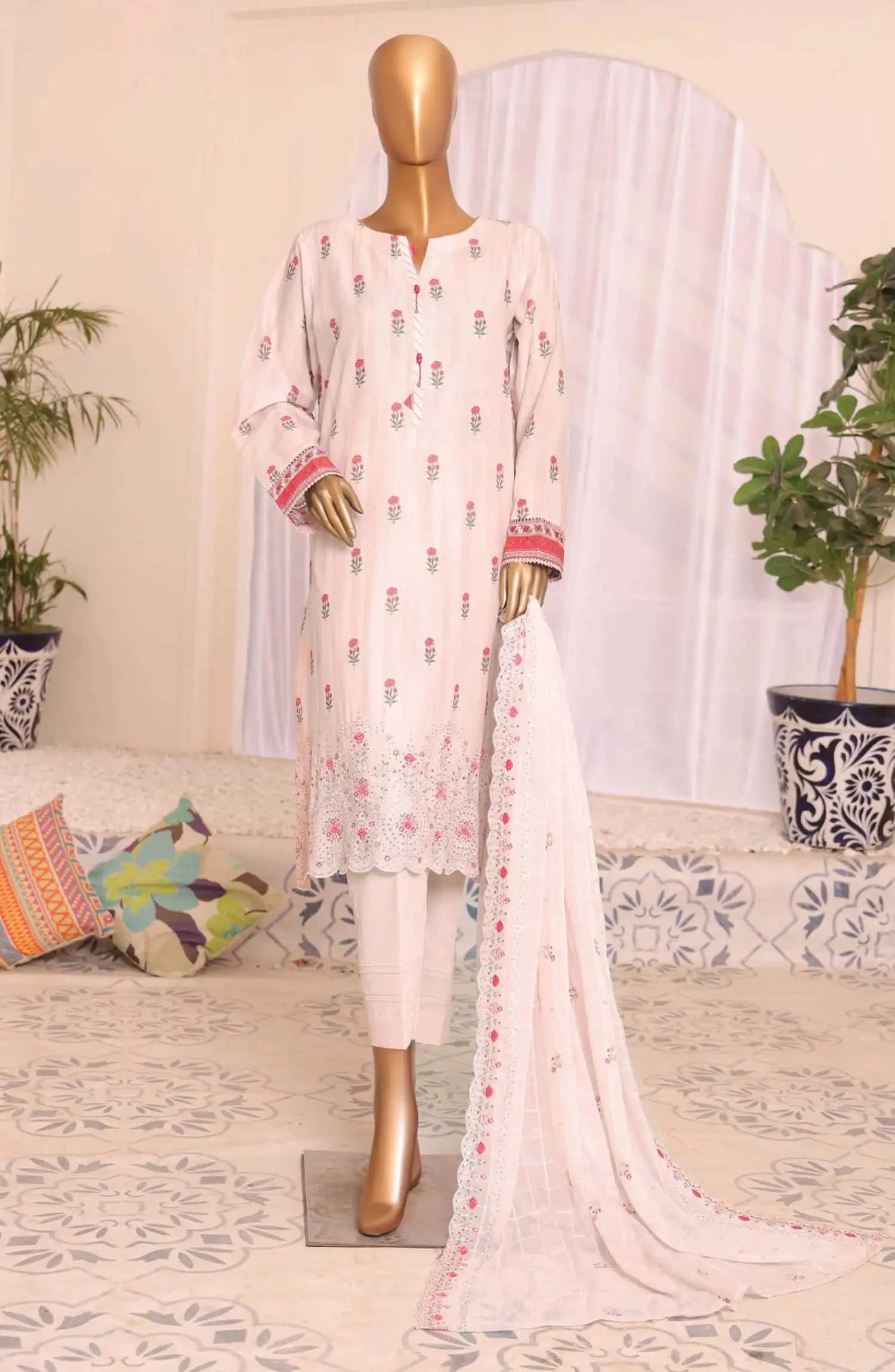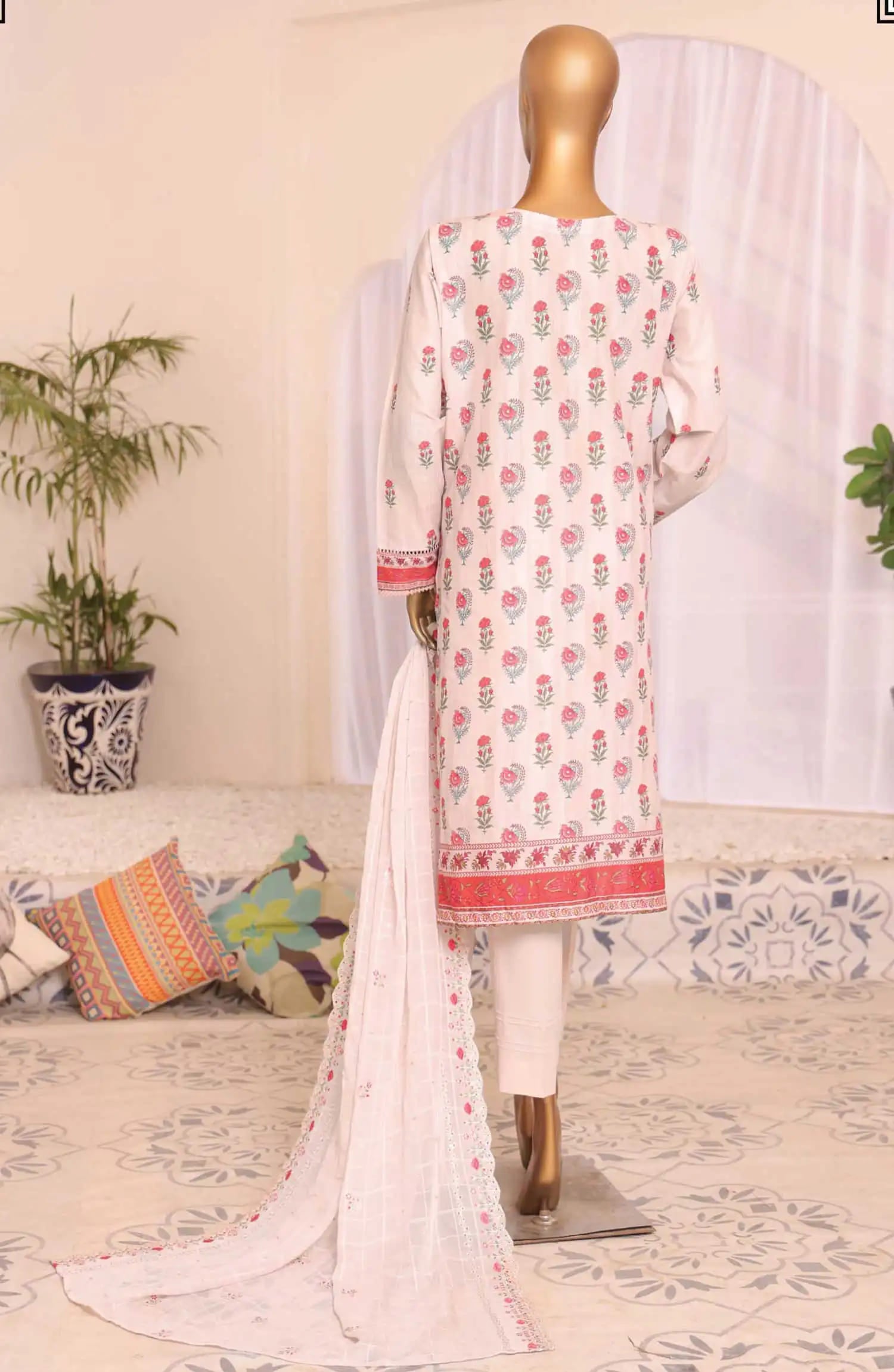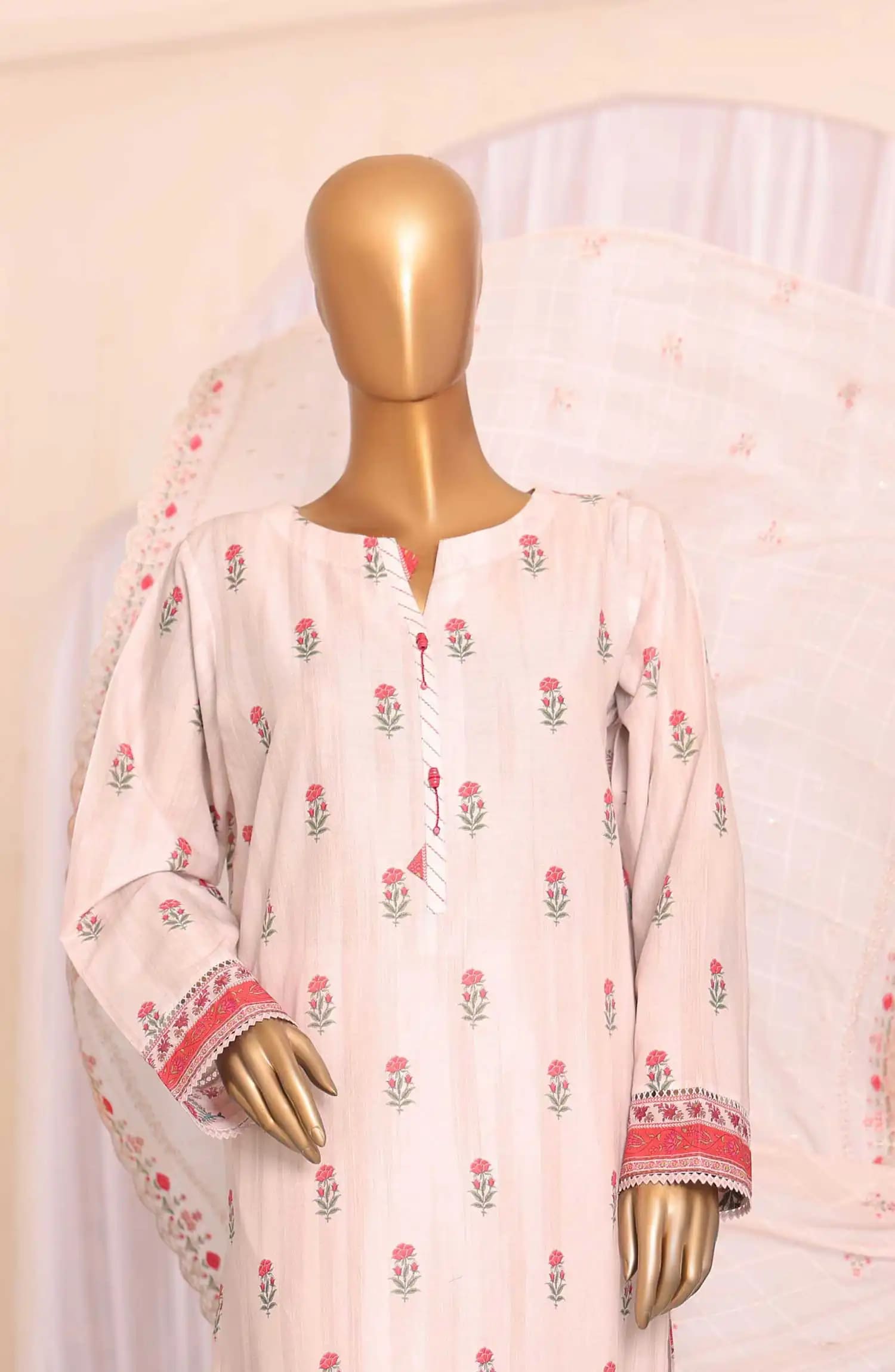 Modest Printed Cotton Stitched 3 Piece Suit - 9705-Wht - MOD25PRF - White - Festive Girls Collection