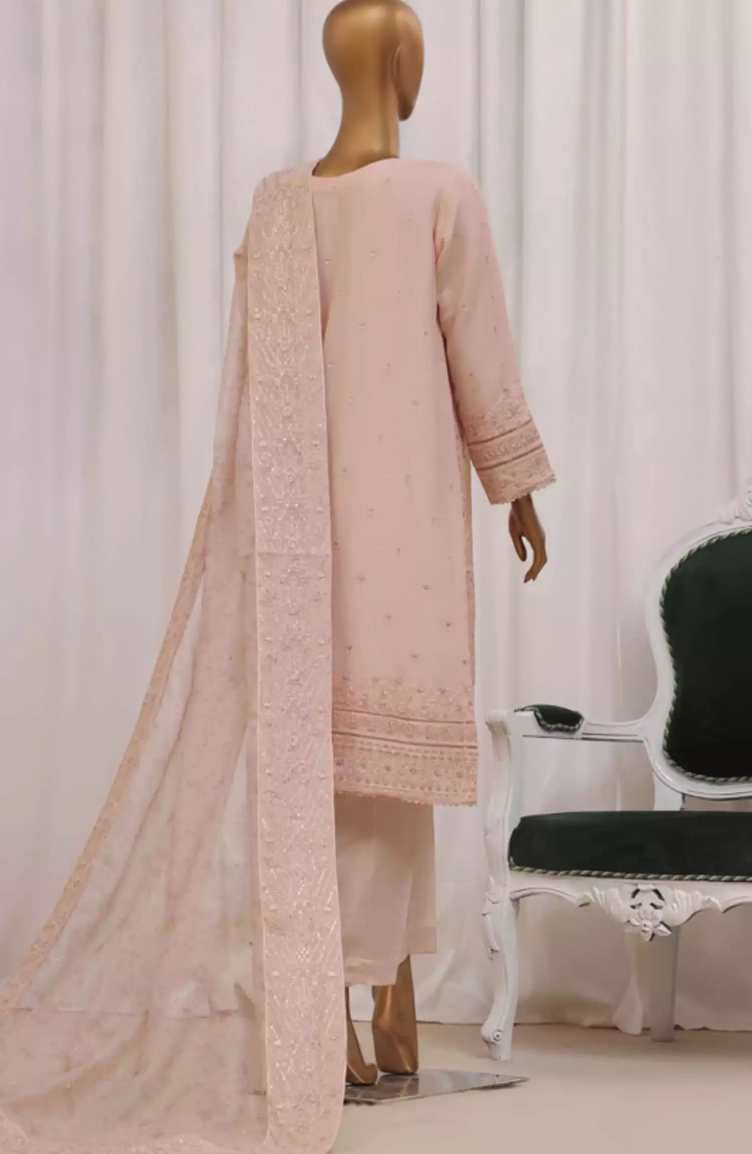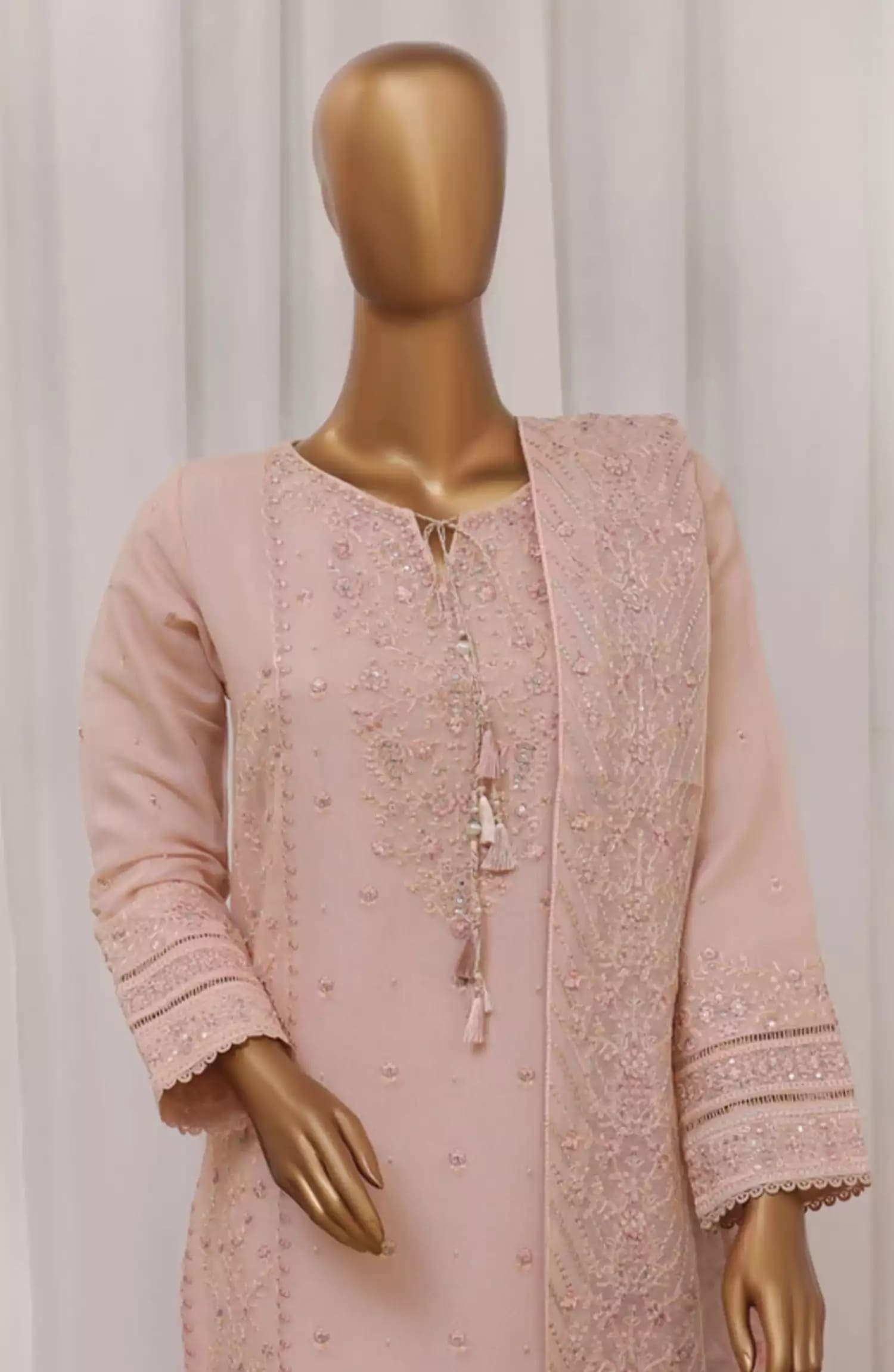 HZ Sheer RTW Formals Embroidered Khaddi Net Collection - HZK-190 POWDER PINK