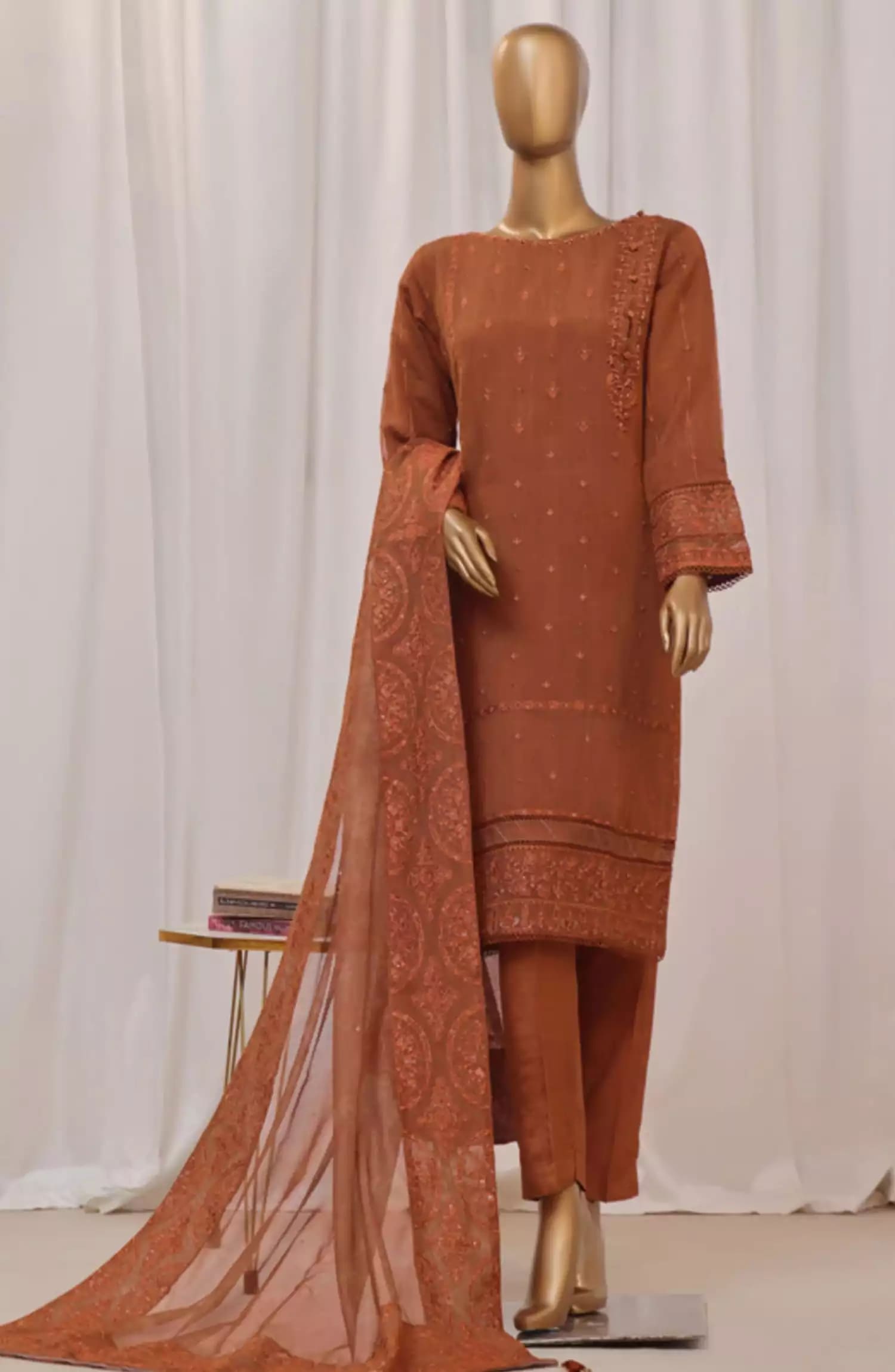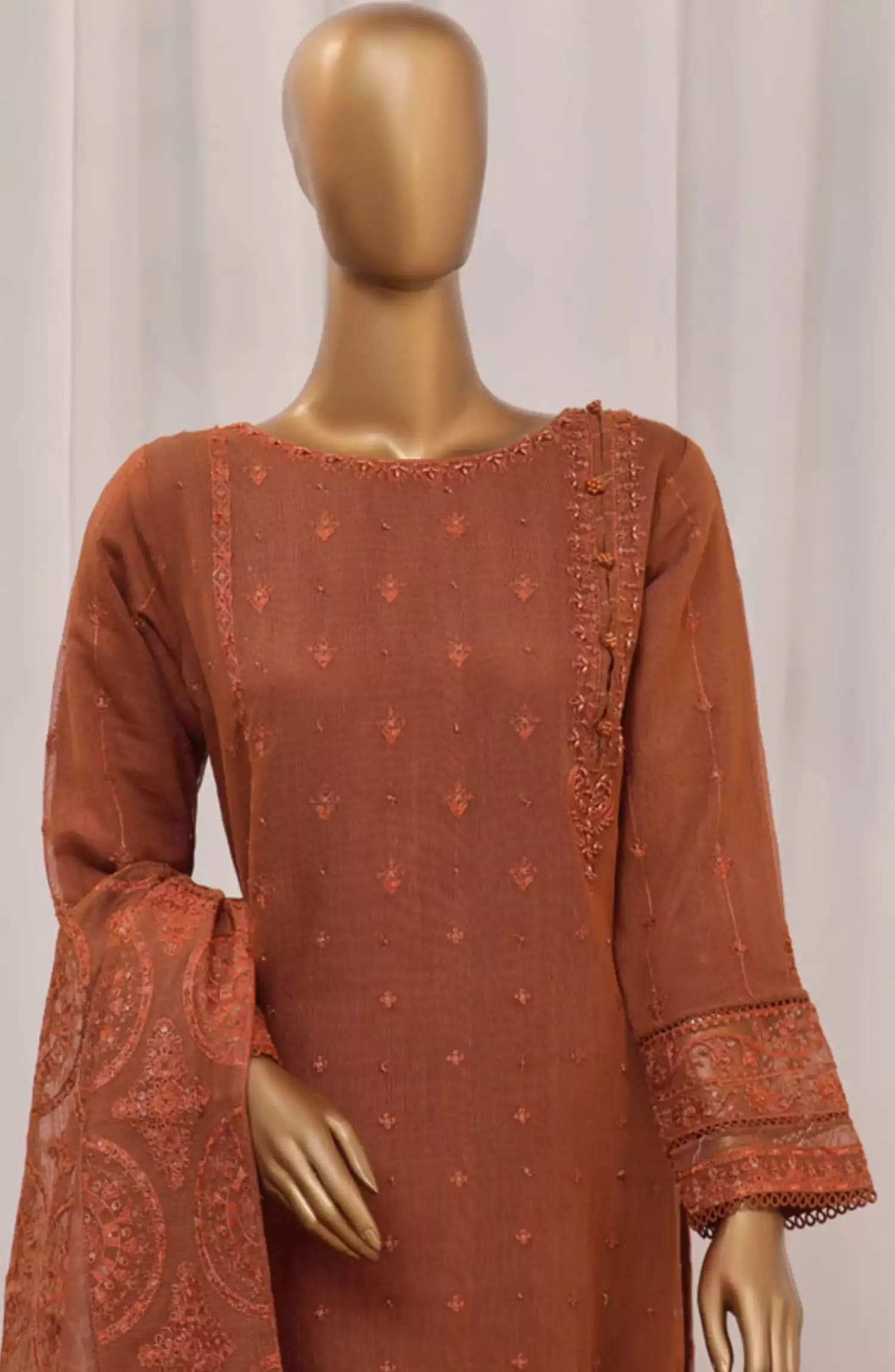 HZ Sheer RTW Formals Embroidered Khaddi Net Collection - HZK-193 RUST
