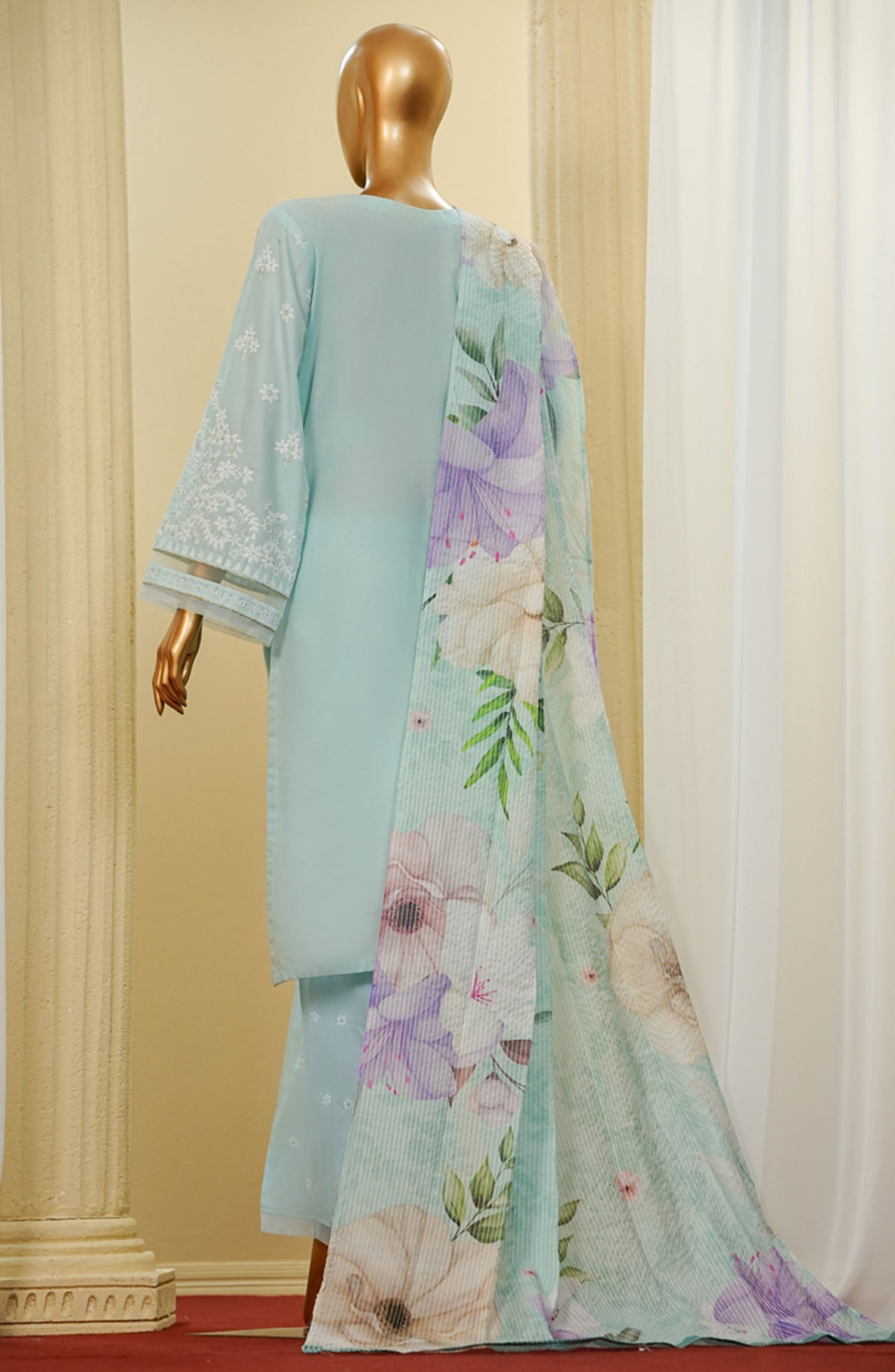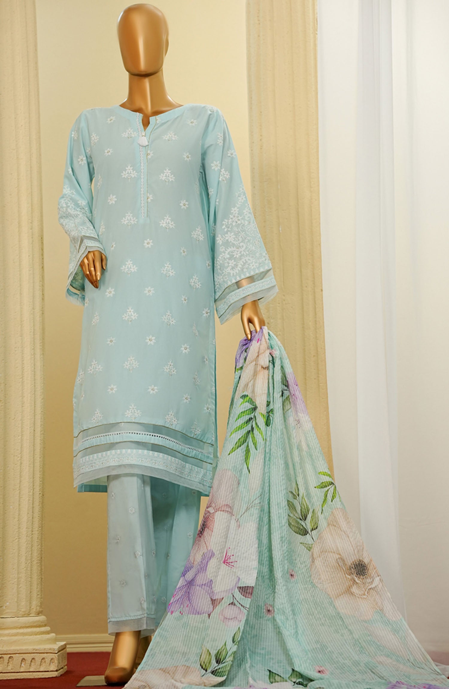 The standard style comes as a long-sleeved kameez with dupatta and trouser/shawlar.