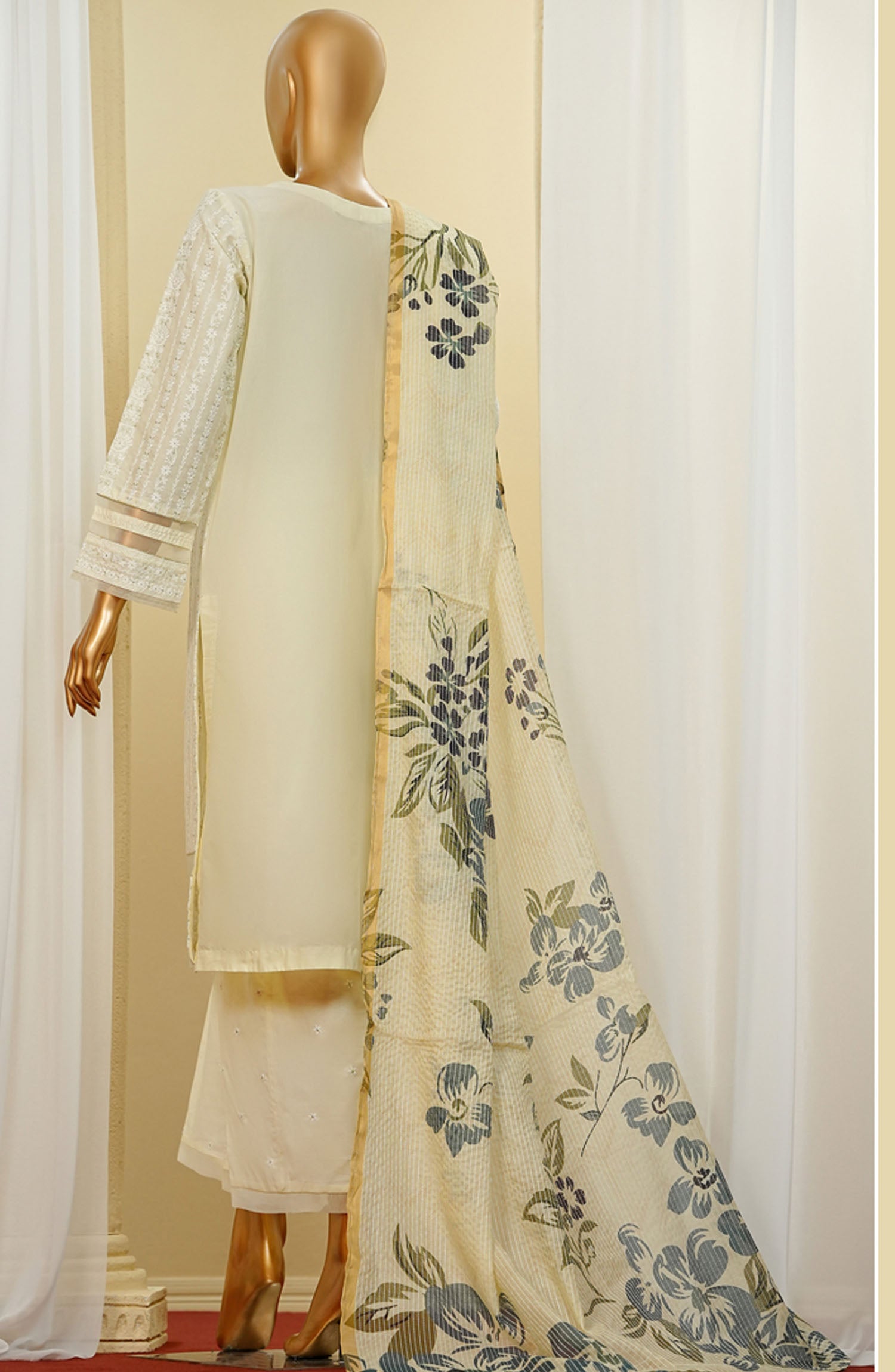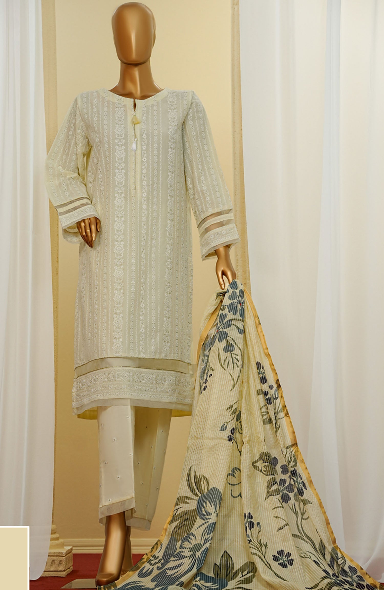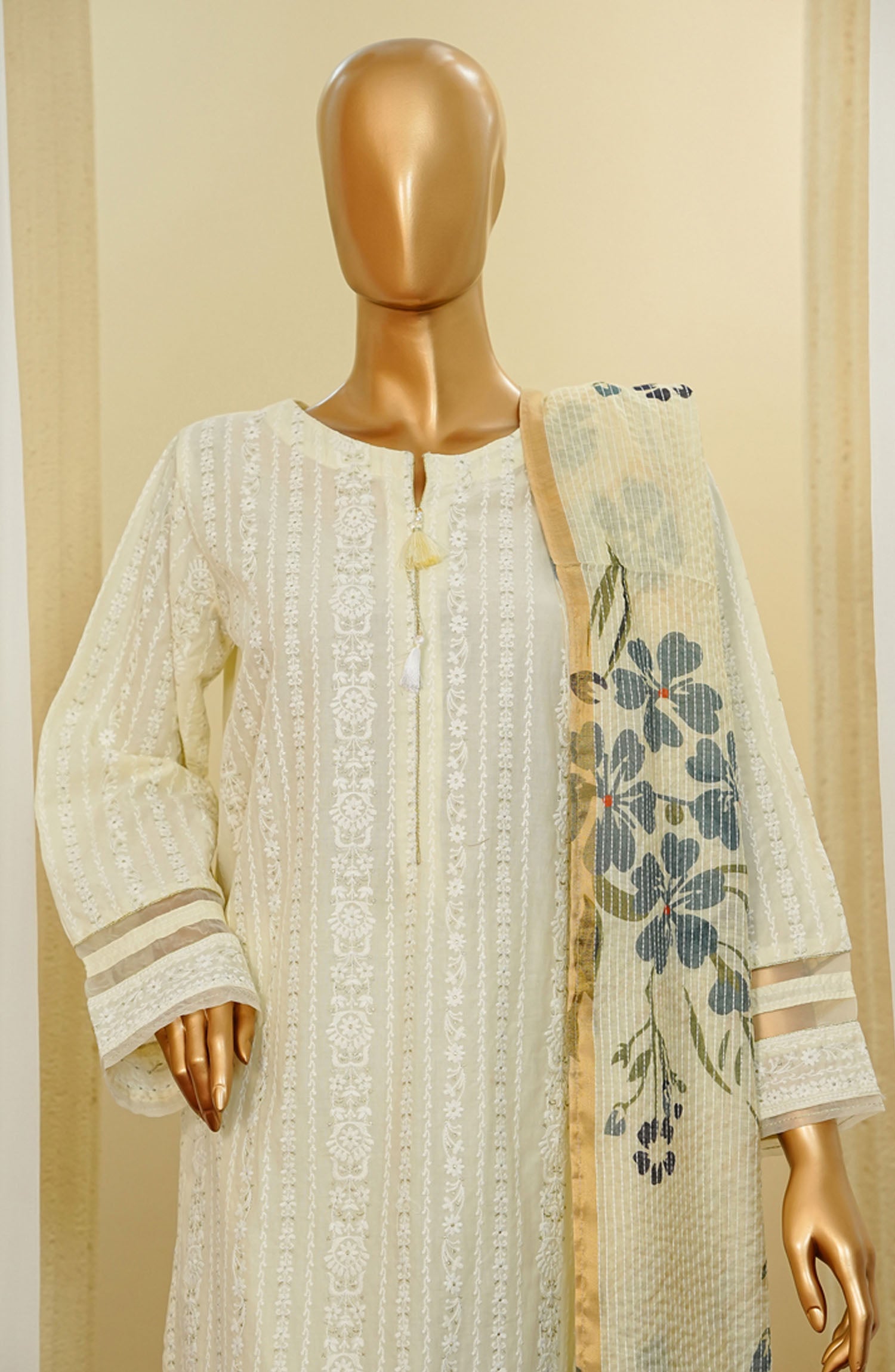 HZ Textile Chikankari Cotton Stitched 3 Piece Suit - PWC-106 - HZ25CTVE - Off White - Summer Collection