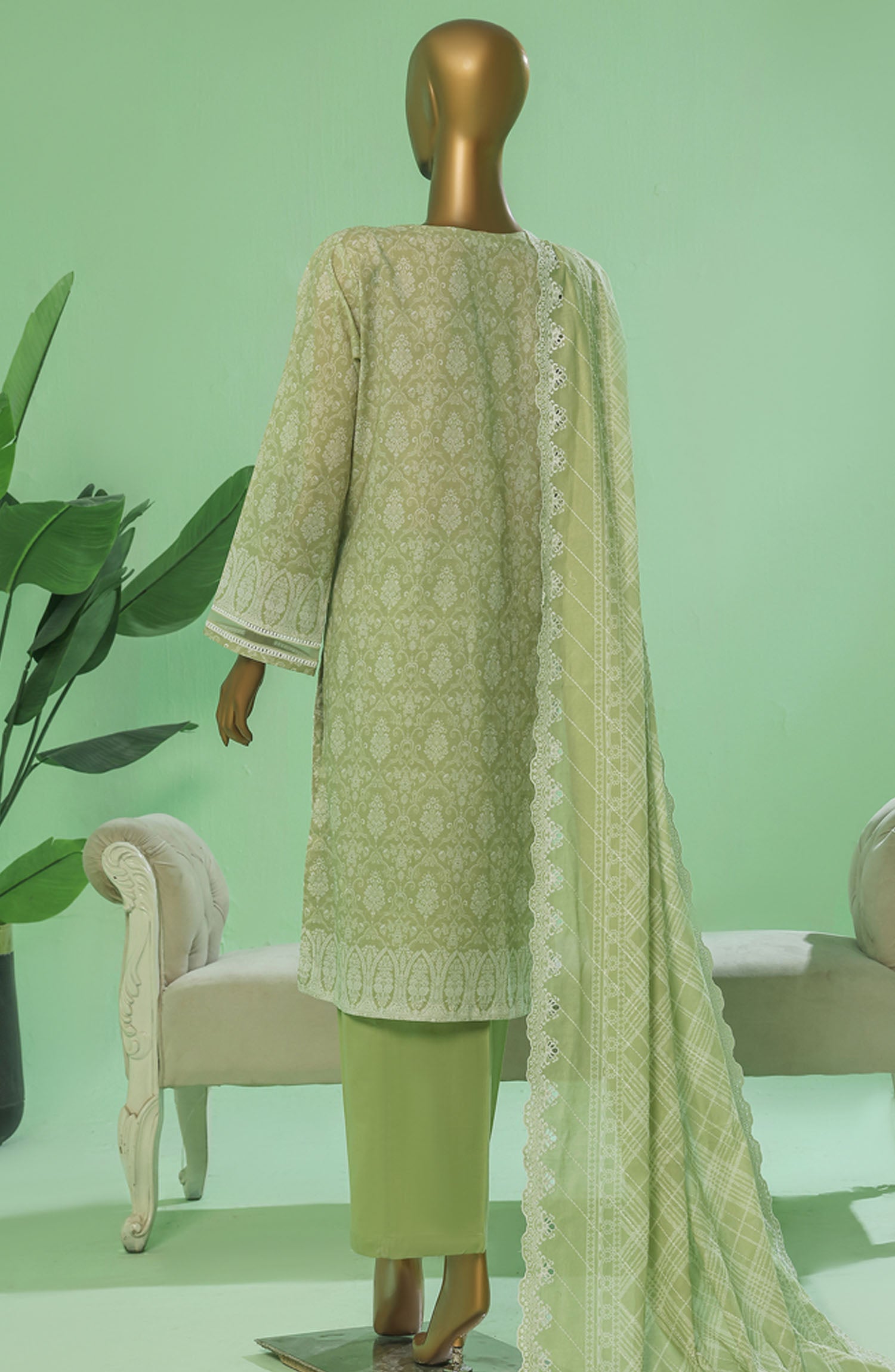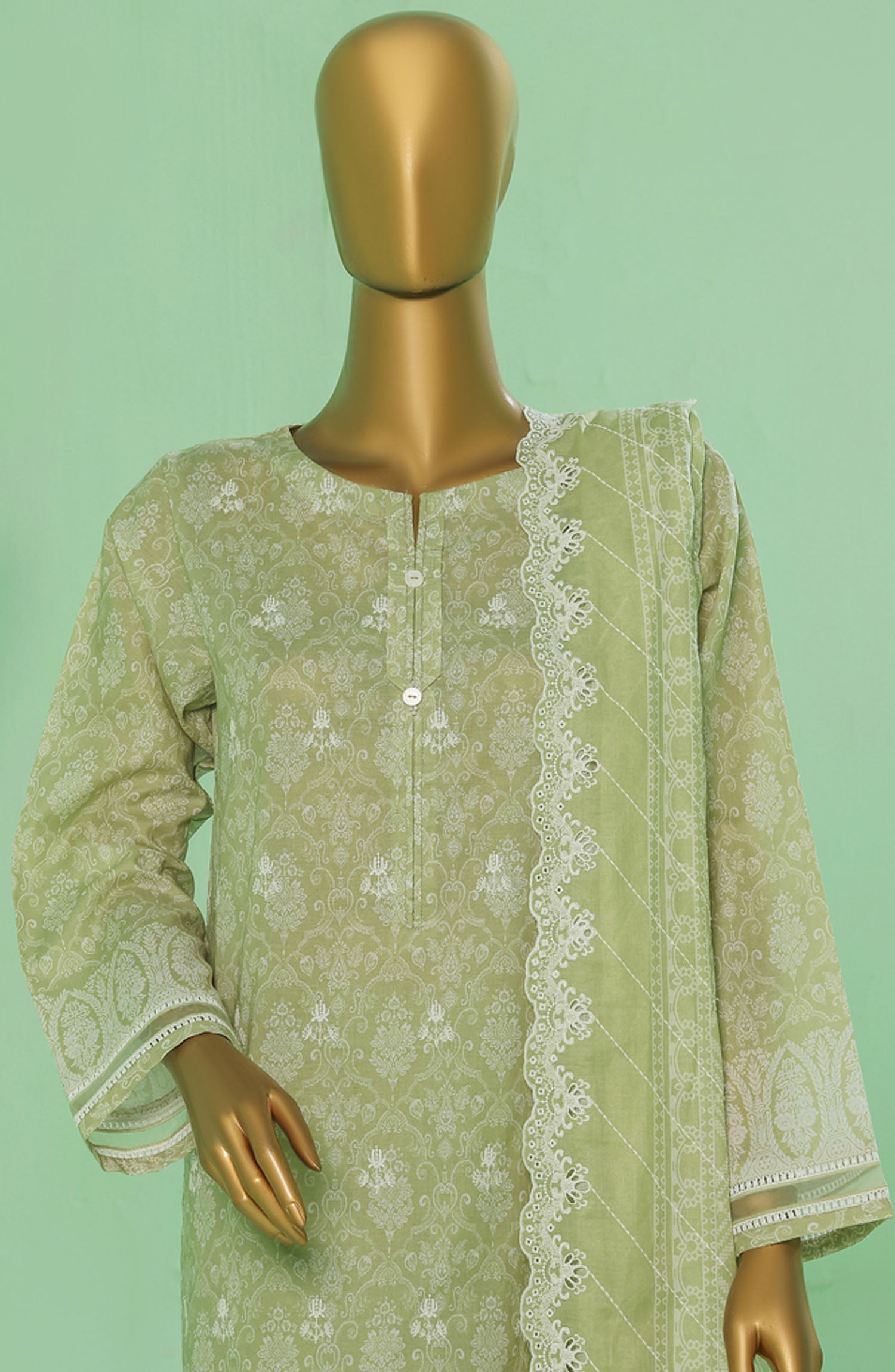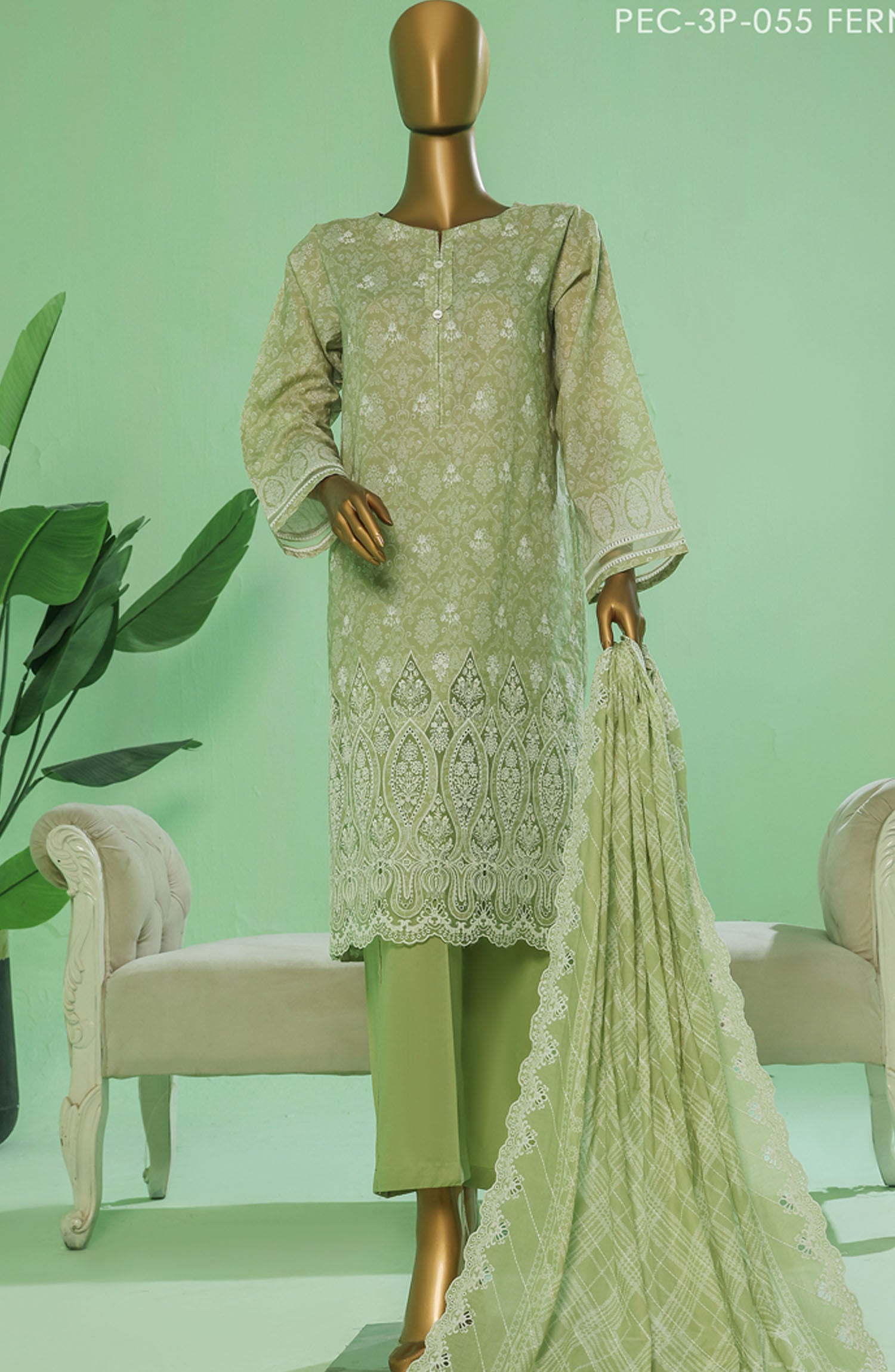 HZ Textile Chikankari Lawn Stitched 3 Piece Suit - PEC-3P-055 Fern Green - HZ25PTKV3 - Green - Eid Collection