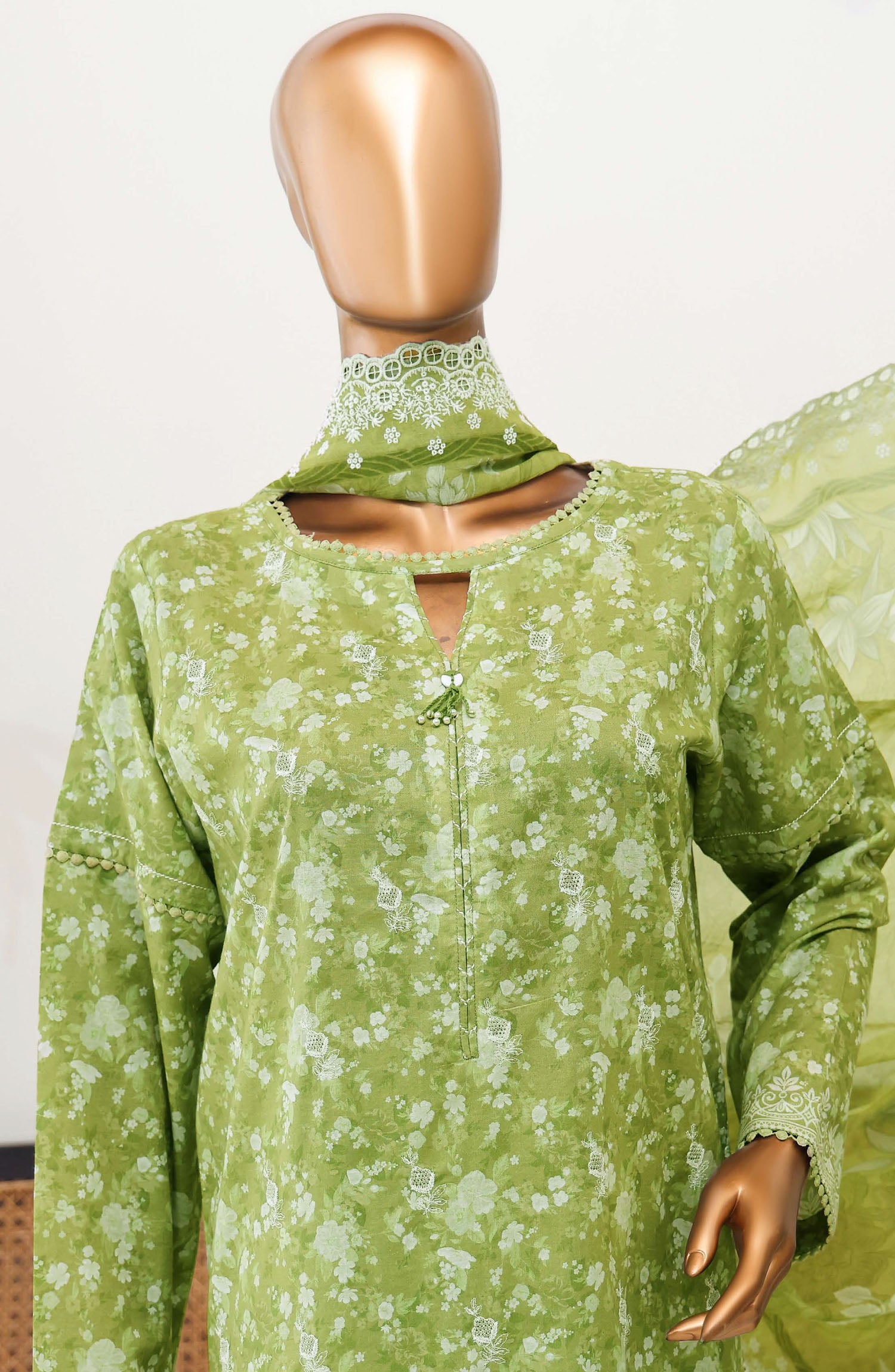 The standard style comes as a long-sleeved kameez with dupatta and trouser/shawlar.