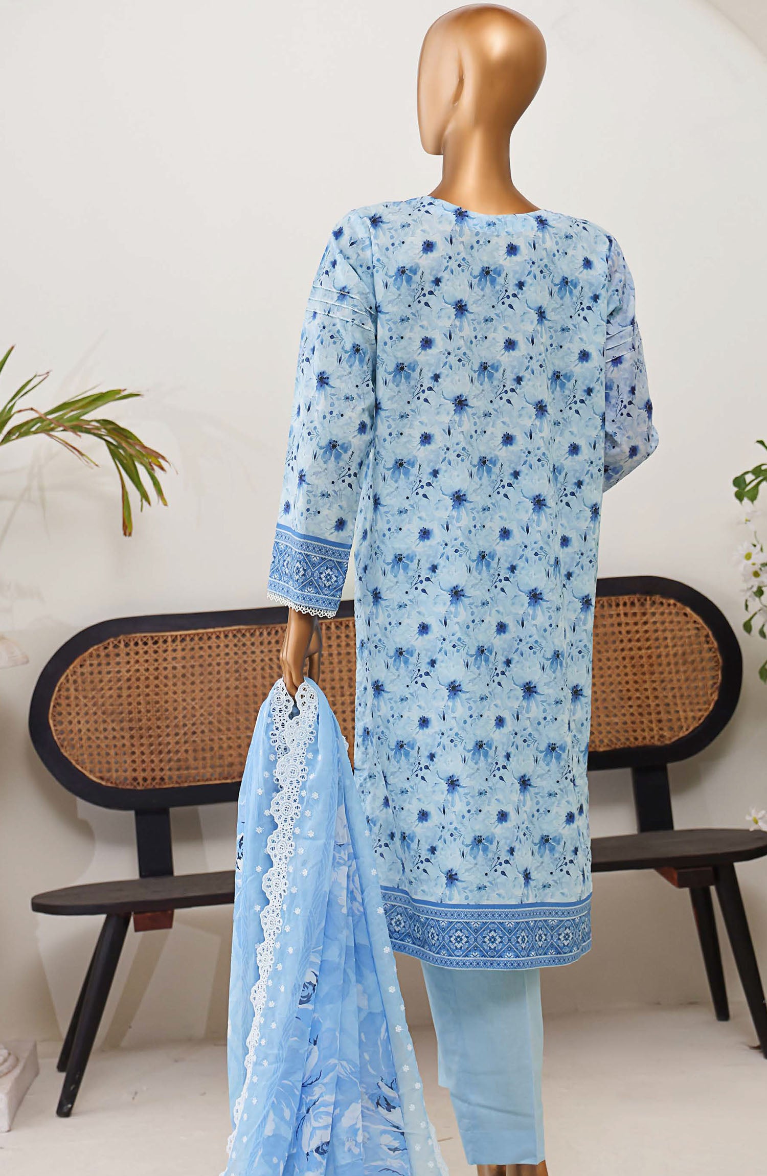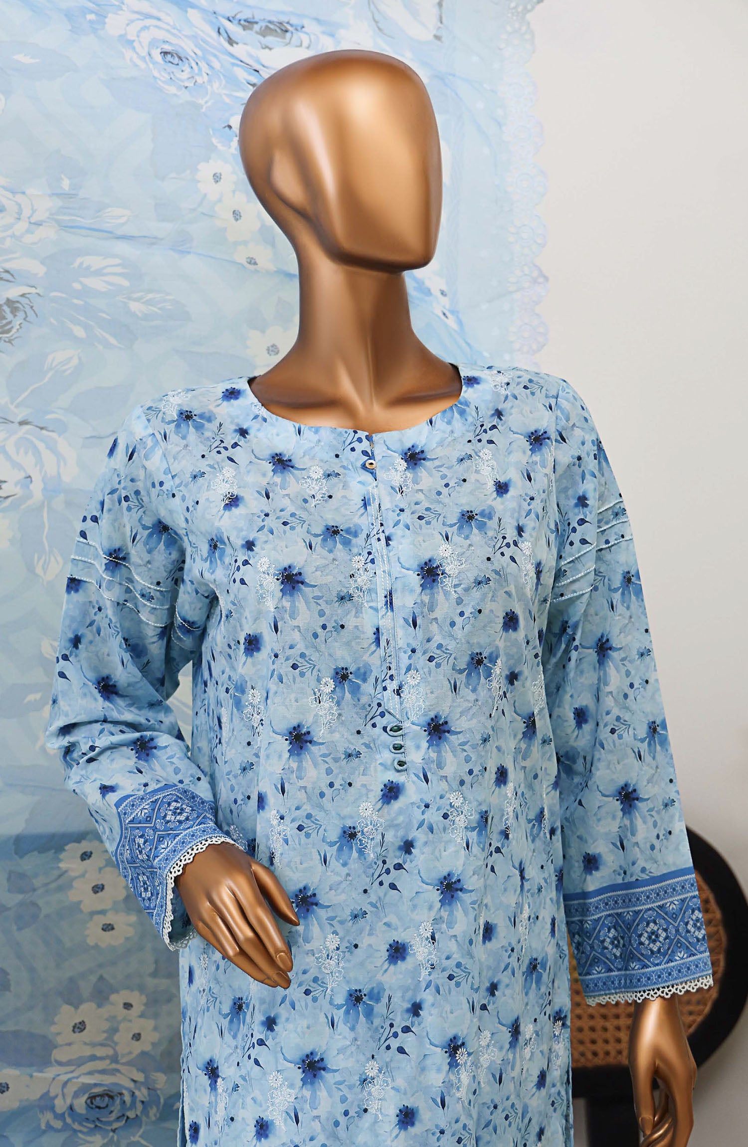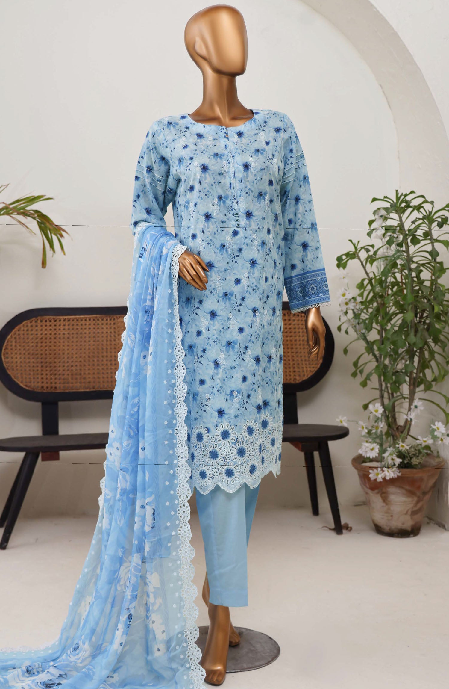 HZ Textile Chikankari Lawn Unstitched 3 Piece Suit - PEC-971 - HZ25PEC - Blue - Summer Collection