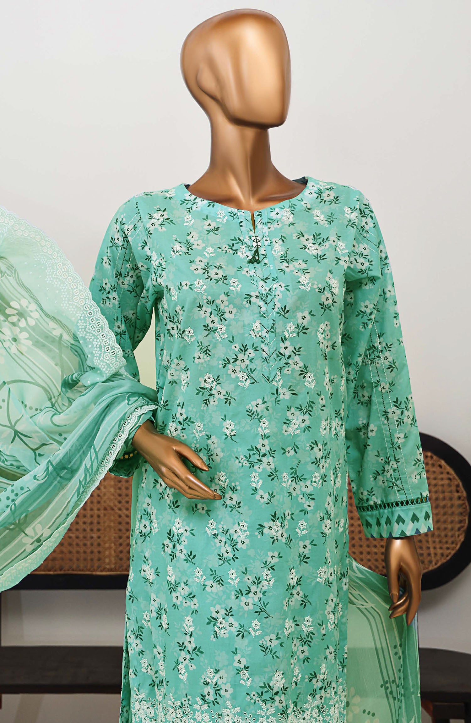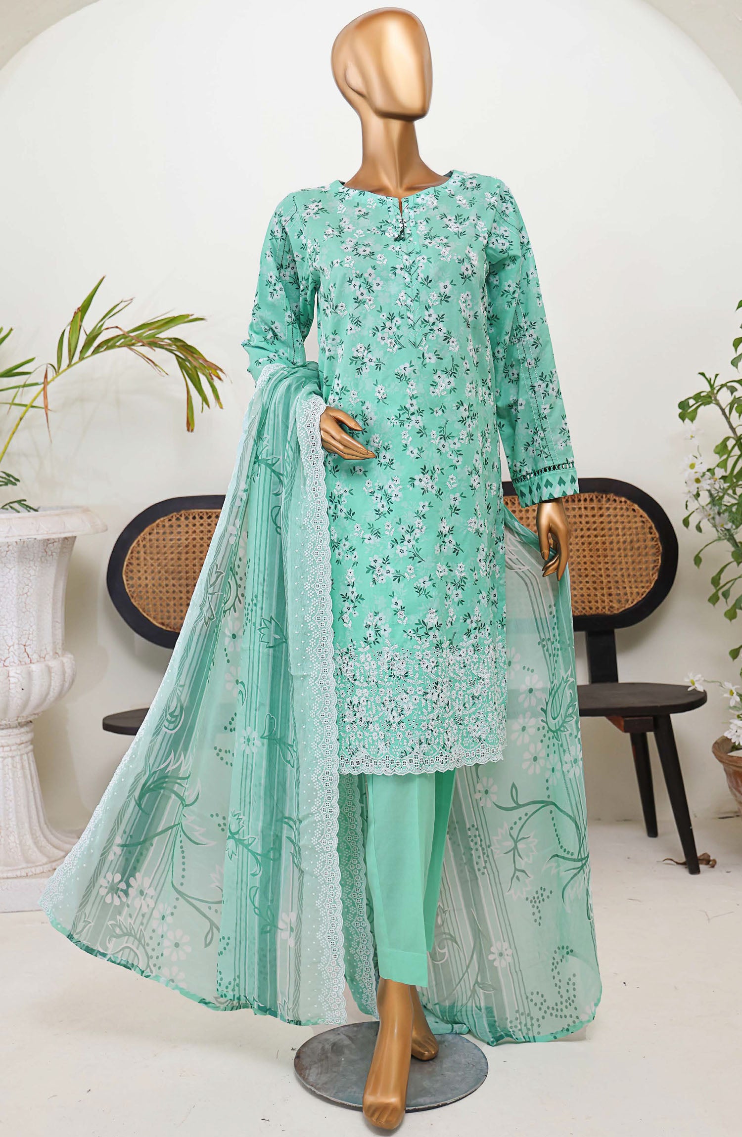 HZ Textile Chikankari Lawn Unstitched 3 Piece Suit - PEC-972 - HZ25PEC - Sea Green - Summer Collection