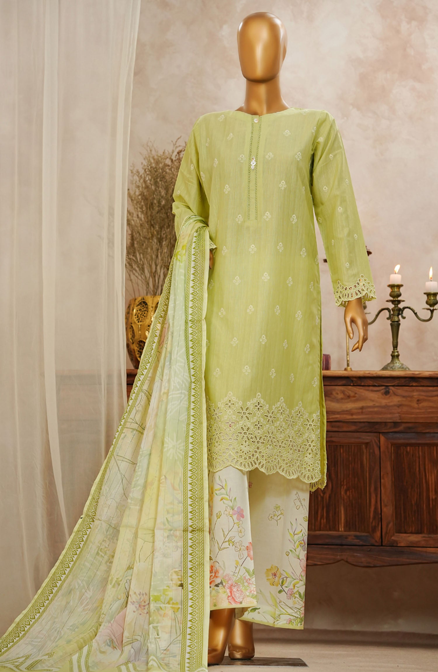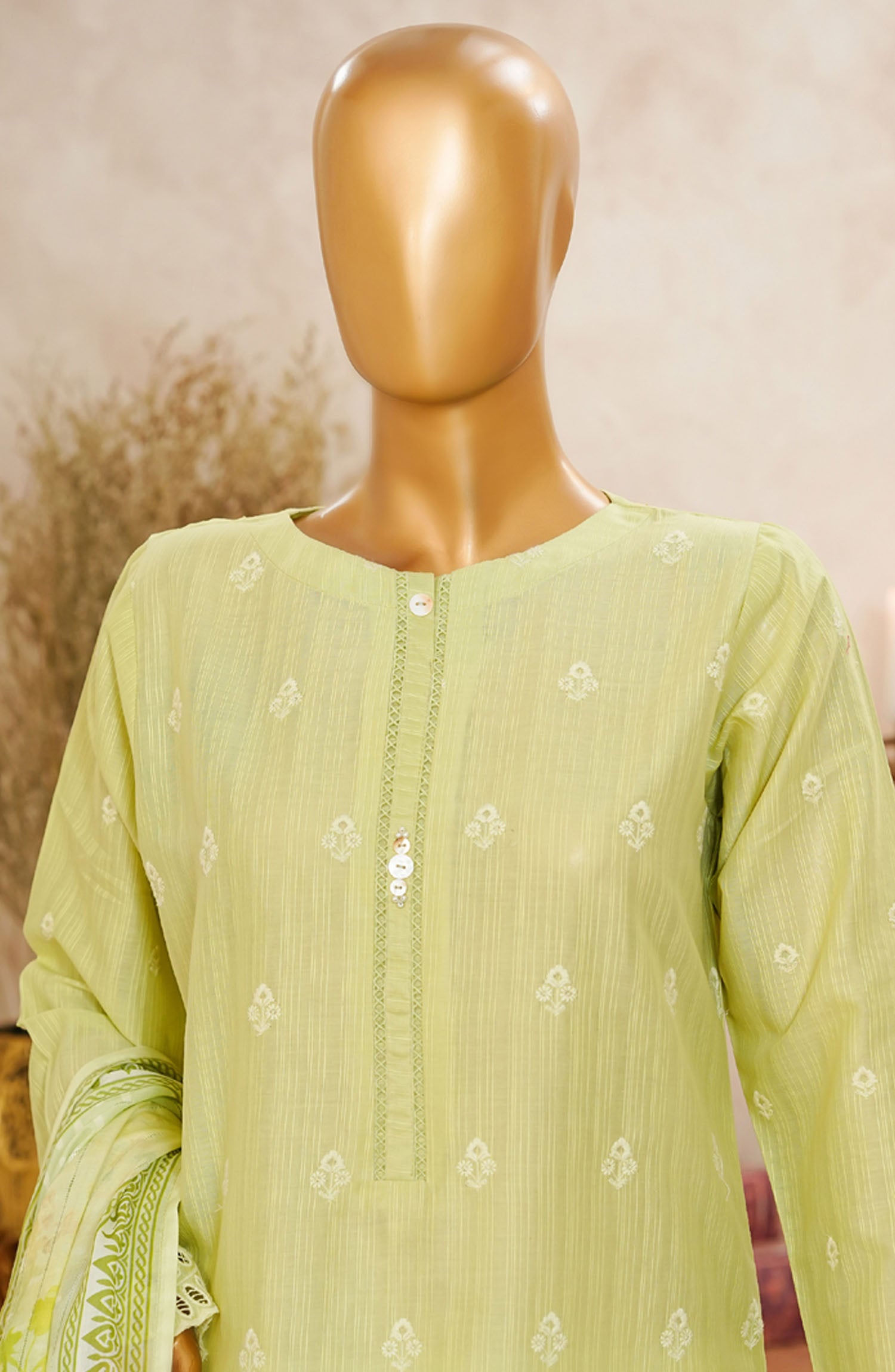 HZ Textile Chikankari Slub Stitched 3 Piece Suit - SSPE-3P-002 Green - HZ25CHKSS - Summer Collection