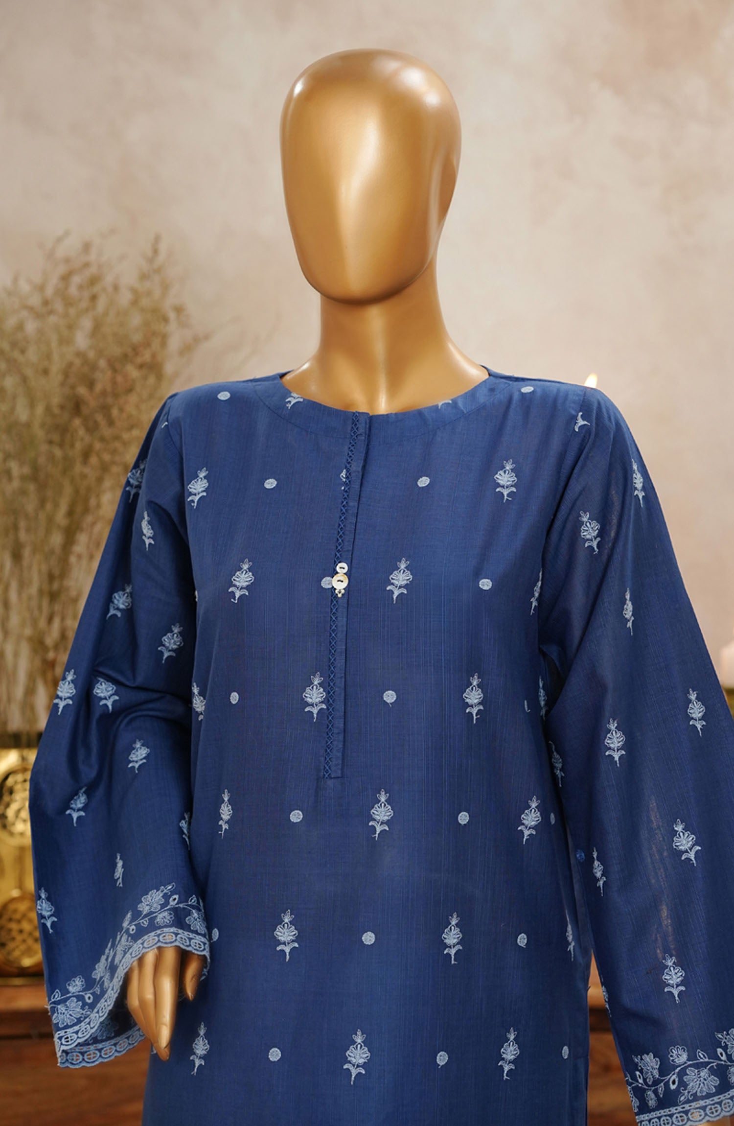 Home HZ Textile Chikankari Slub Stitched 3 Piece Suit - SSPE-3P-003 Navy - HZ25CHKSS - Summer Collection