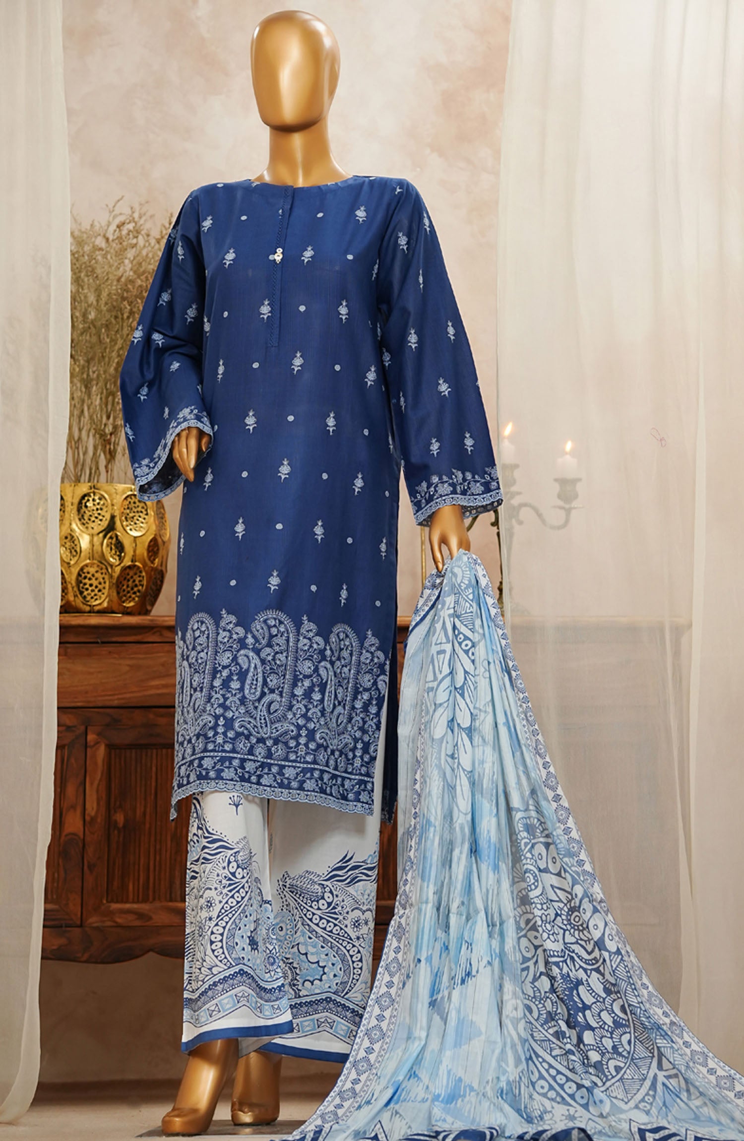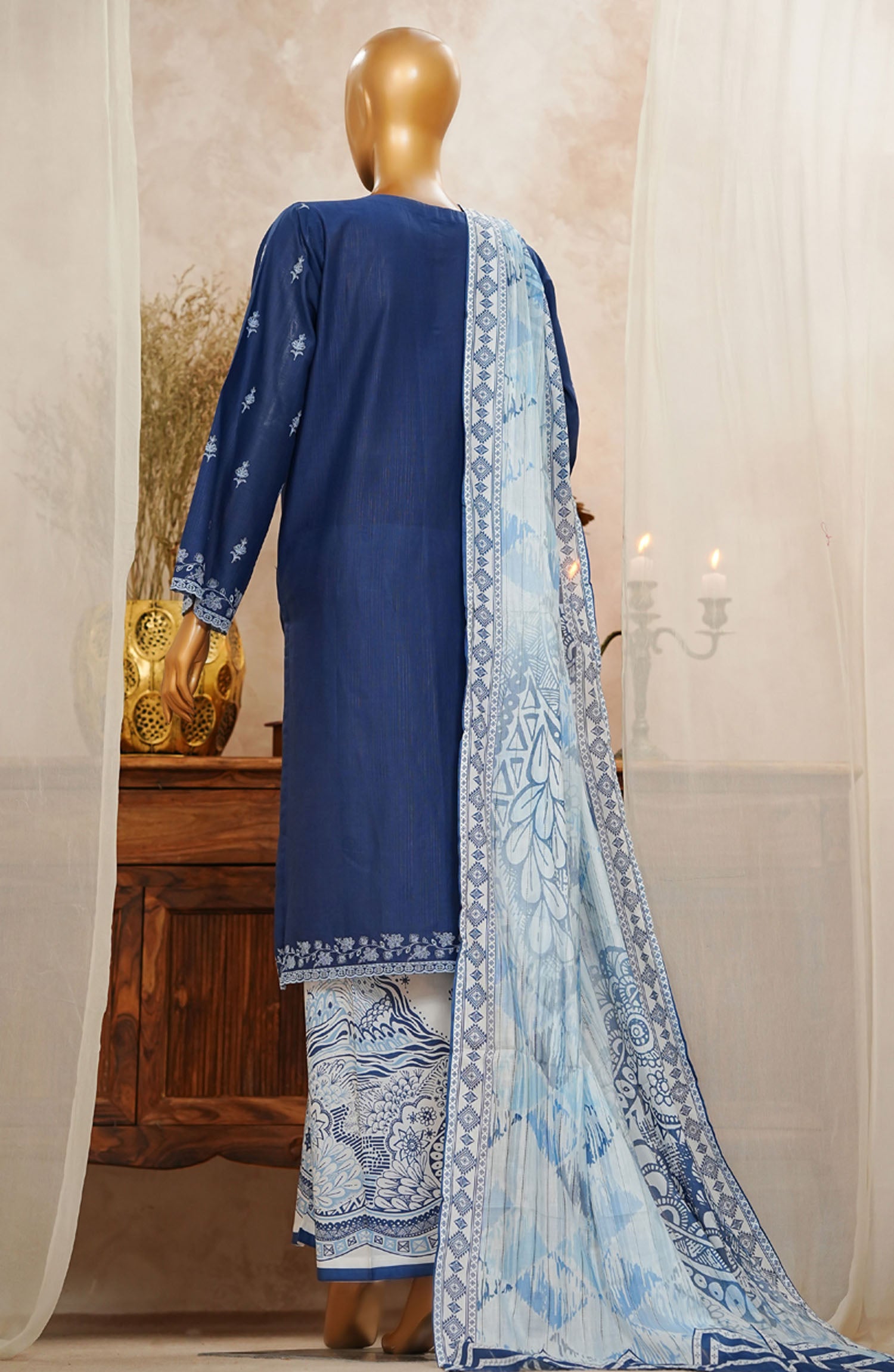 HZ Textile Chikankari Slub Stitched 3 Piece Suit - SSPE-3P-003 Navy - HZ25CHKSS - Summer Collection