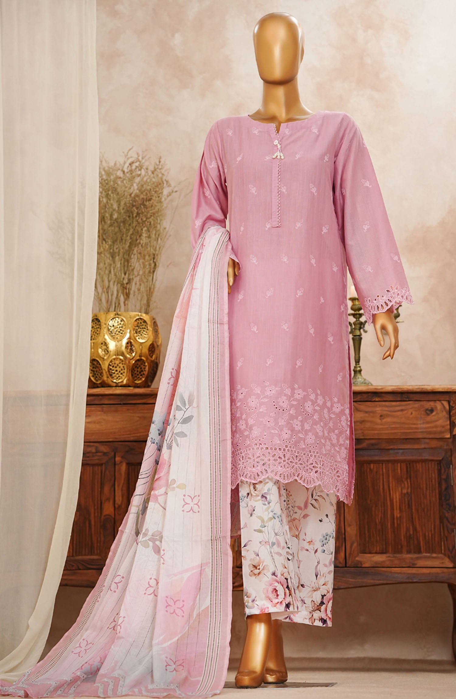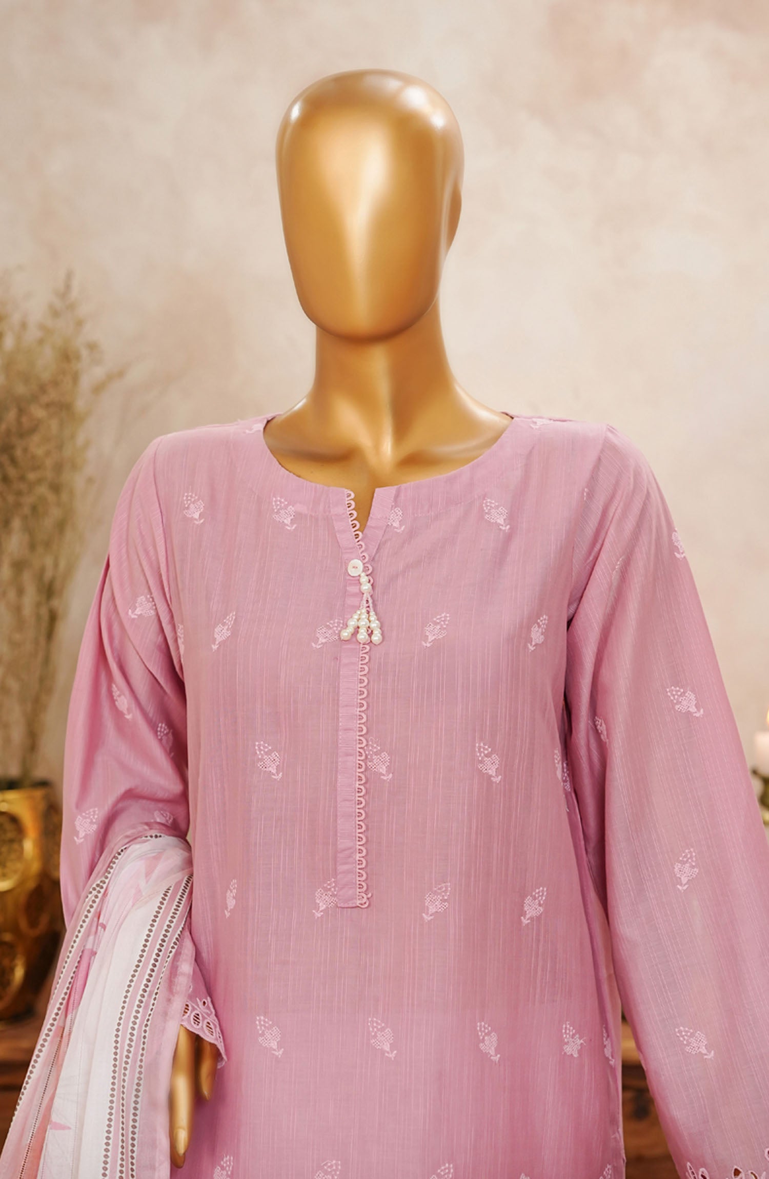 HZ Textile Chikankari Slub Stitched 3 Piece Suit - SSPE-3P-006 Tea Pink - HZ25CHKSS - Summer Collection
