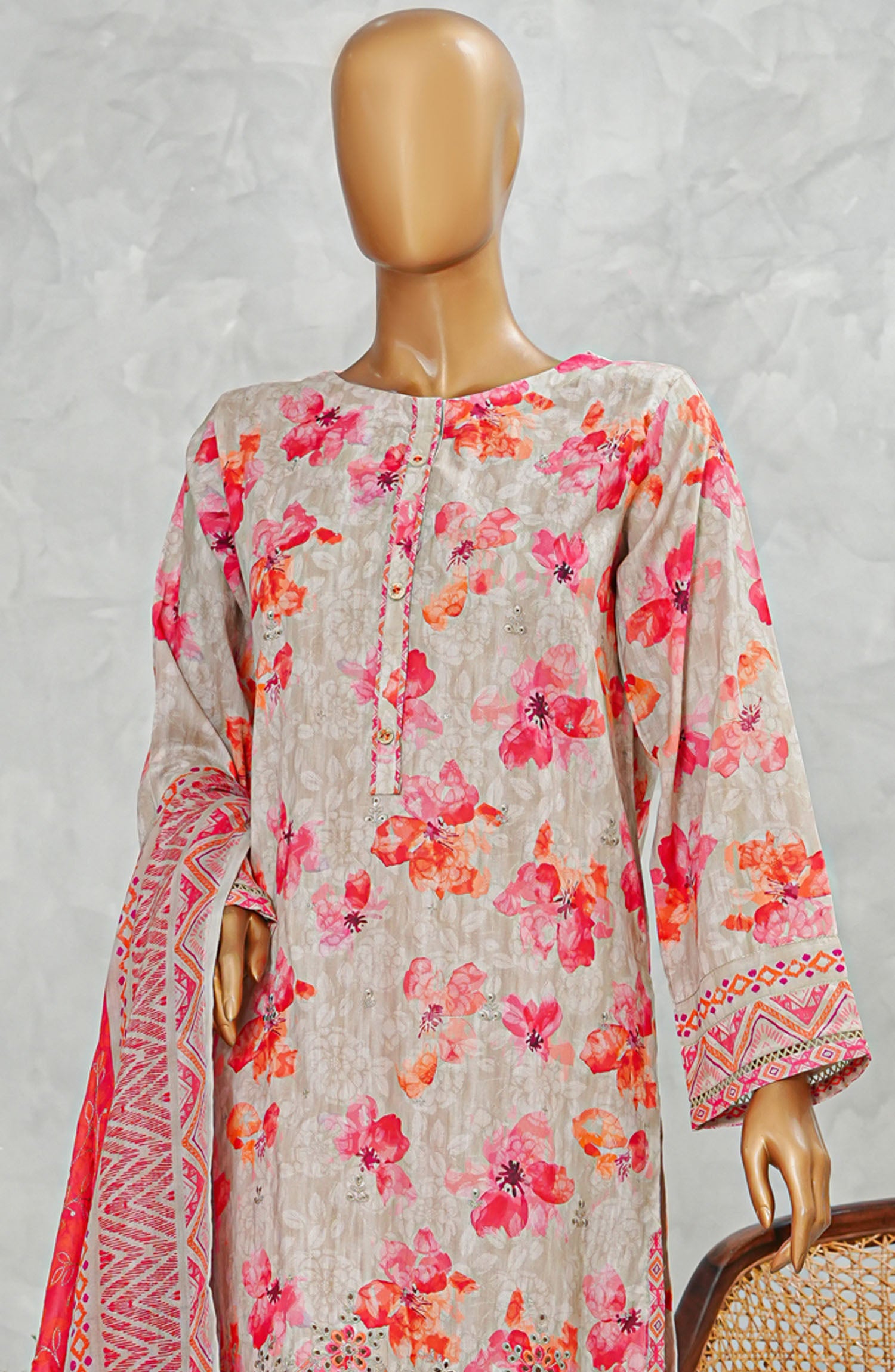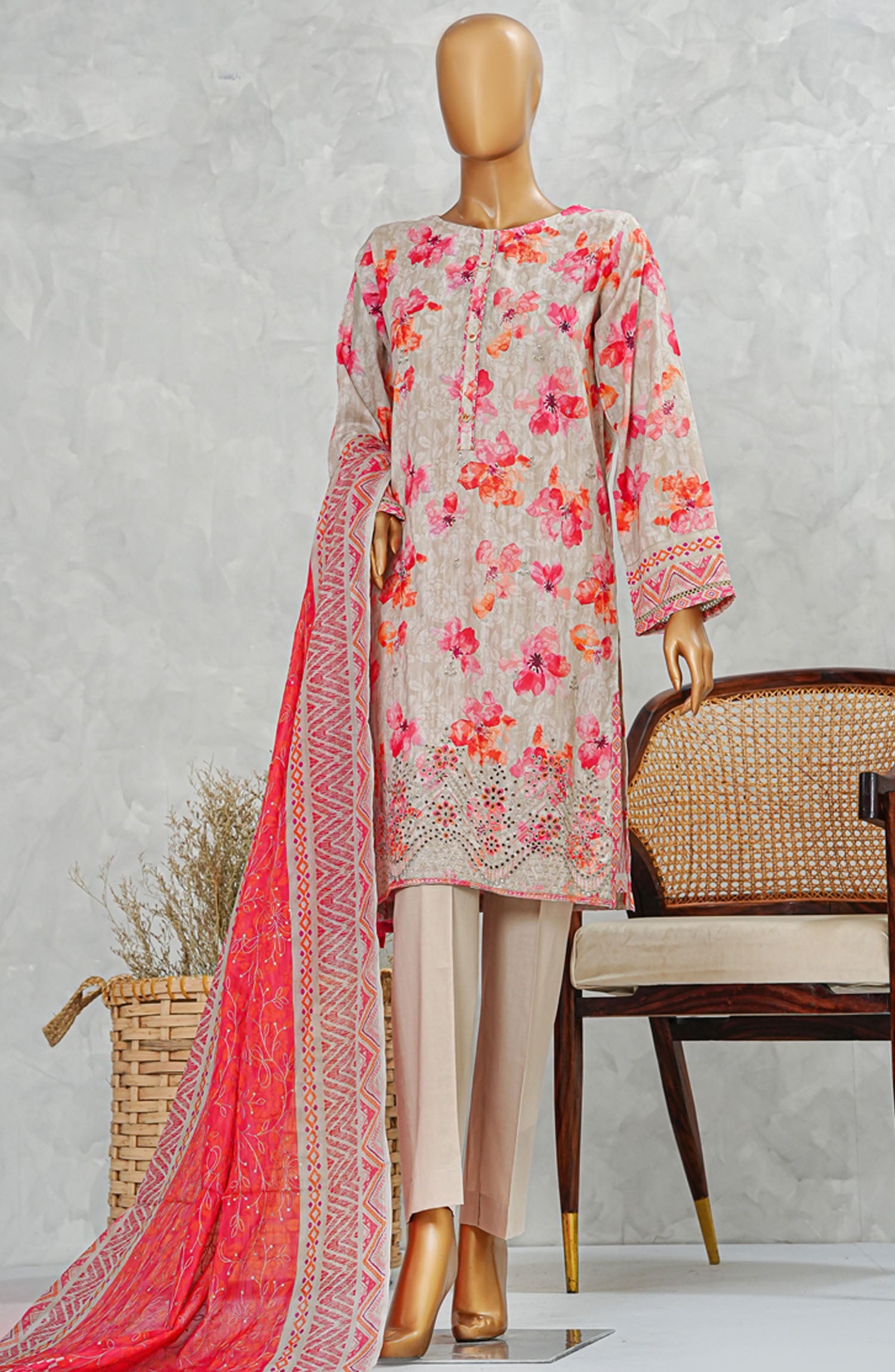HZ Textile Embroidered Chikankari Stitched 3 Piece Suit - Beige Floral LPE-3P-509 - HZ25PPCEV5 - Summer Collection