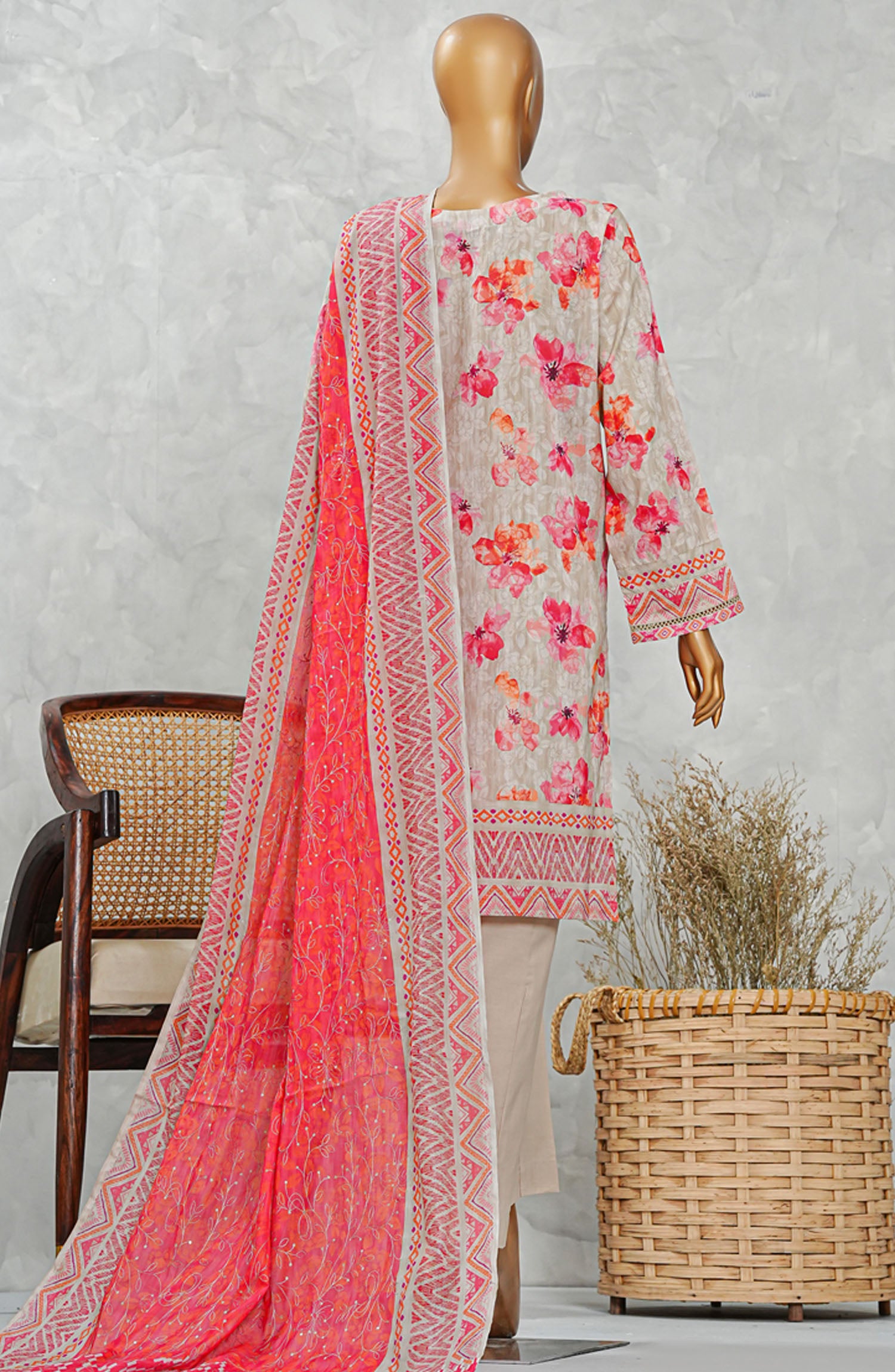 Modest Printed Cotton Stitched 3 Piece Suit - 9705-Wht - MOD25PRF - White - Festive Girls Collection