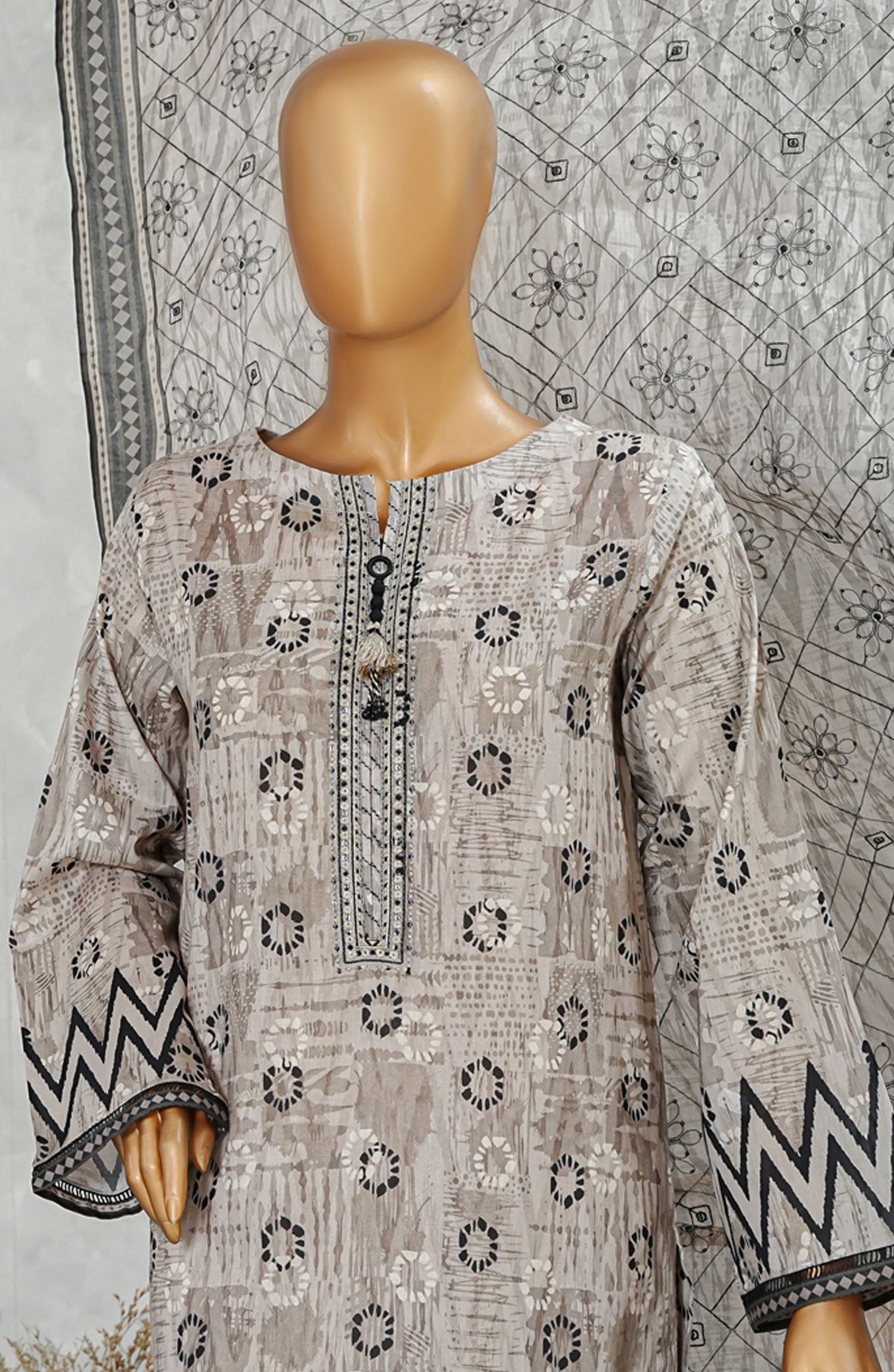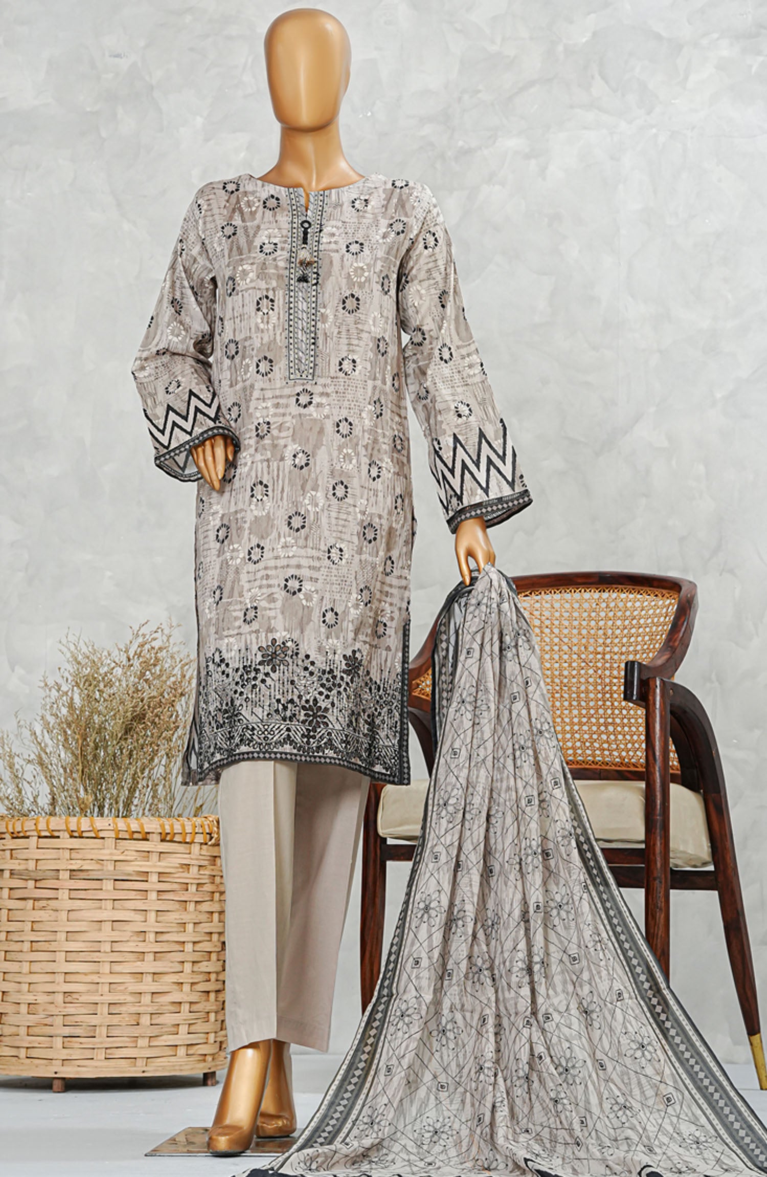 Home HZ Textile Embroidered Chikankari Stitched 3 Piece Suit - Dusty Beige LPE-3P-507 - HZ25PPCEV5 - Summer Collection