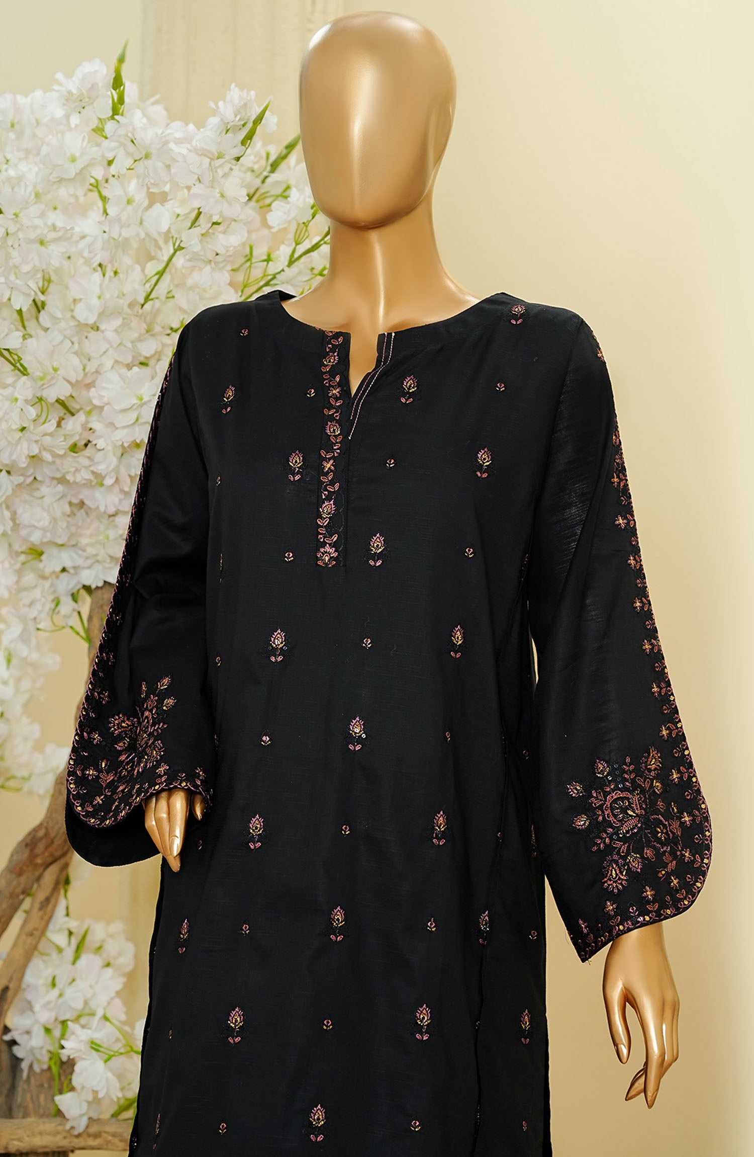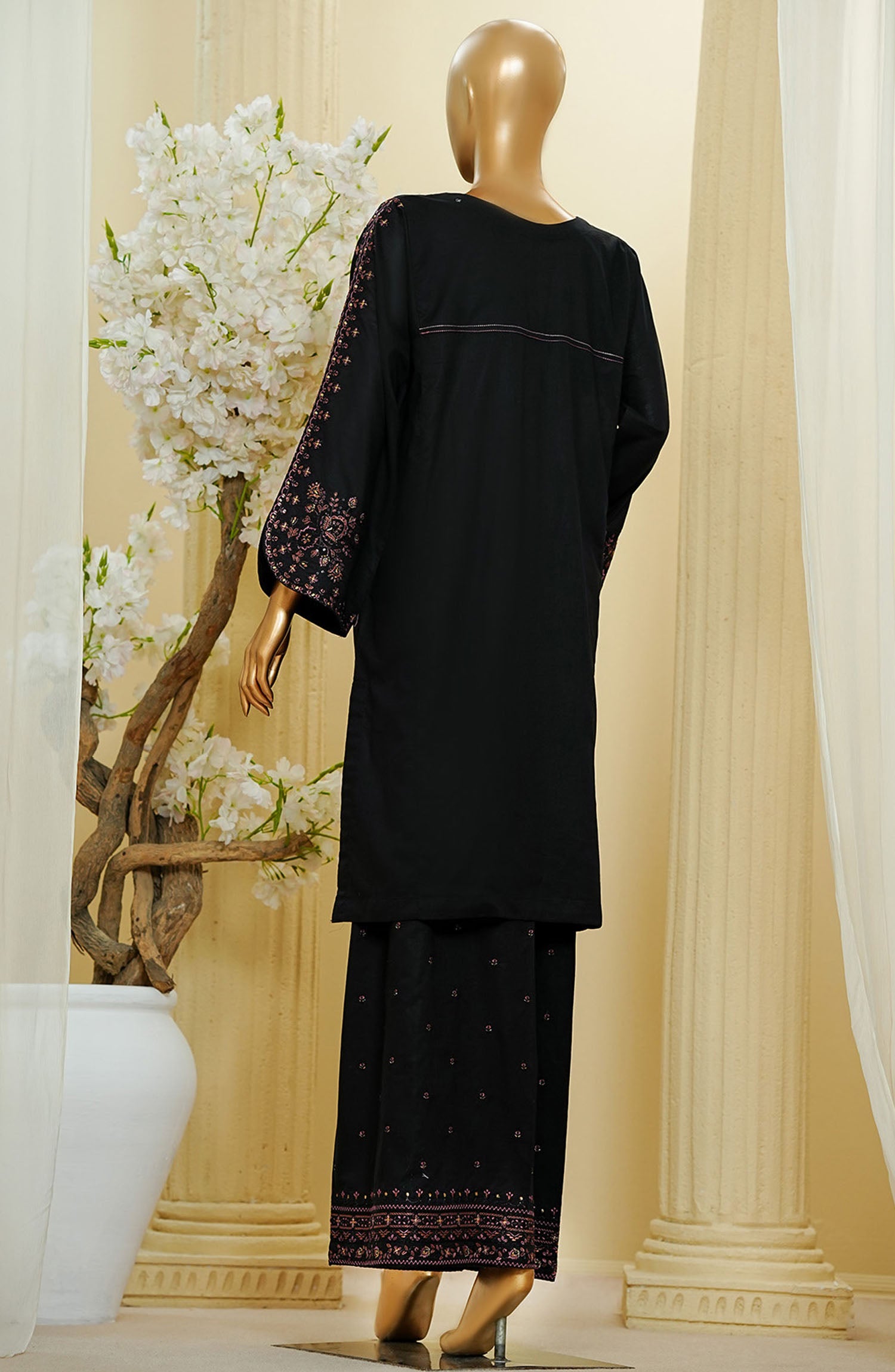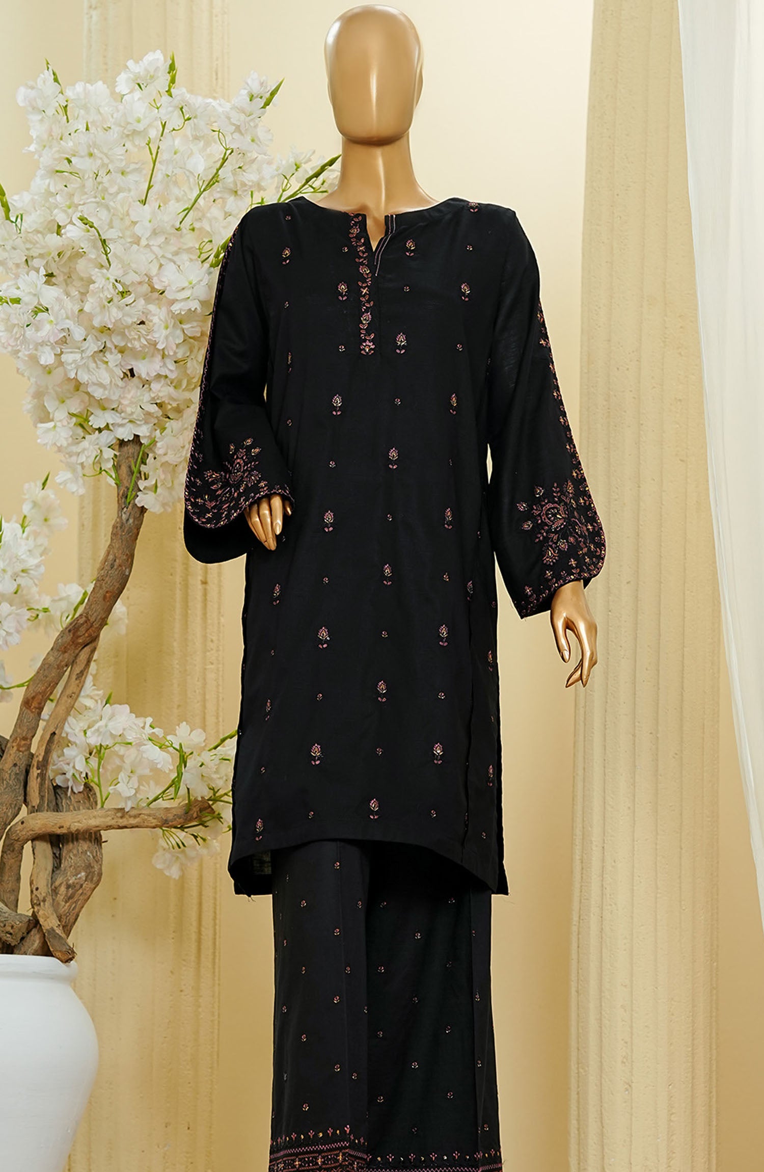 Home HZ Textile Embroidered Cotton Stitched 2 Piece Suit - D-3 - HZ25TNF - Black - Festive Collection