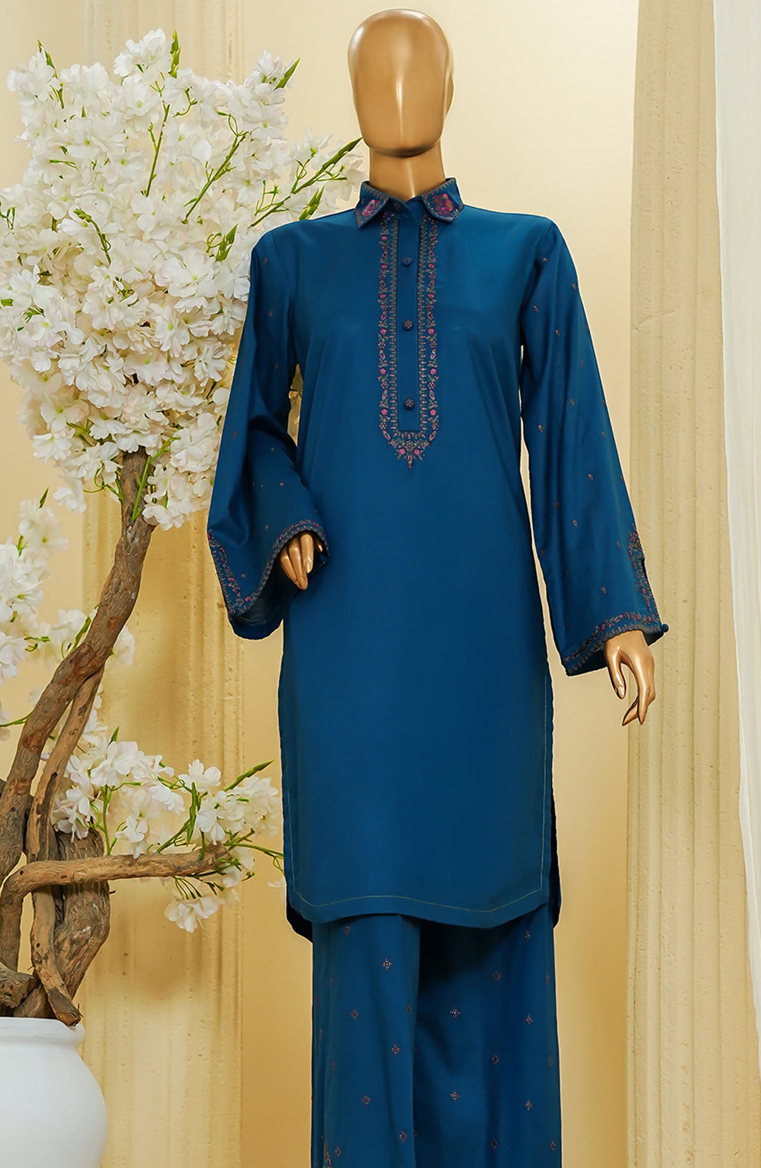 Home HZ Textile Embroidered Cotton Stitched 2 Piece Suit - D-4 - HZ25TNF - Blue - Festive Collection
