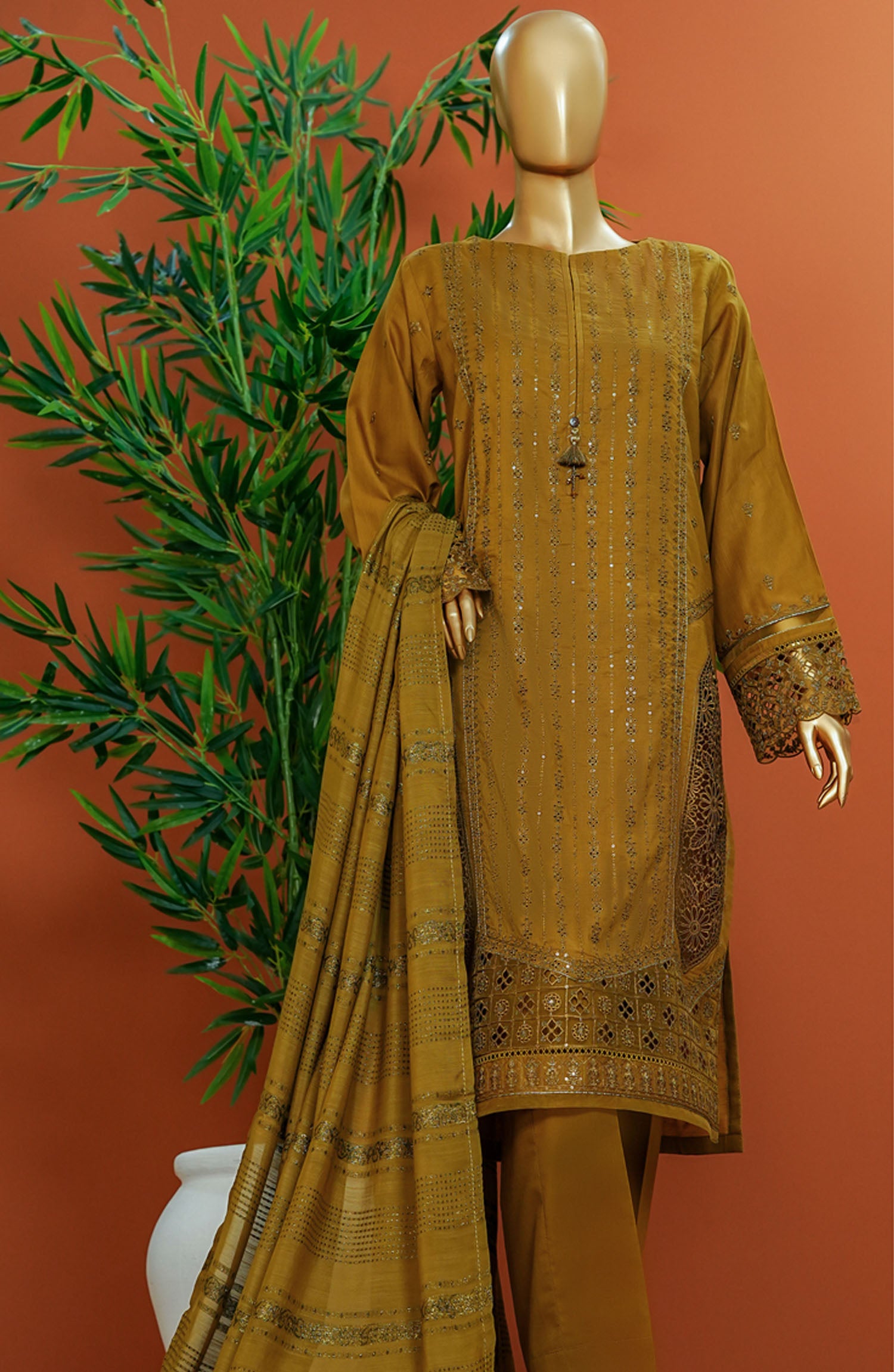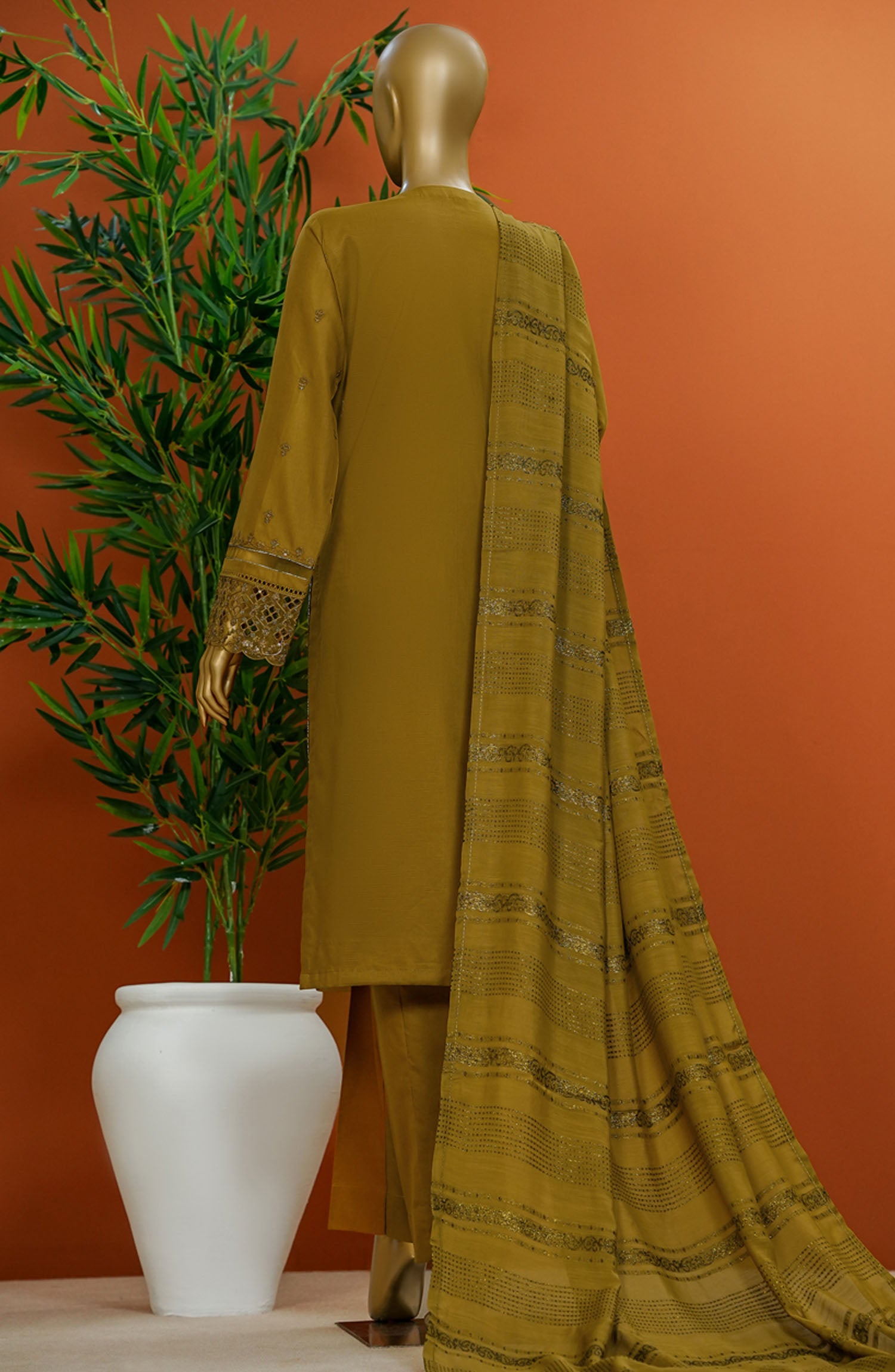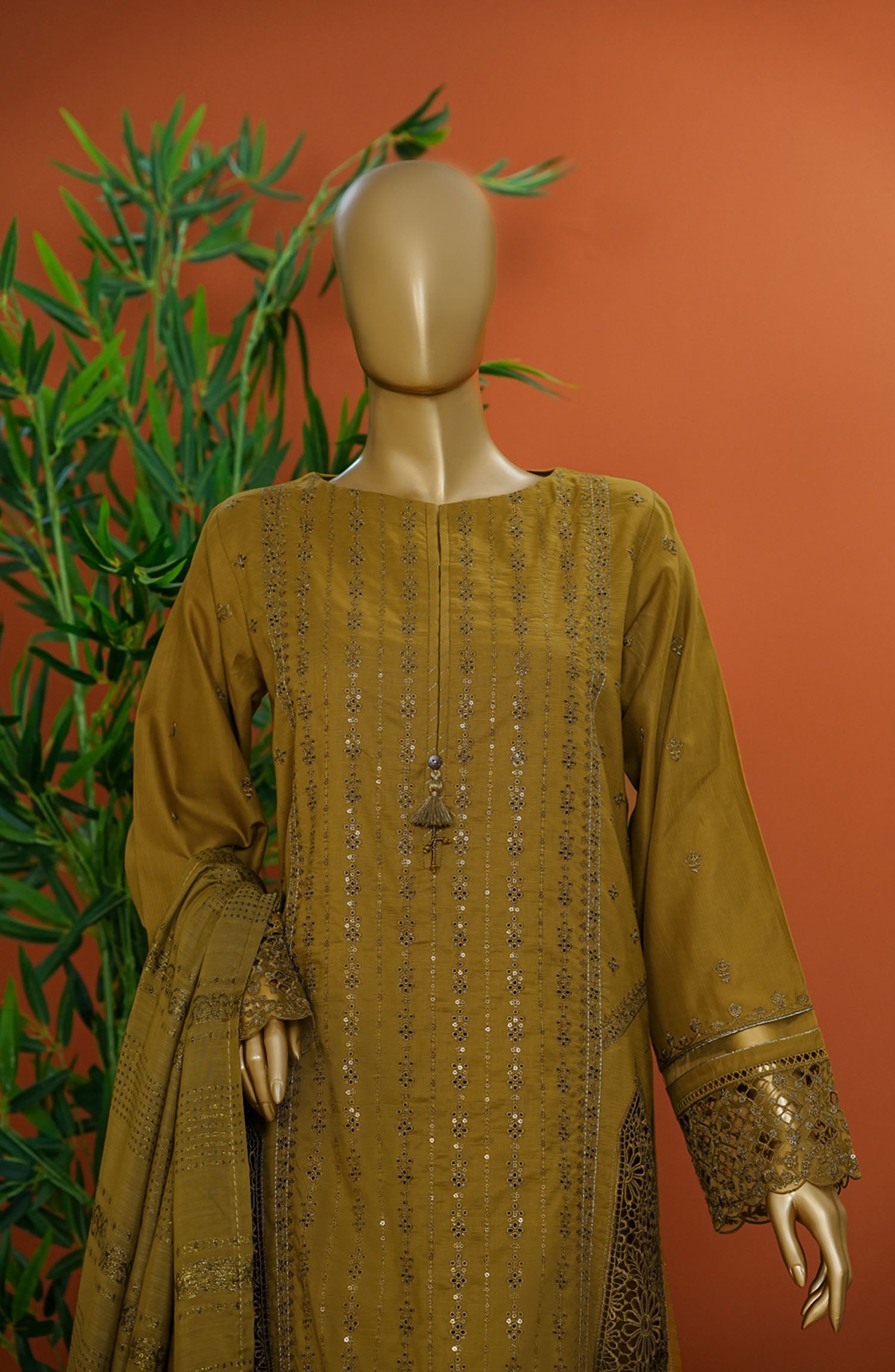 HZ Textile Embroidered Cotton Stitched 3 Piece Suit - SSE-101 Olive - HZ25MUV1 - Brown - Summer Collection