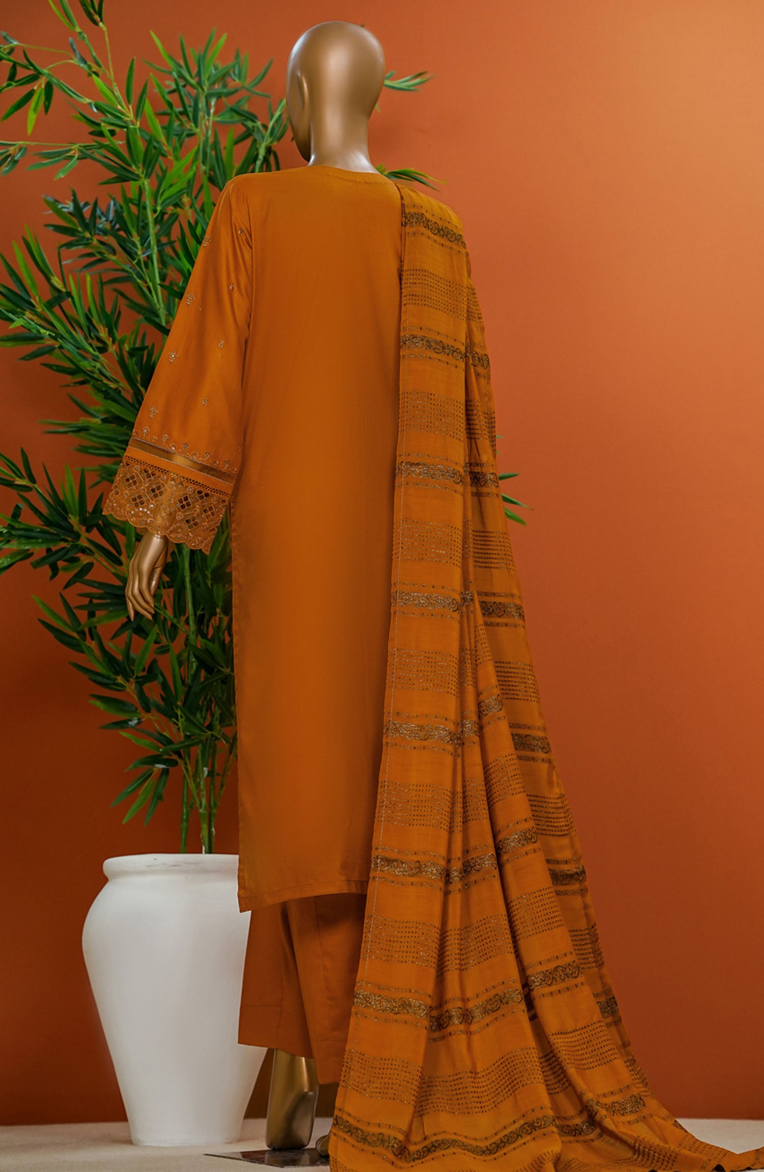 Home HZ Textile Embroidered Cotton Stitched 3 Piece Suit - SSE-102 Rust - HZ25MUV1 - Orange - Summer Collection