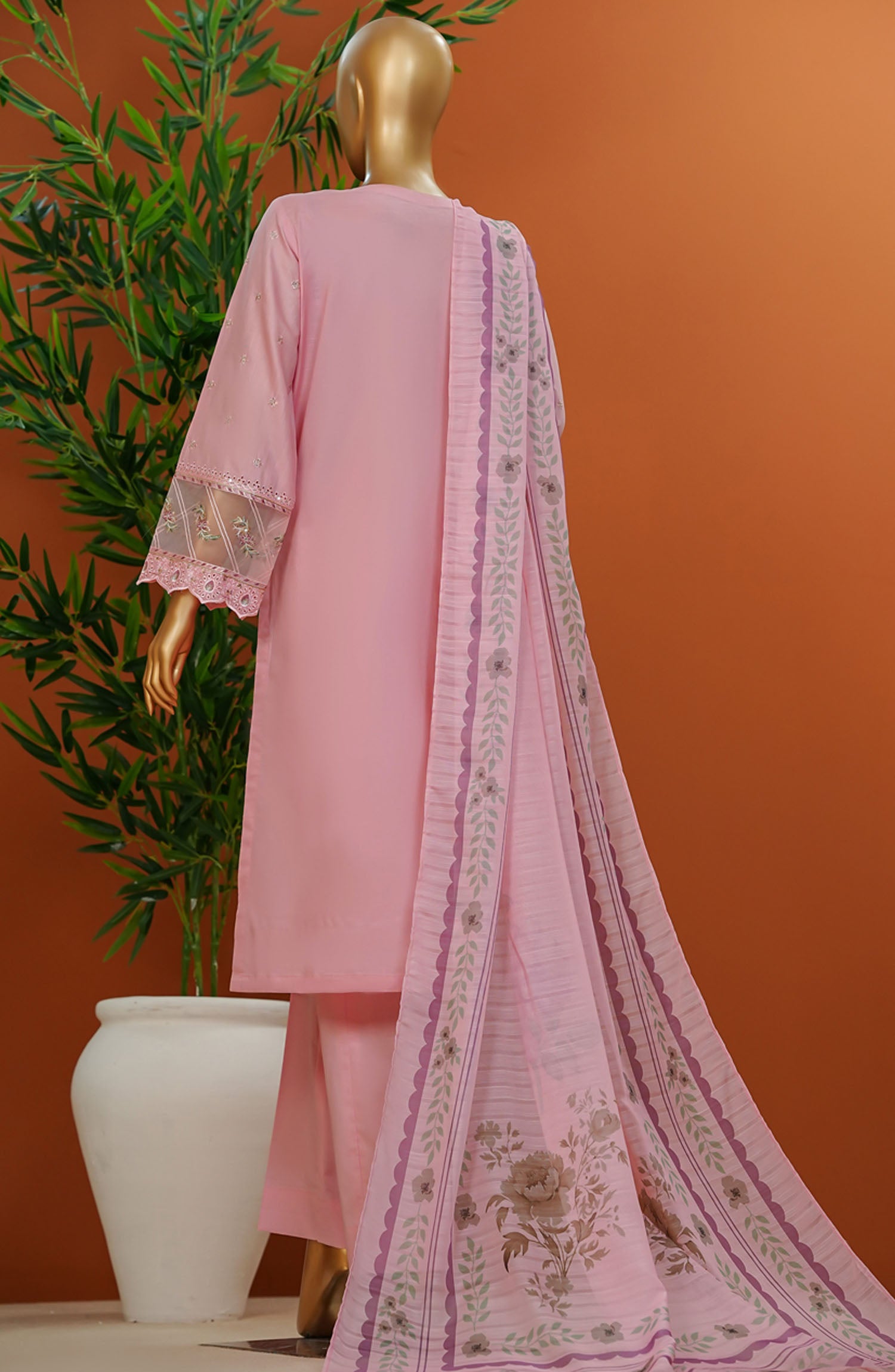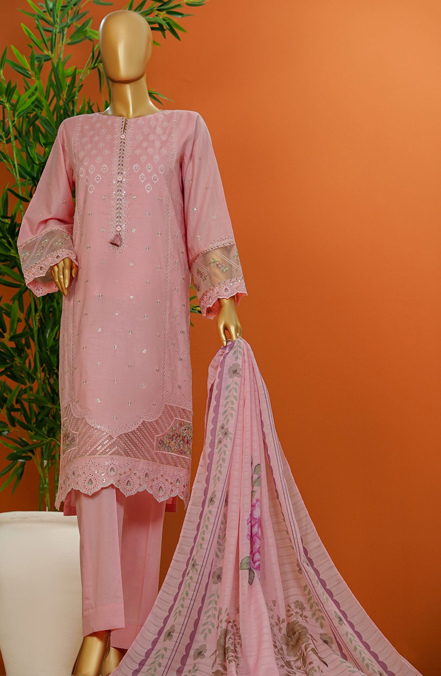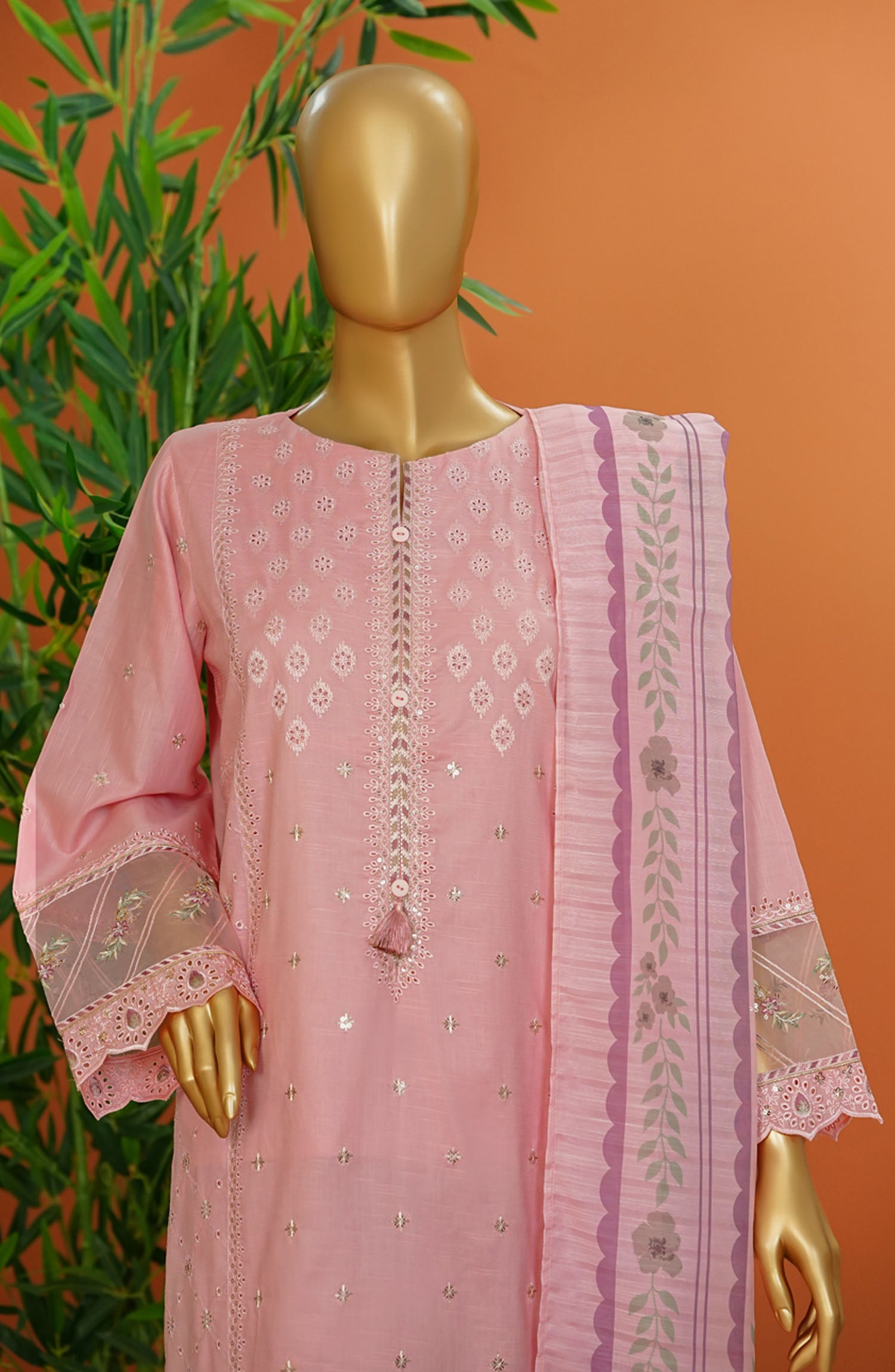 HZ Textile Embroidered Cotton Stitched 3 Piece Suit - SSE-105 Powder Pink - HZ25MUV1 - Pink - Summer Collection