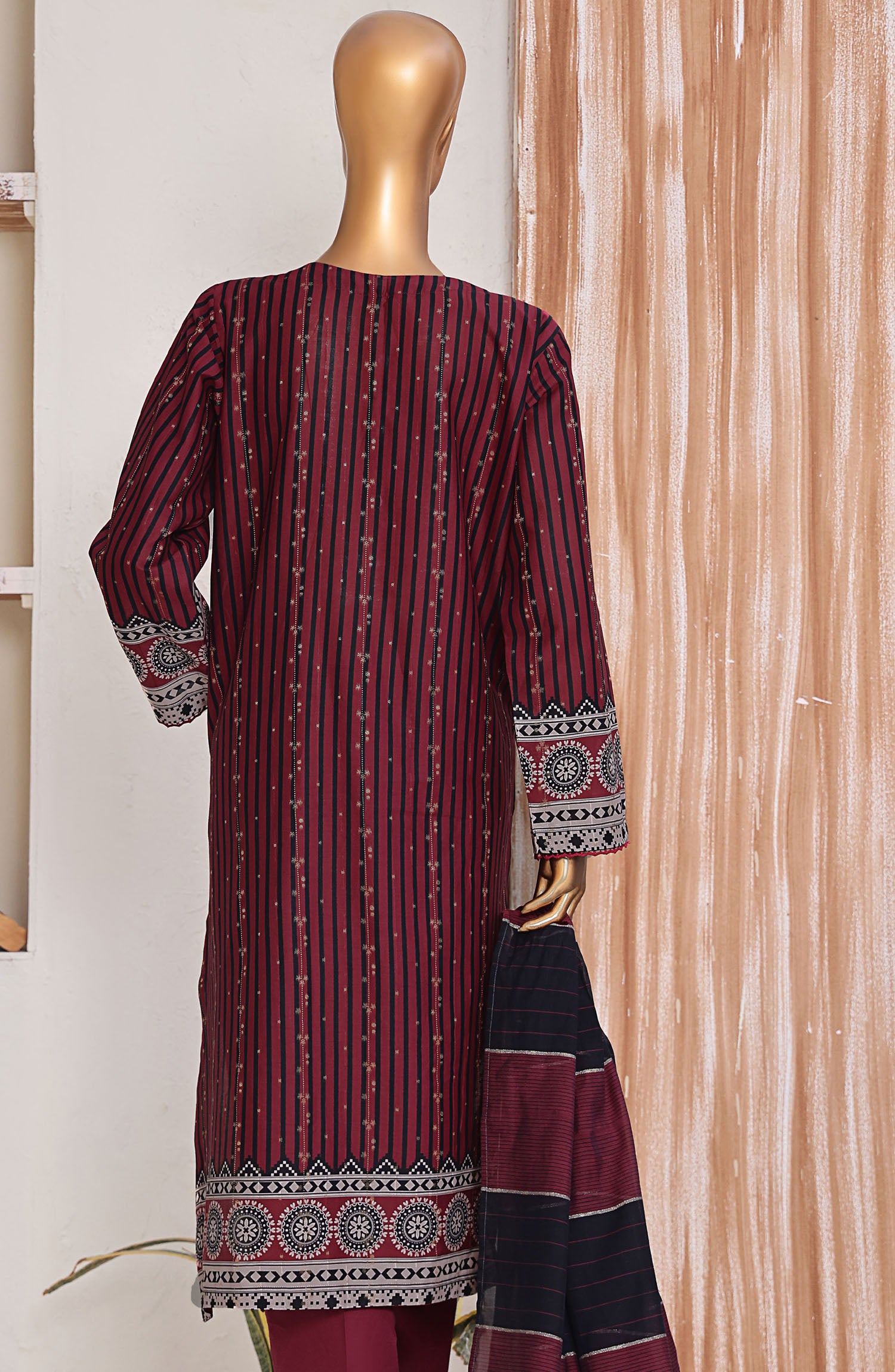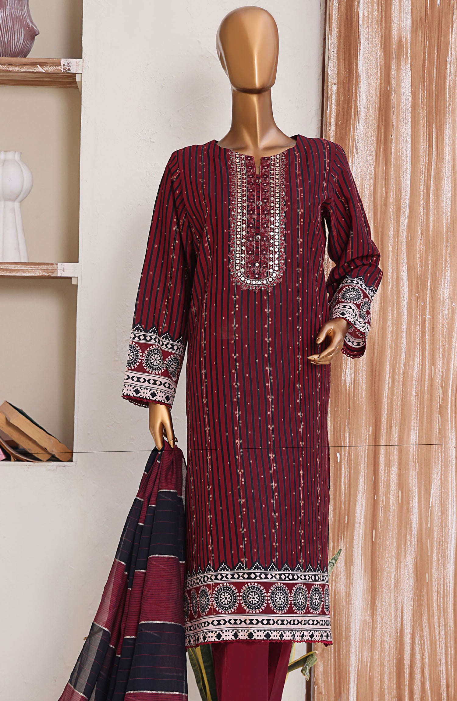Home HZ Textile Embroidered Jacquard Unstitched 3 Piece Suit - TJS-1209 - HZ25TJS - Maroon - Casual Collection