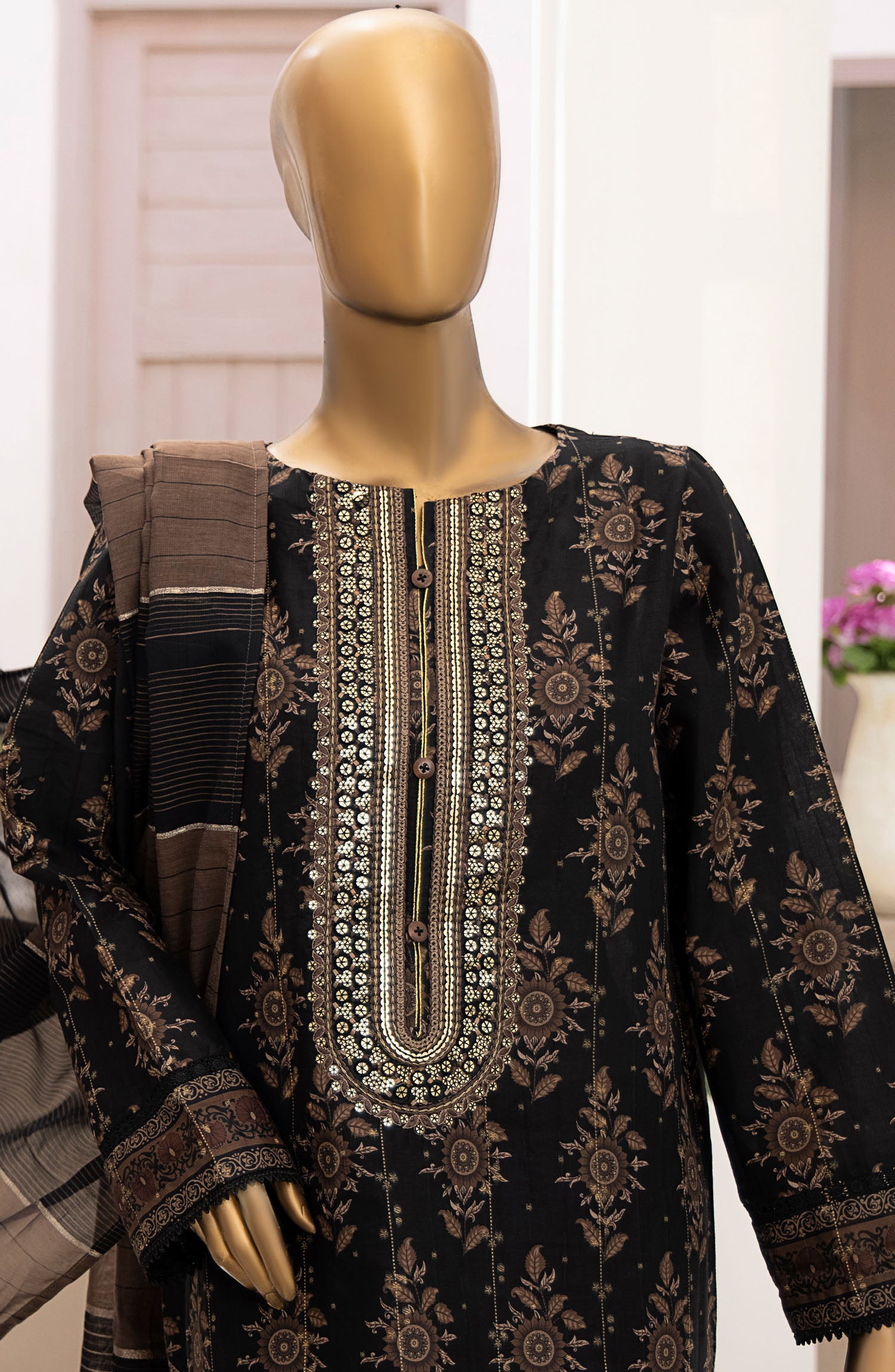 HZ Textile Embroidered Jacquard Unstitched 3 Piece Suit - TJS-1210 - HZ25TJS - Black - Casual Collection