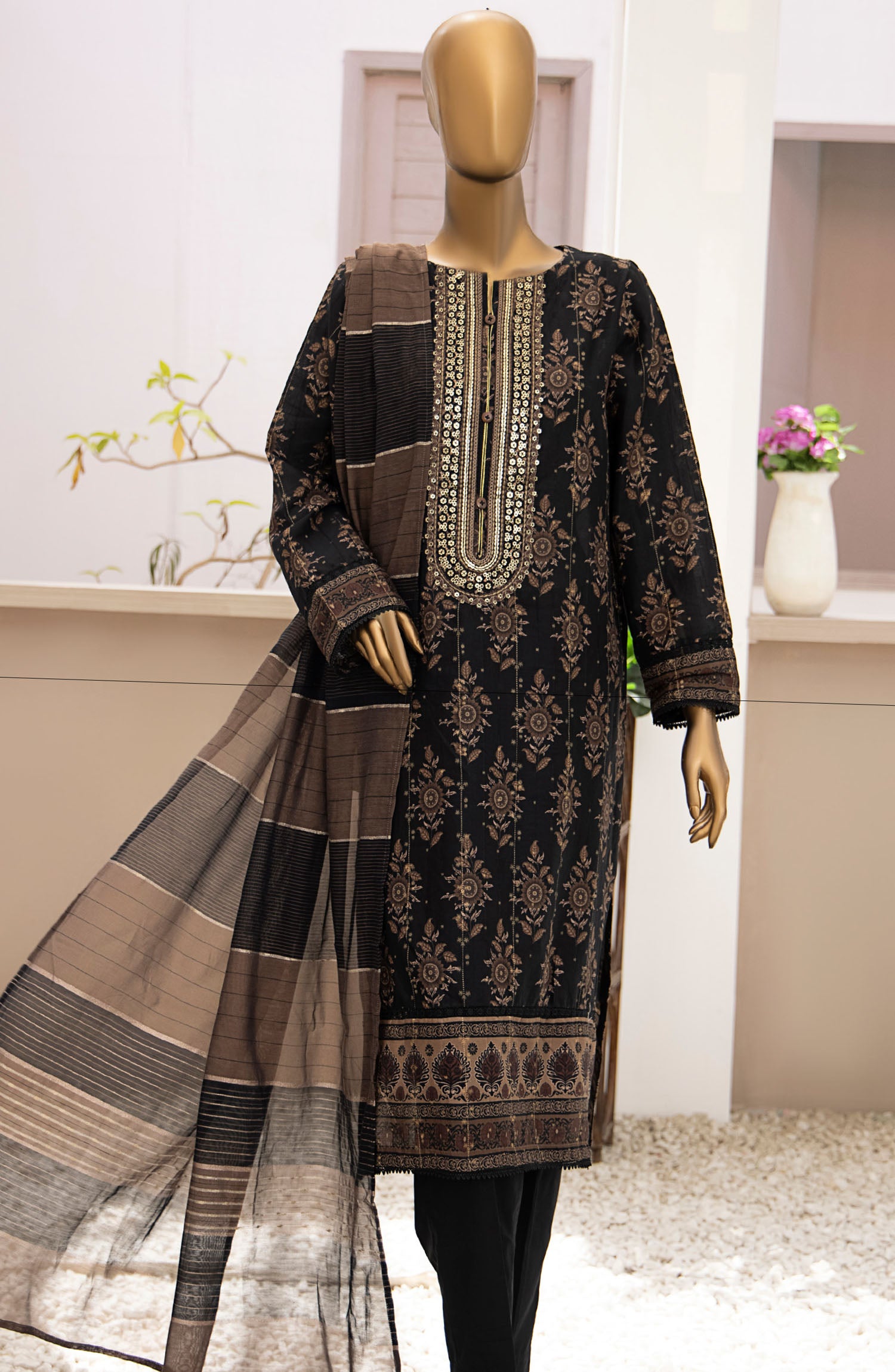 Home HZ Textile Embroidered Jacquard Unstitched 3 Piece Suit - TJS-1210 - HZ25TJS - Black - Casual Collection