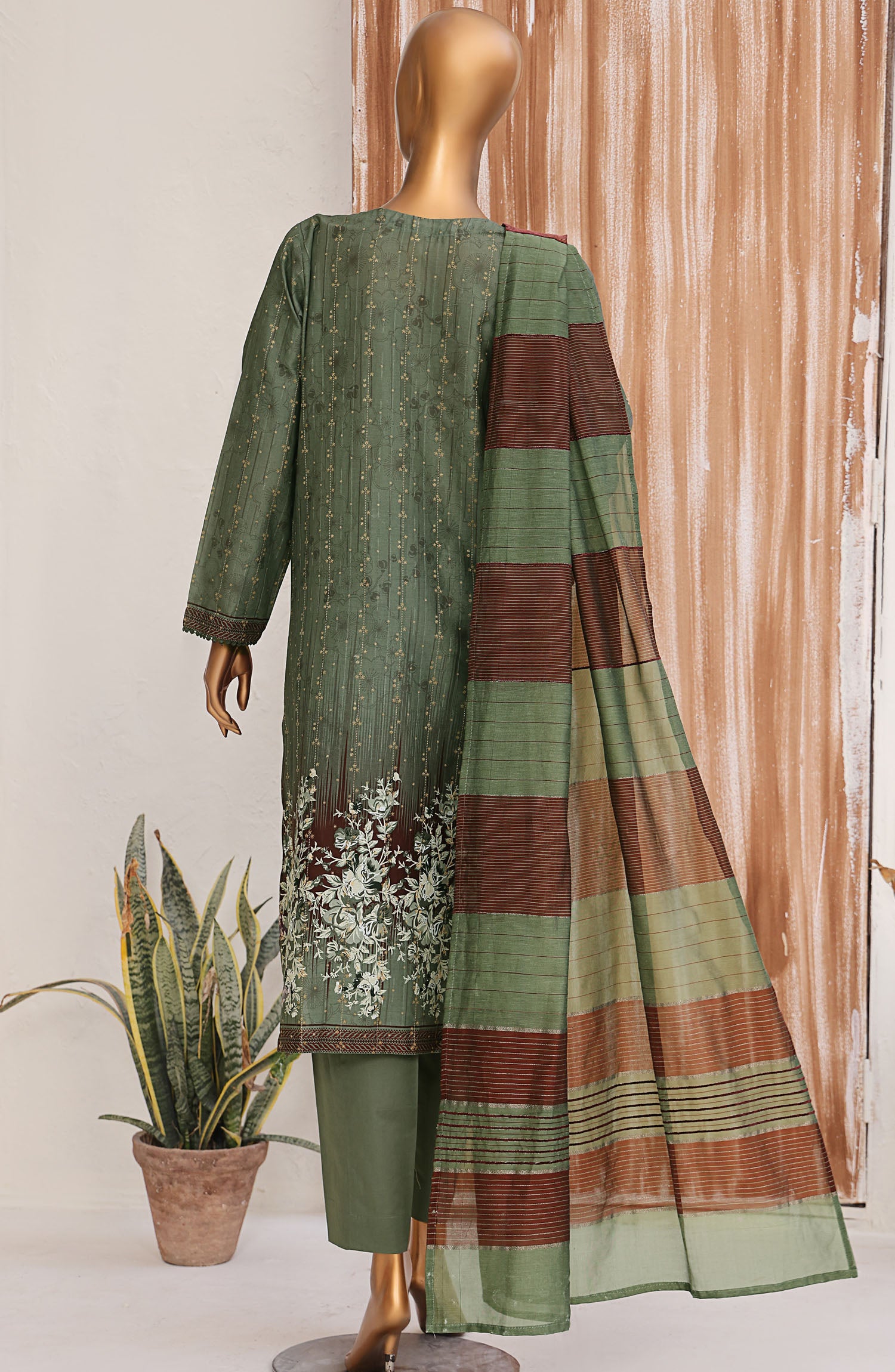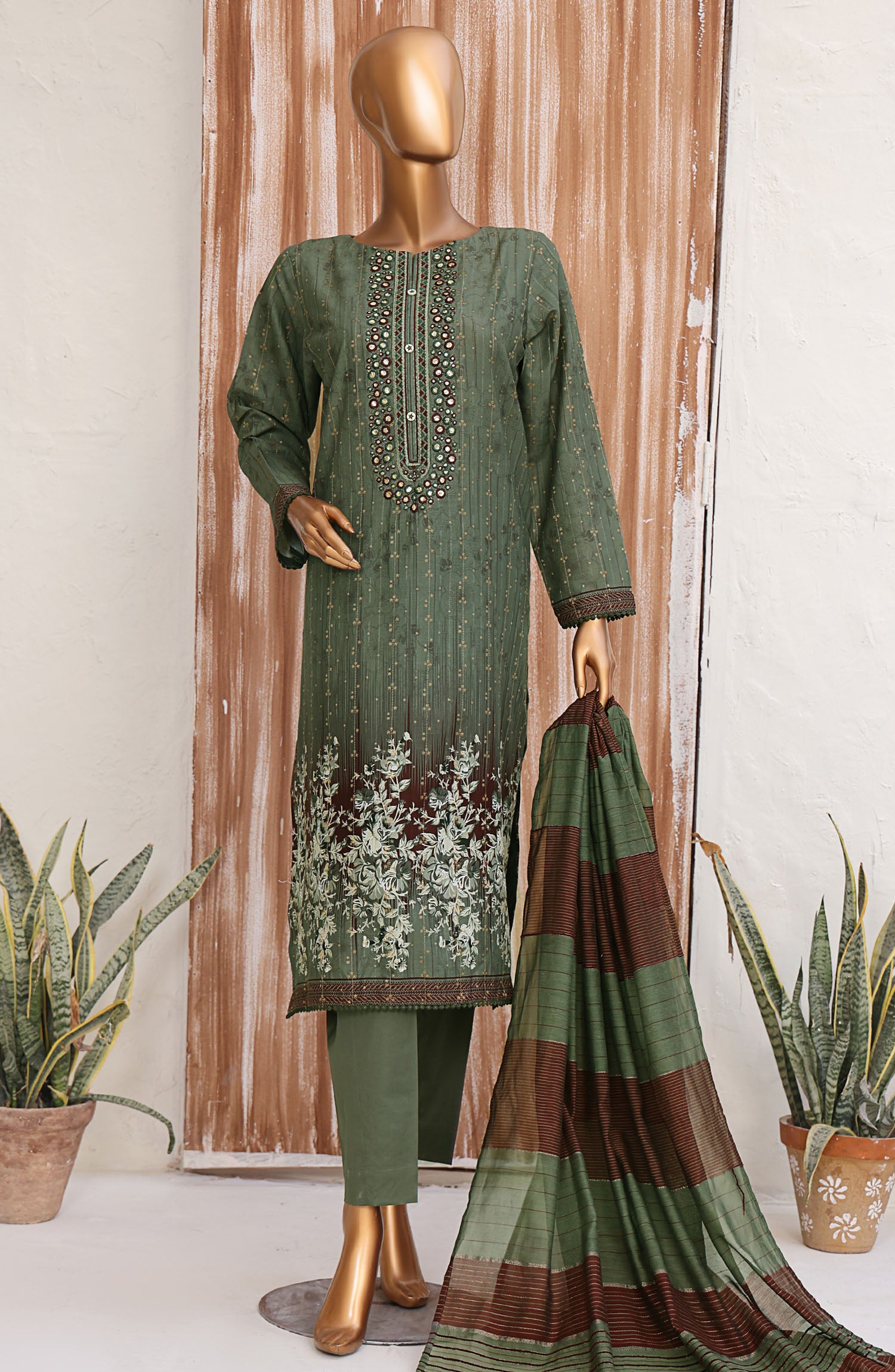 Home HZ Textile Embroidered Jacquard Unstitched 3 Piece Suit - TJS-1212 - HZ25TJS - Green - Casual Collection