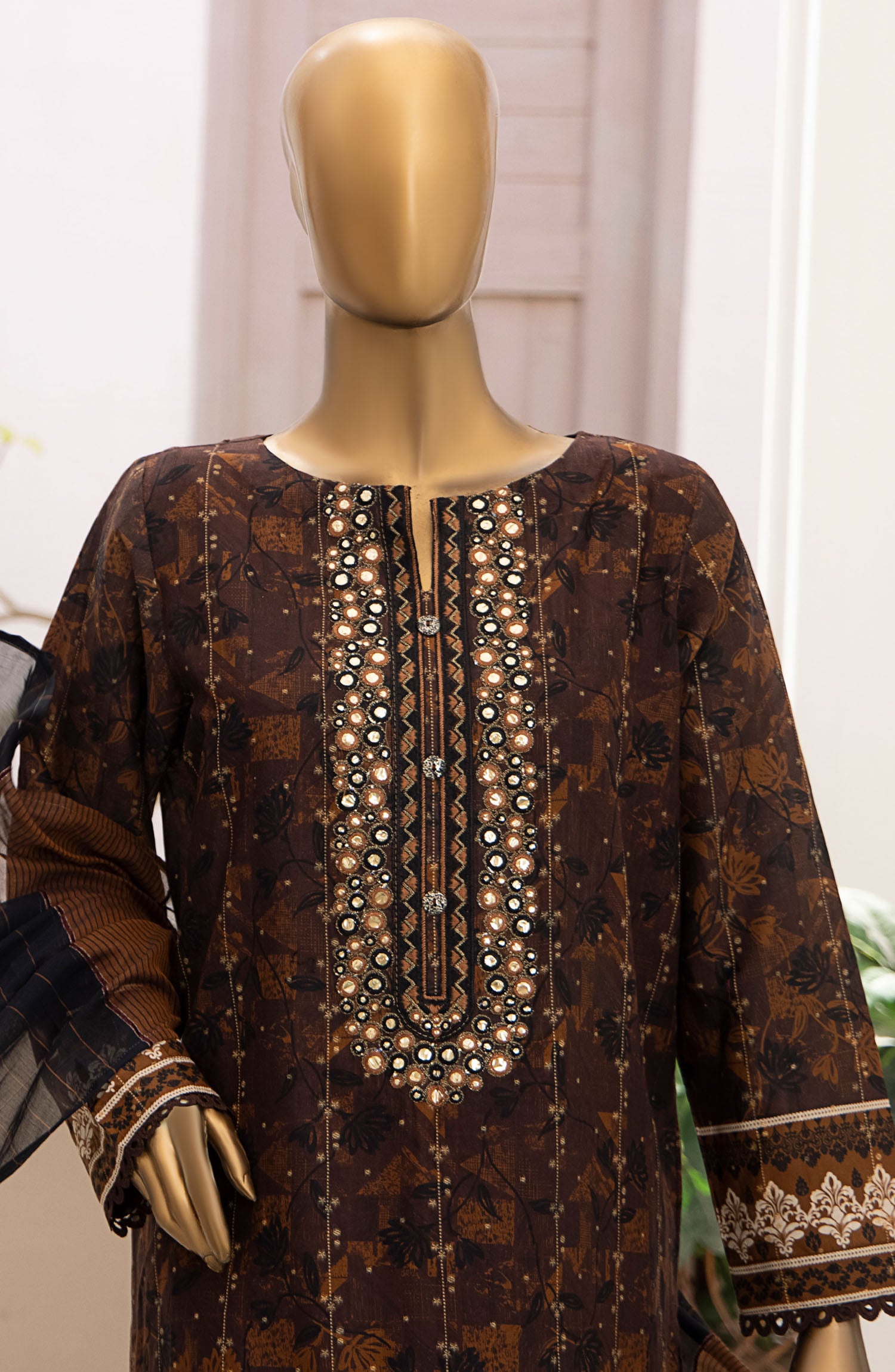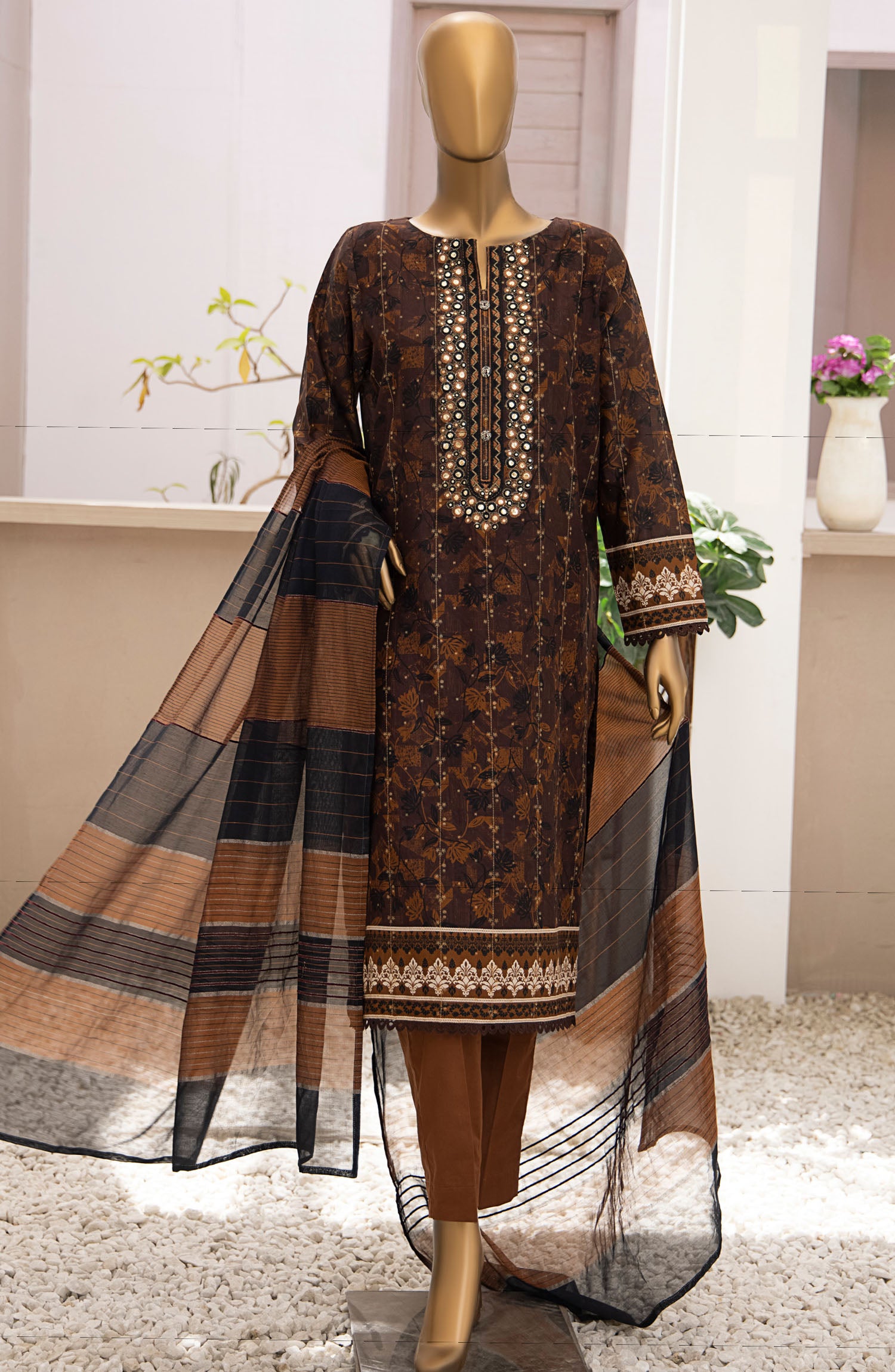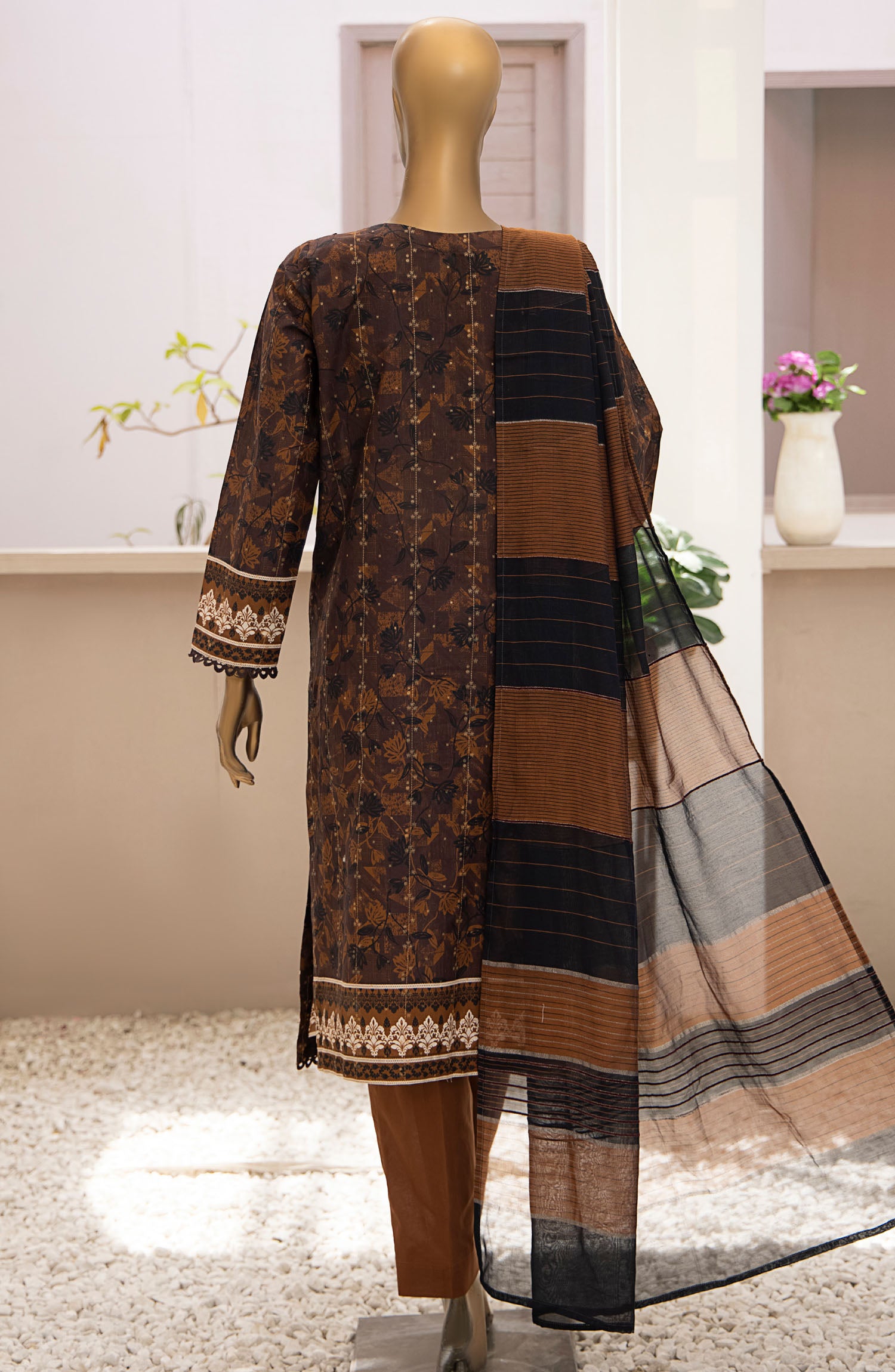 HZ Textile Embroidered Jacquard Unstitched 3 Piece Suit - TJS-1213 - HZ25TJS - Brown - Casual Collection