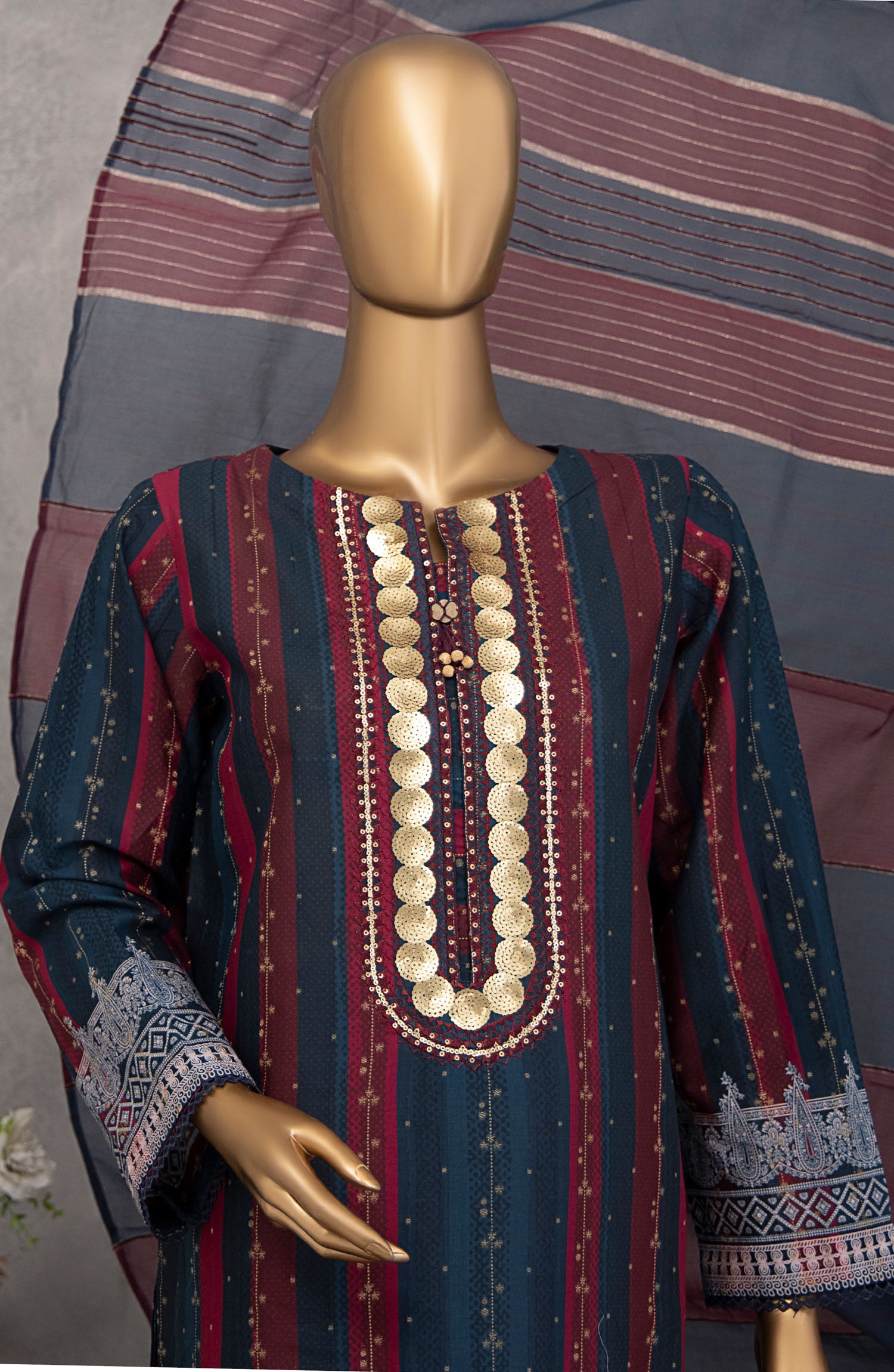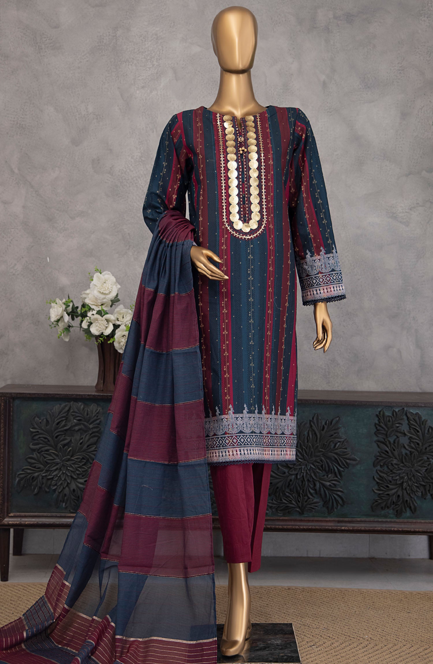 Home HZ Textile Embroidered Jacquard Unstitched 3 Piece Suit - TJS-1214 - HZ25TJS - Maroon - Casual Collection